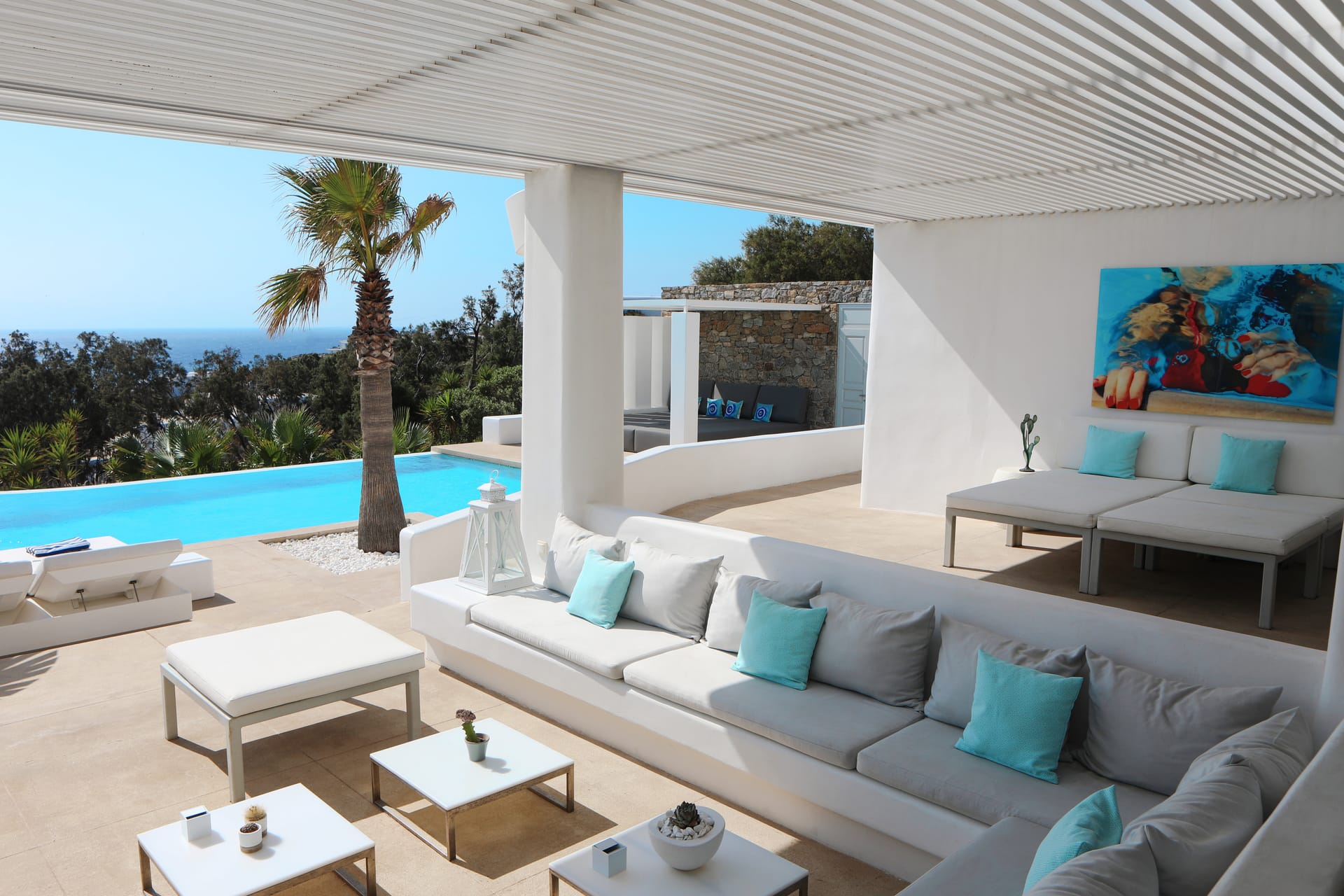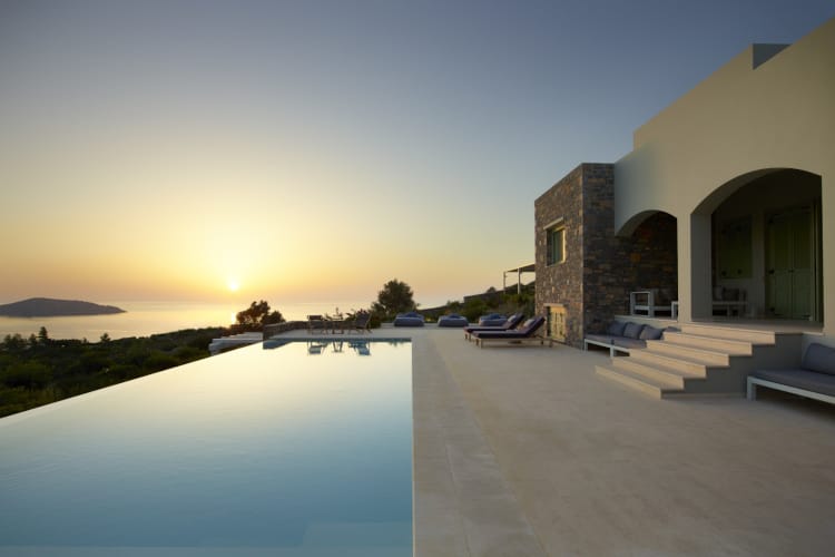 The wonderful 456 m2 Villa Minos, lies on 3 levels has 8 bedrooms, and can totally accommodate up to 16 guests.