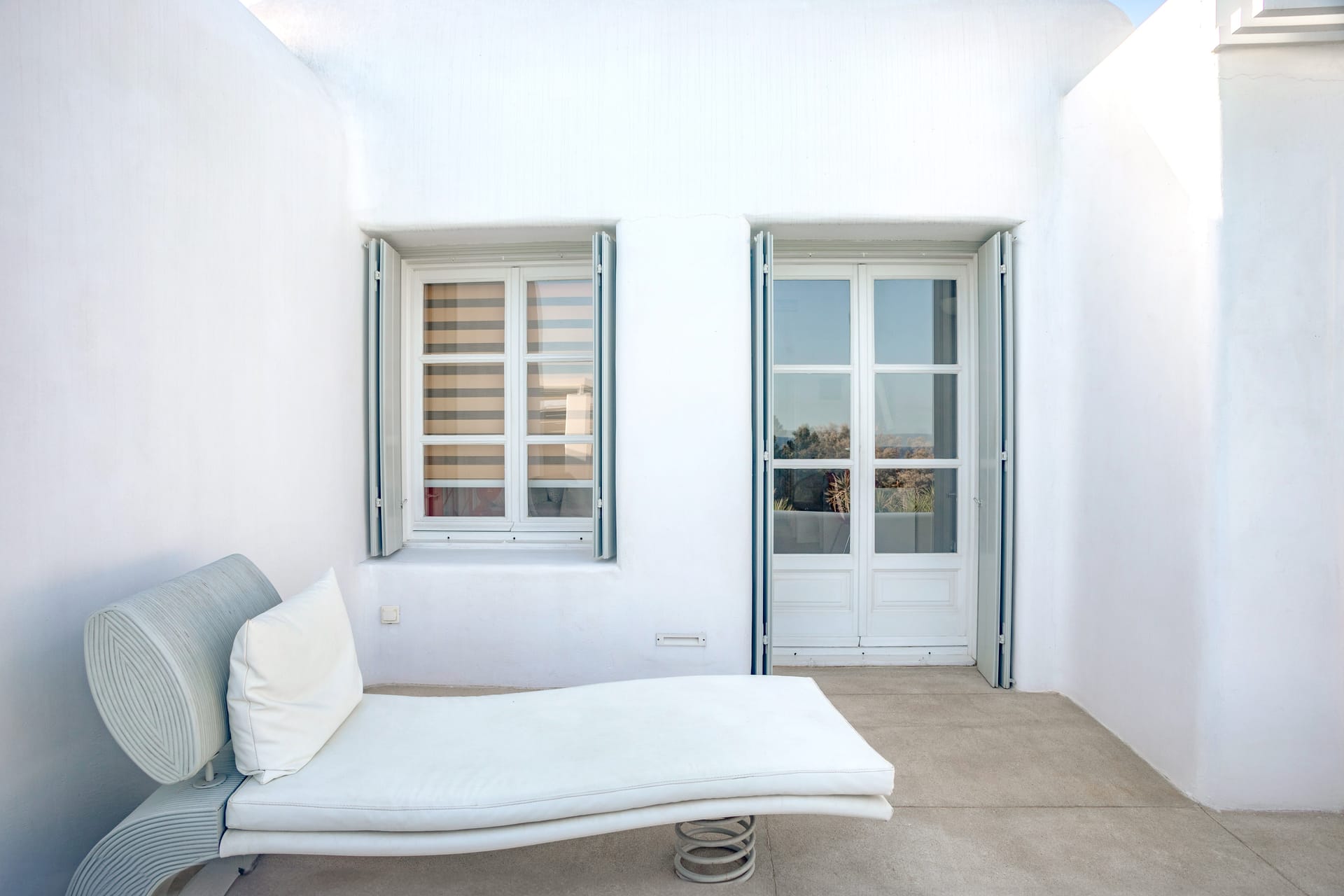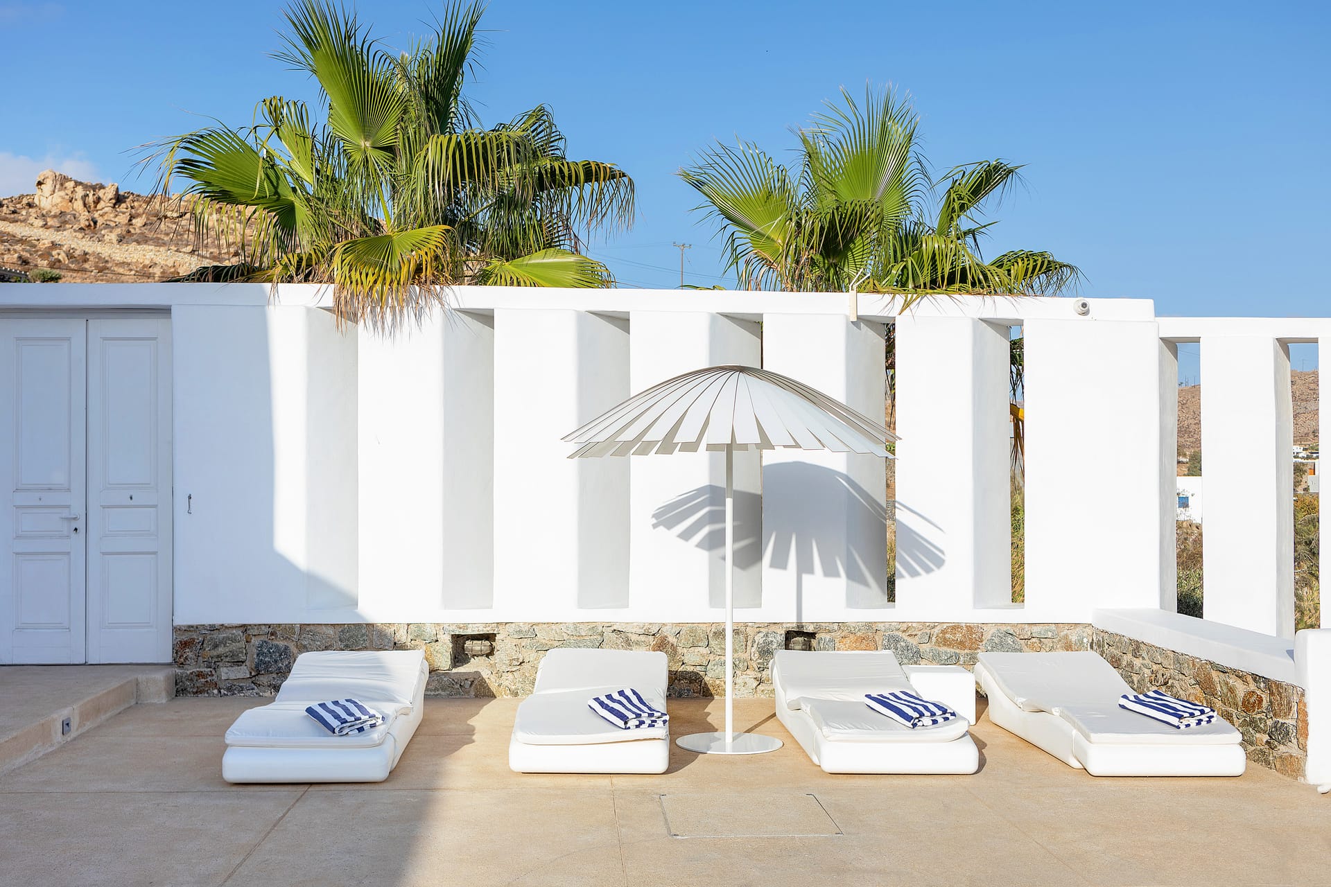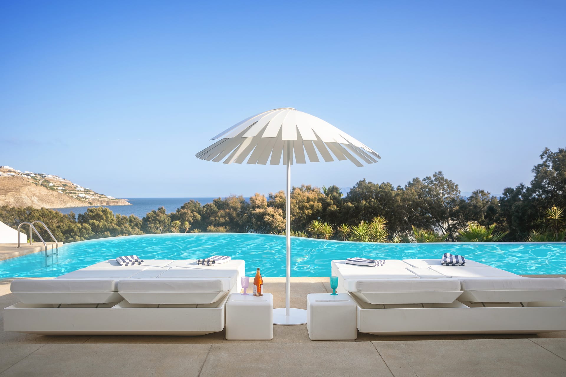 The Outdoor area of 13,700 m2 landscaped with terraced gardens featuring olive trees and garden pavilions take advantage of the wonderful views. Broad terraces with built-in seating areas surround the pools and the Villa Minos offers magical views. The stunning infinity-edge pool creates the impression that the water extends to the Mediterranean and is the ideal spot for serendipity moments.