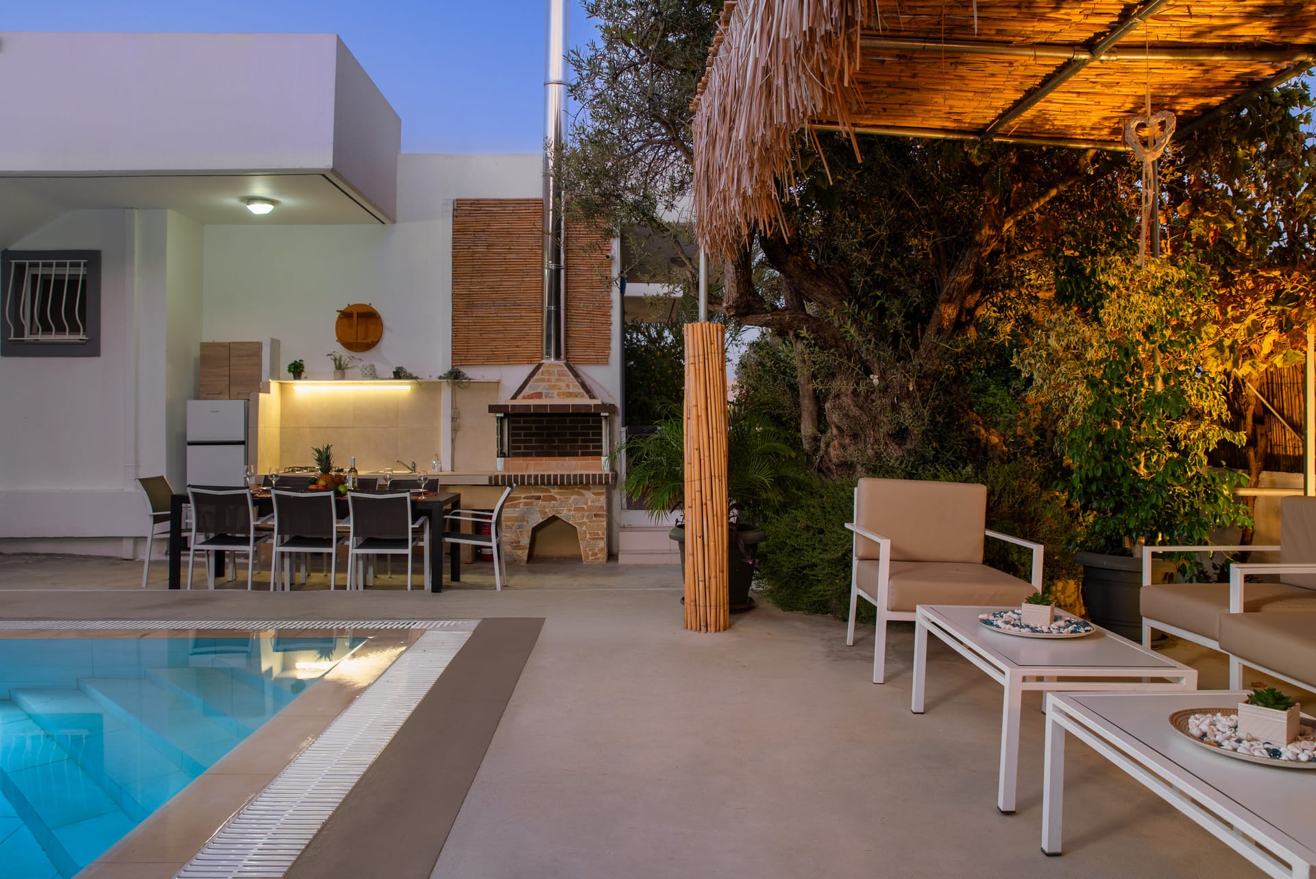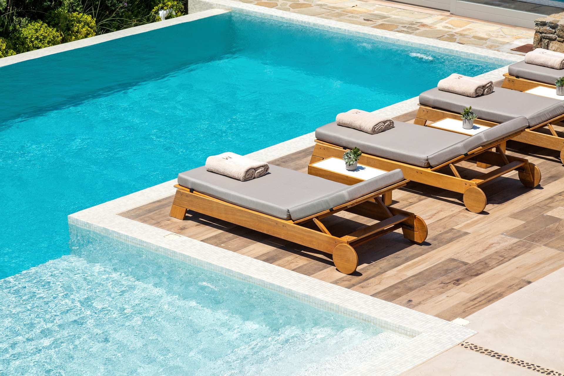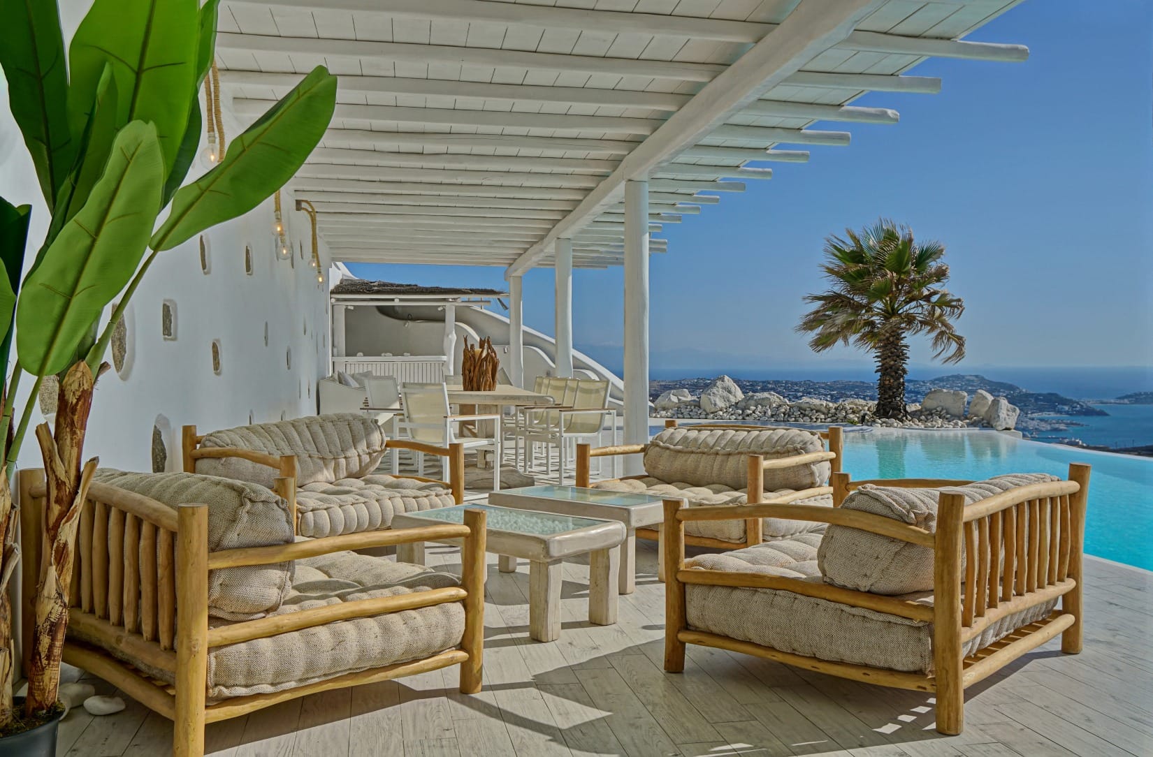 Divided into 3 stages, this villa offers 8 rooms and a private pool. A wooden bar in the pool area sets the stage for shared moments against the backdrop of the azure sea, perfect for parties, gatherings, and unforgettable wedding experiences.
