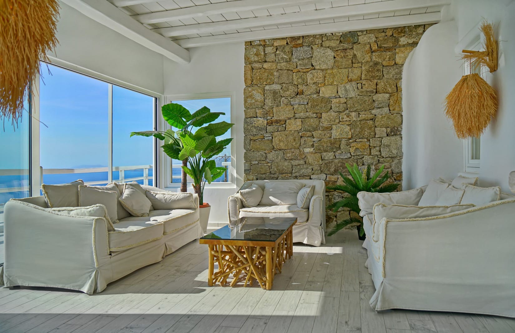 1st Level: Unwind in 5 en suite rooms with private balconies, all featuring spectacular sea views. Each room is fully air-conditioned, with safety boxes and private TV CD players. A separate guest room with a private entrance adds an exclusive touch.
