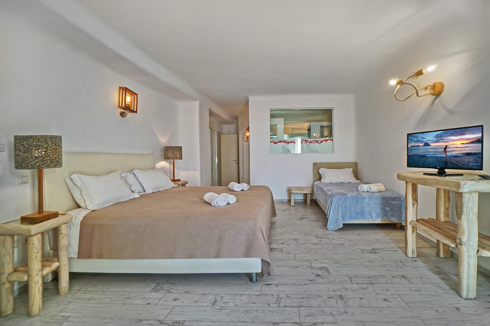 3rd Level: Discover a private escape with 1 Master room, a private wooden veranda, and a dedicated massage, yoga, and relaxation area. Delight in a semi-double bedroom with a breathtaking infinity 180° view and a private veranda for two. Fully air-conditioned, equipped with TV, safety box, and alarm.