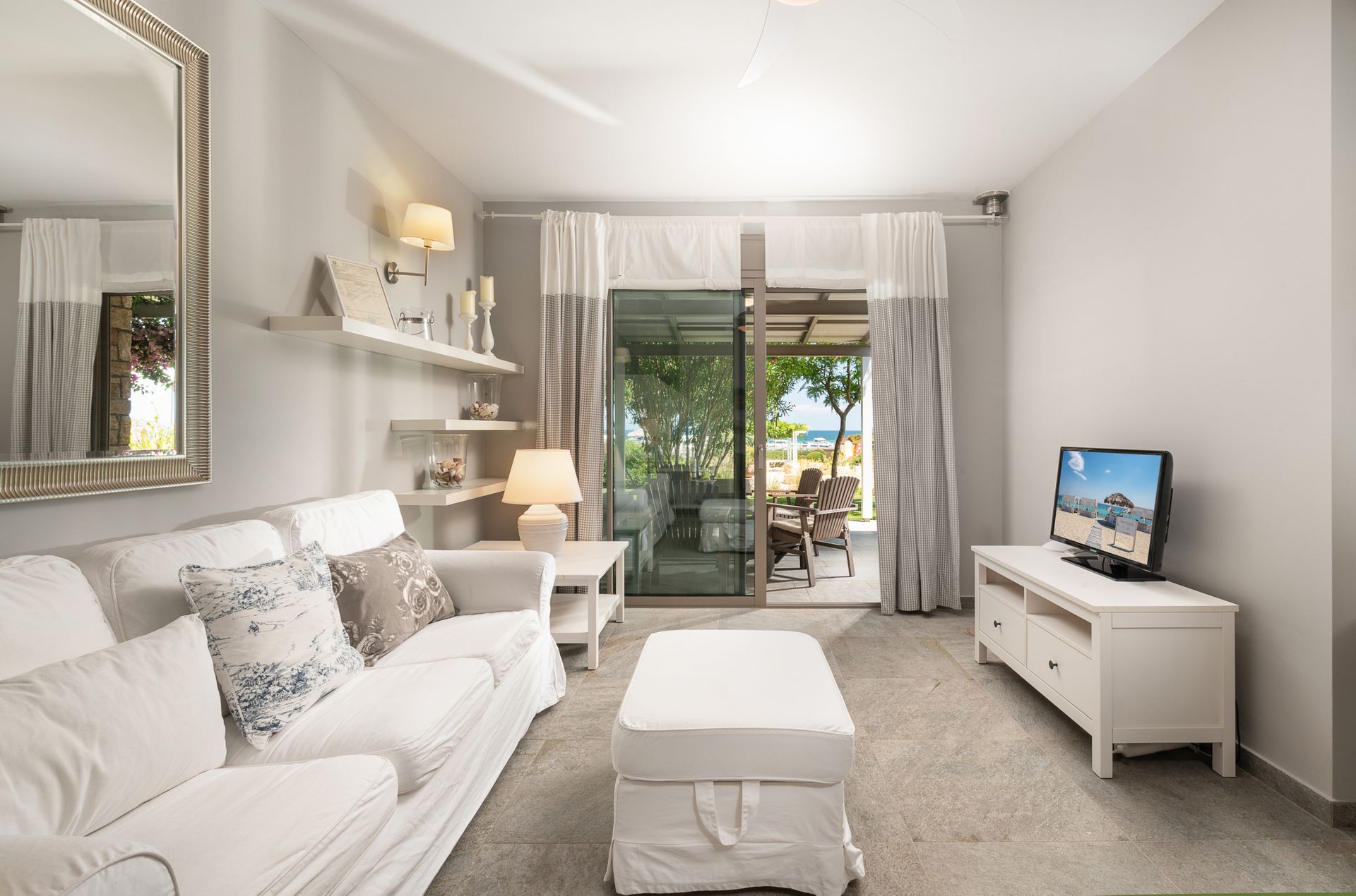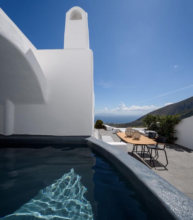 As you step into this exclusive retreat, panoramic vistas of Mykonos unfold before you, creating a picturesque backdrop for your stay.
