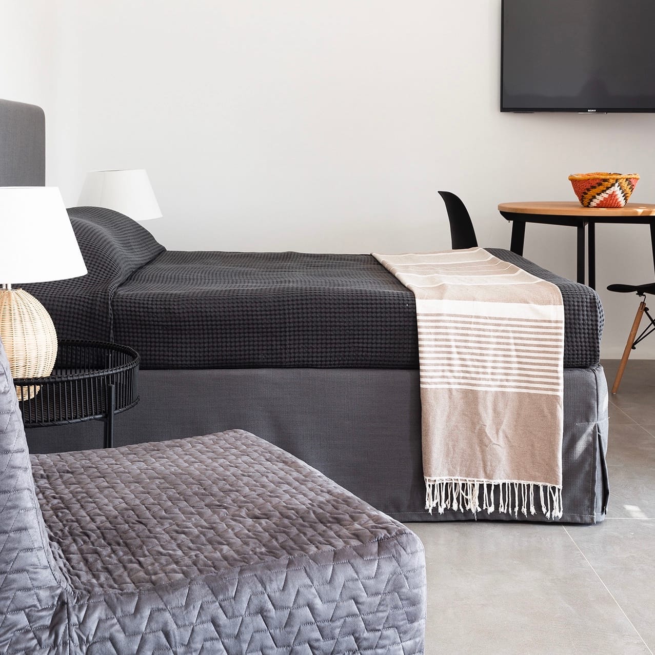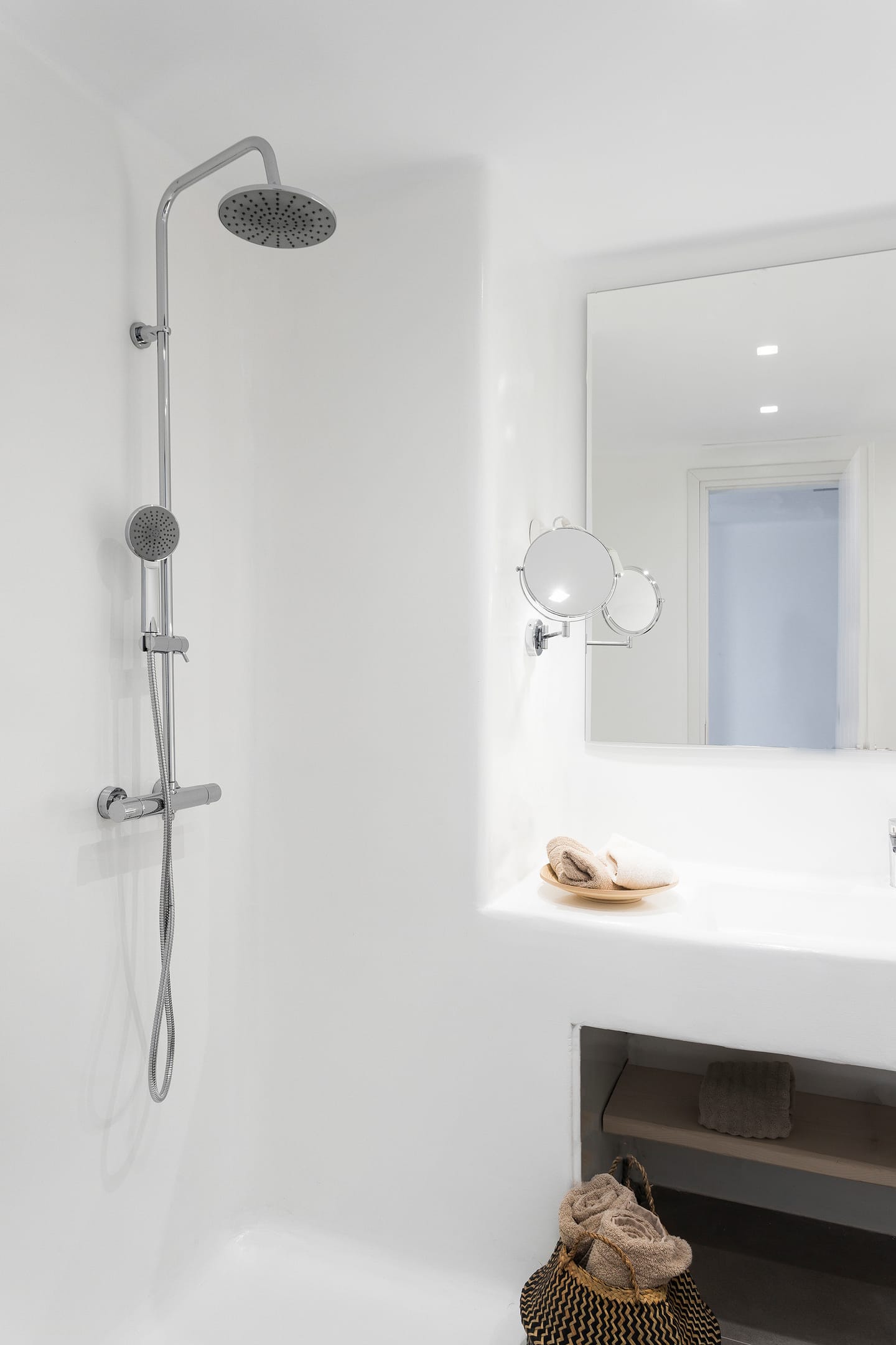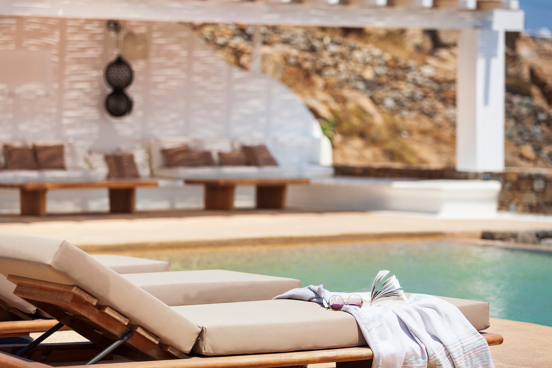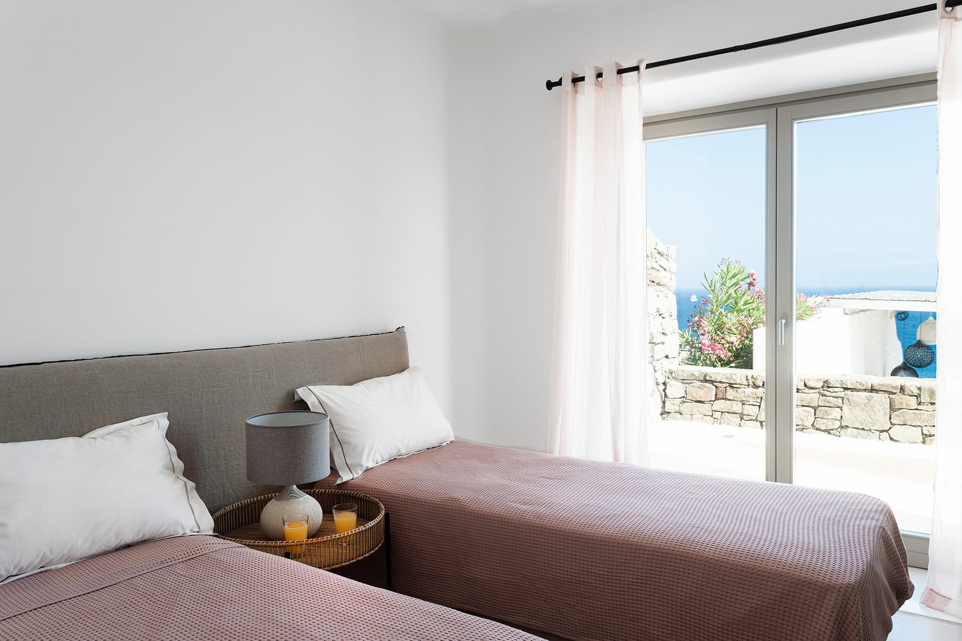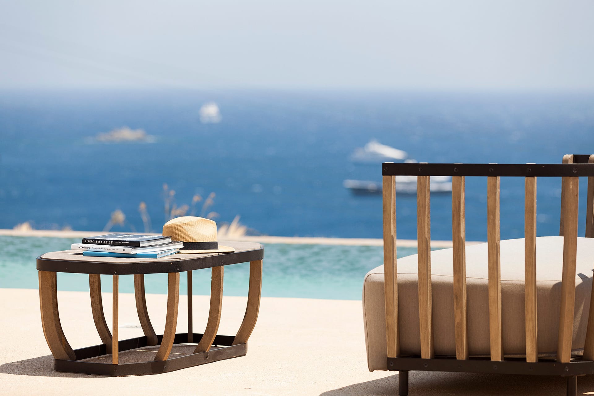 This elegant 600 sqm property, surrounded by shadowed lounge areas, comprises an infinity pool, a private gym and 10 beautifully decorated bedrooms. It is a true gem for families or large groups of friends who are seeking privacy moments, while staying a few minutes away from the Chora of Mykonos.