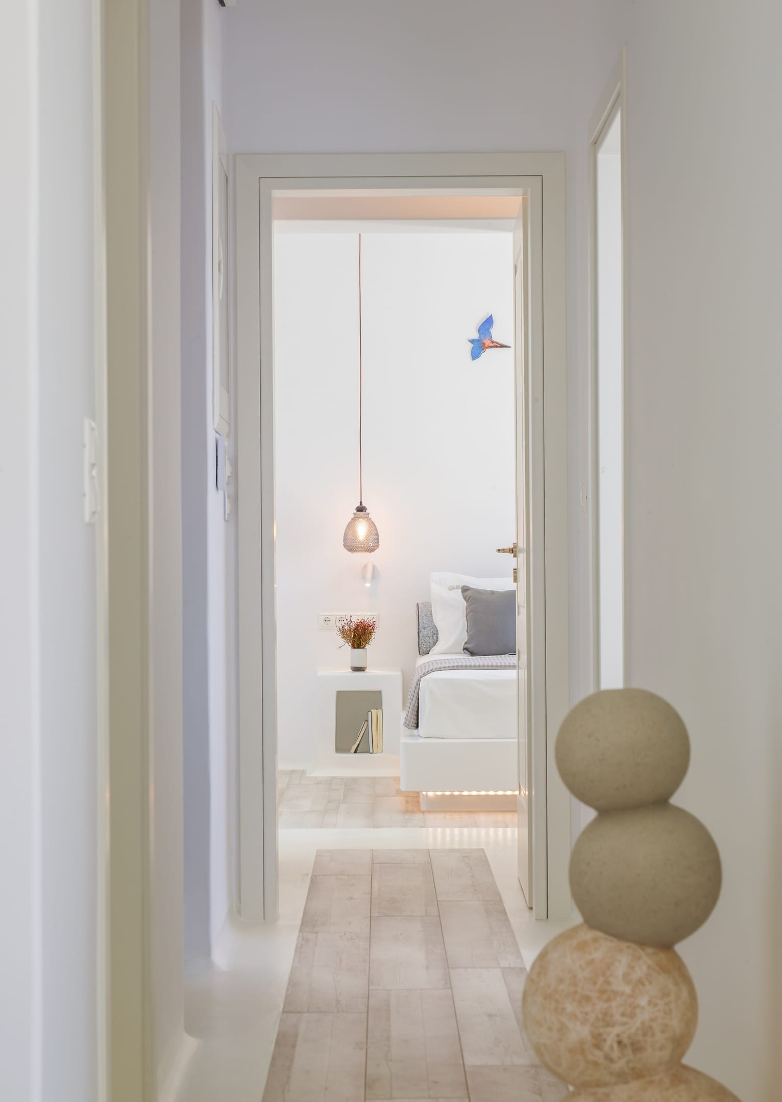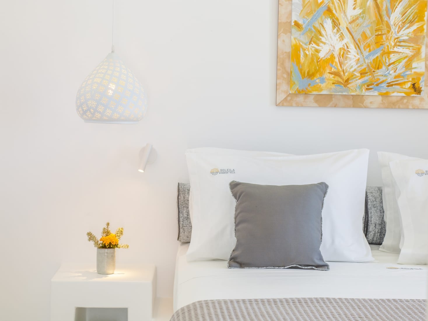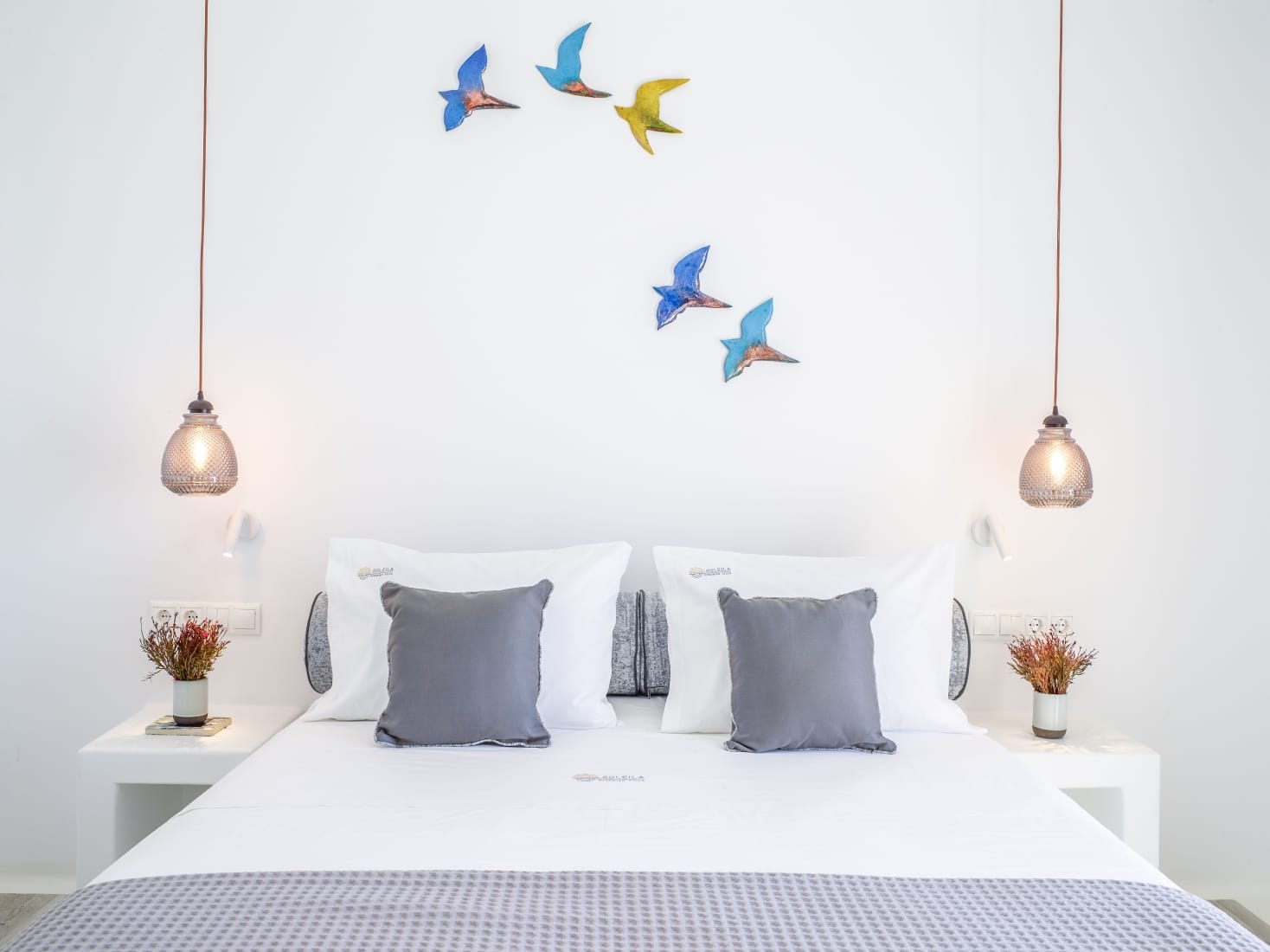 The outdoor spaces are perfect for a relaxing day and treasurable summer moments, enjoying night views with the glow of the pool lights, and eventful gatherings in the outdoor dining area (can sit up to 10 guests) with BBQ facing the magnificent blue of the Aegean Sea.