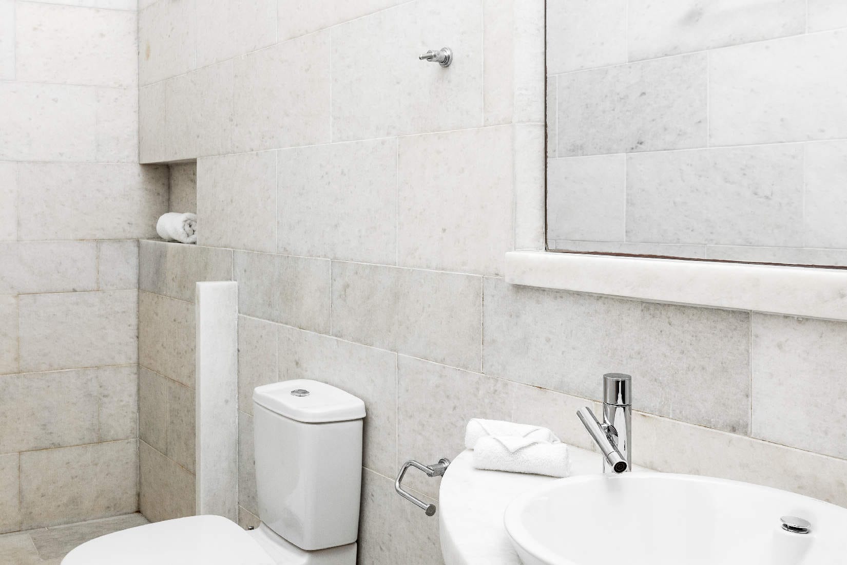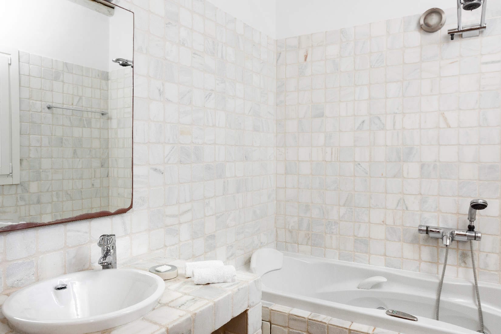 On the Upper Level, Villa Julius has a master bedroom with a super King size bed with an en suite bathroom with a jacuzzi, and a private balcony that affords an extraordinary view of the Aegean Sea.