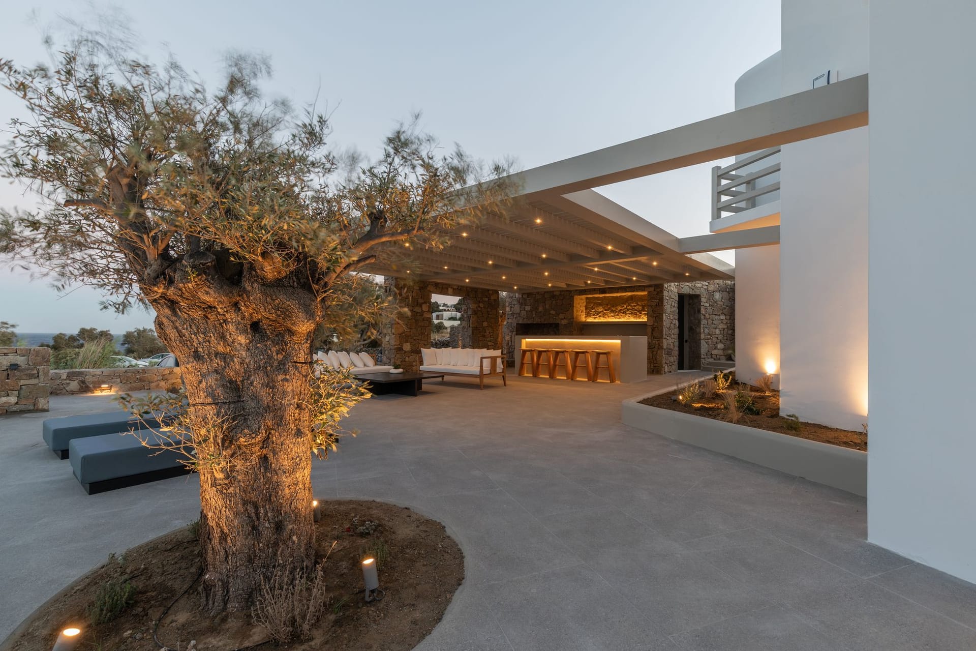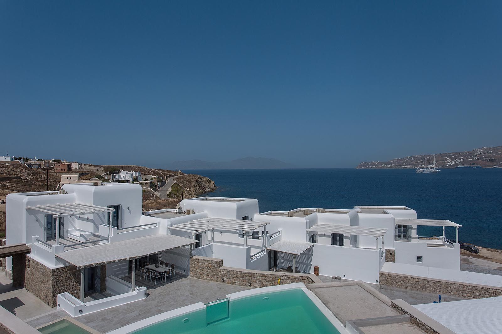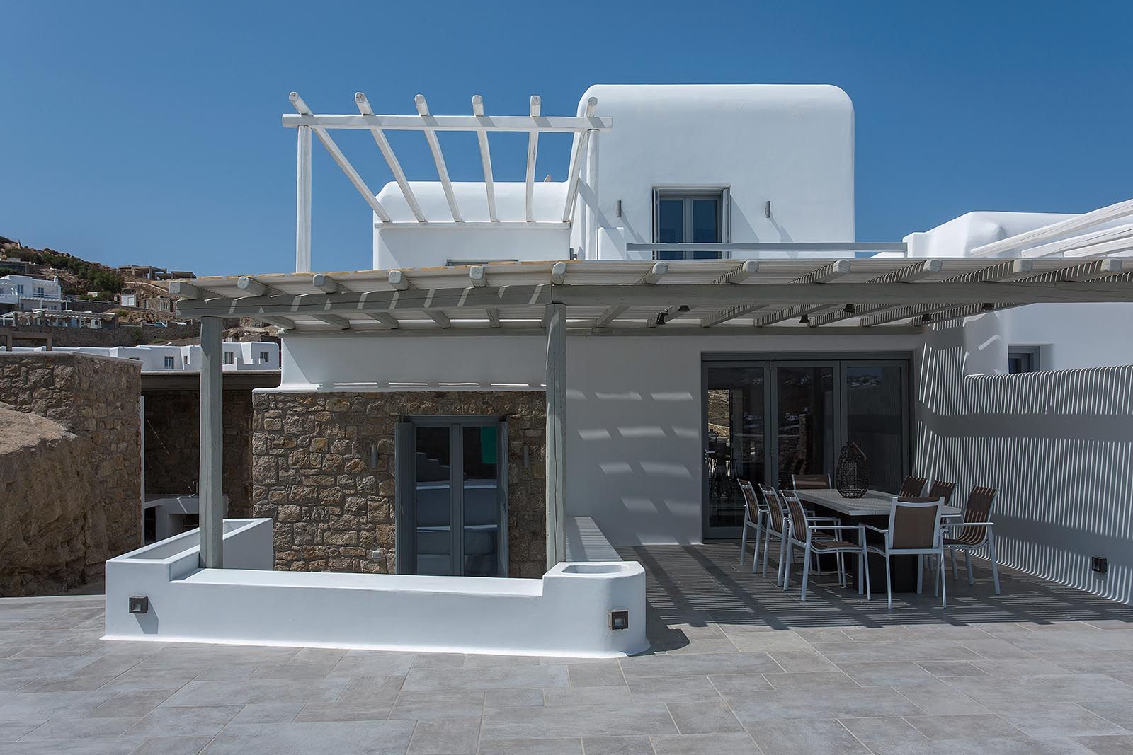 The awesome and elegant property offers seclusivity and privacy moments to its guests. Its unique minimal design, and impressive architectural character inspired by the Cycladic architecture, make Villa Valerie an ideal holiday accommodation for those seeking an authentic summer experience on the most cosmopolitan island of Greece.
