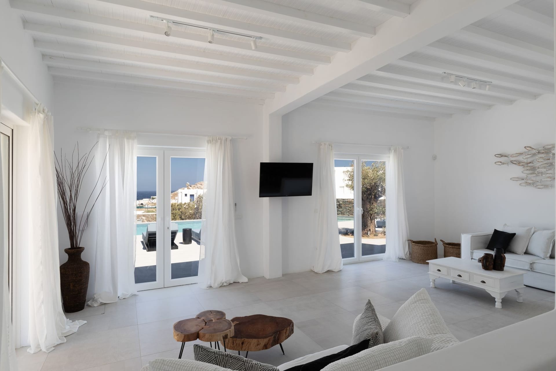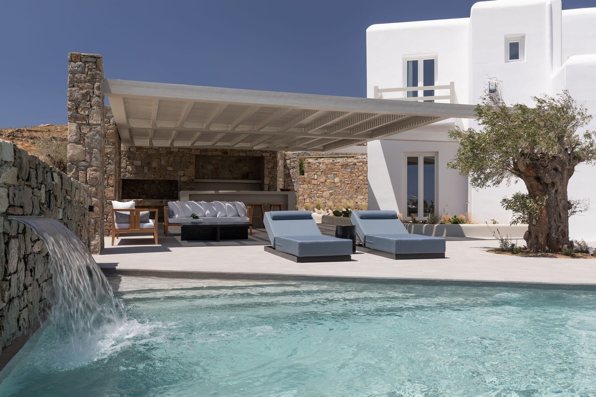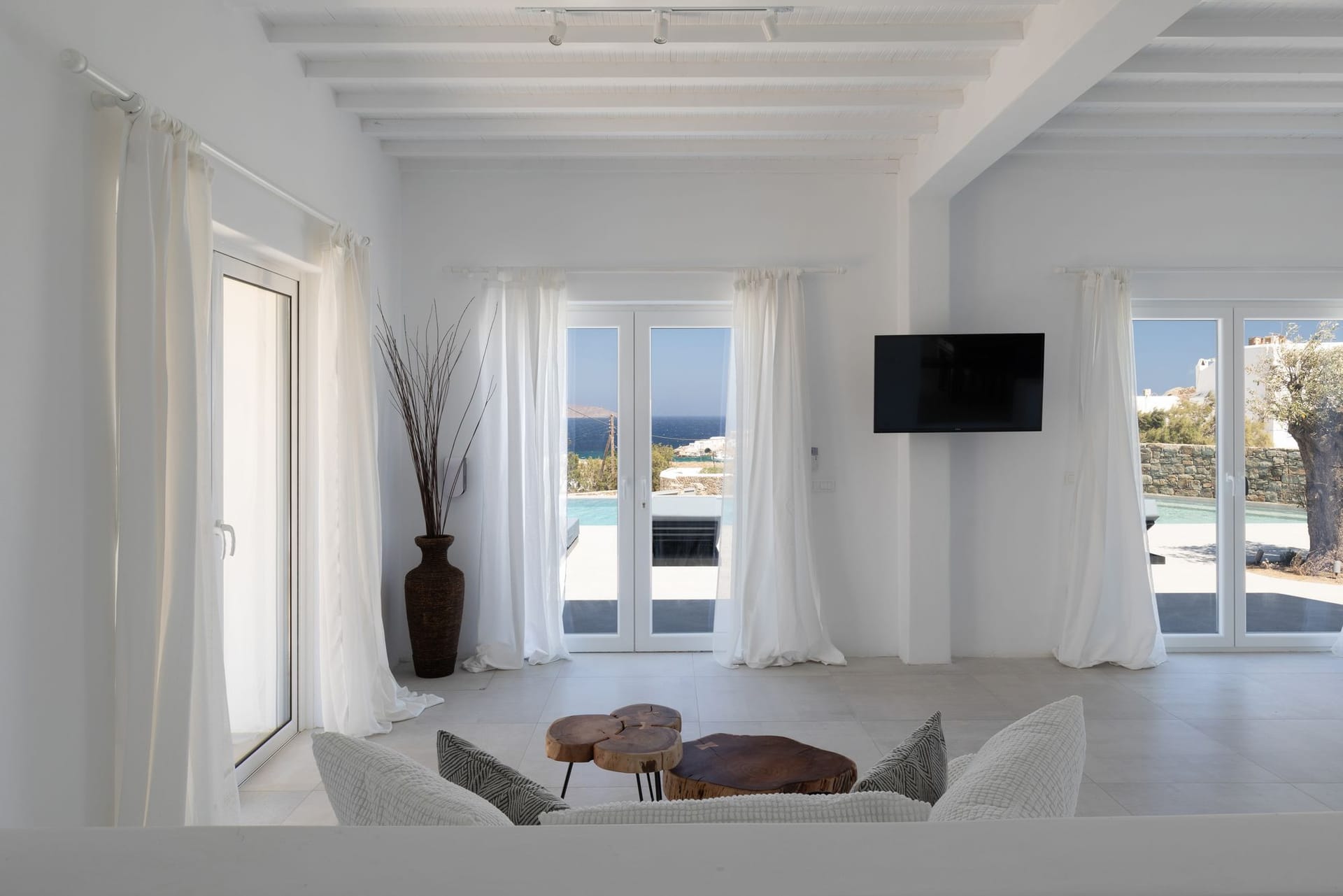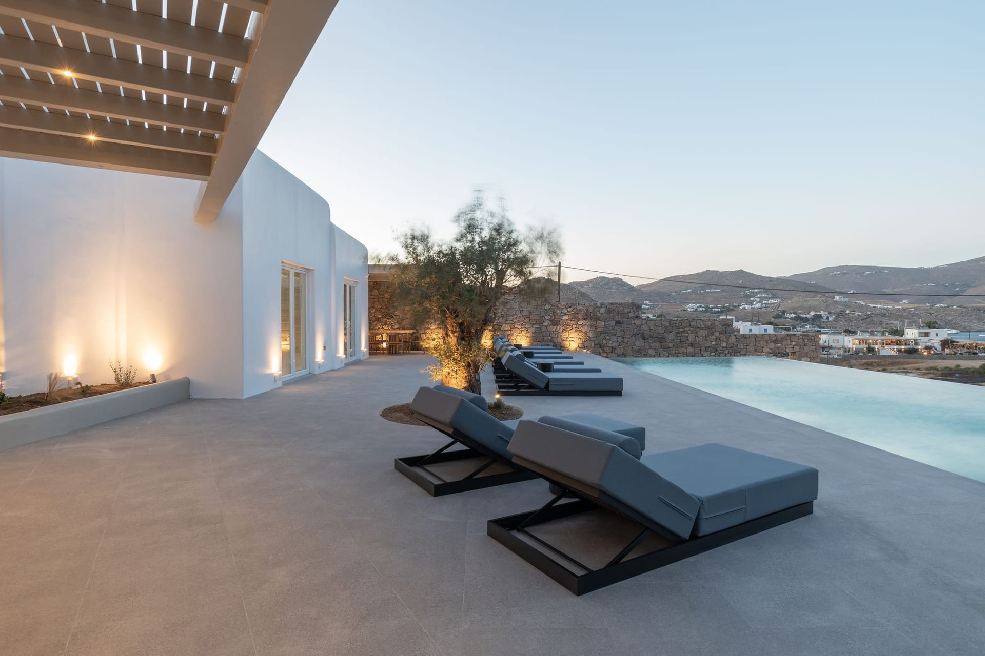 The awesome and elegant property offers seclusivity and privacy moments to its guests. Its unique minimal design, and impressive architectural character inspired by the Cycladic architecture, make Villa Valerie an ideal holiday accommodation for those seeking an authentic summer experience on the most cosmopolitan island of Greece.