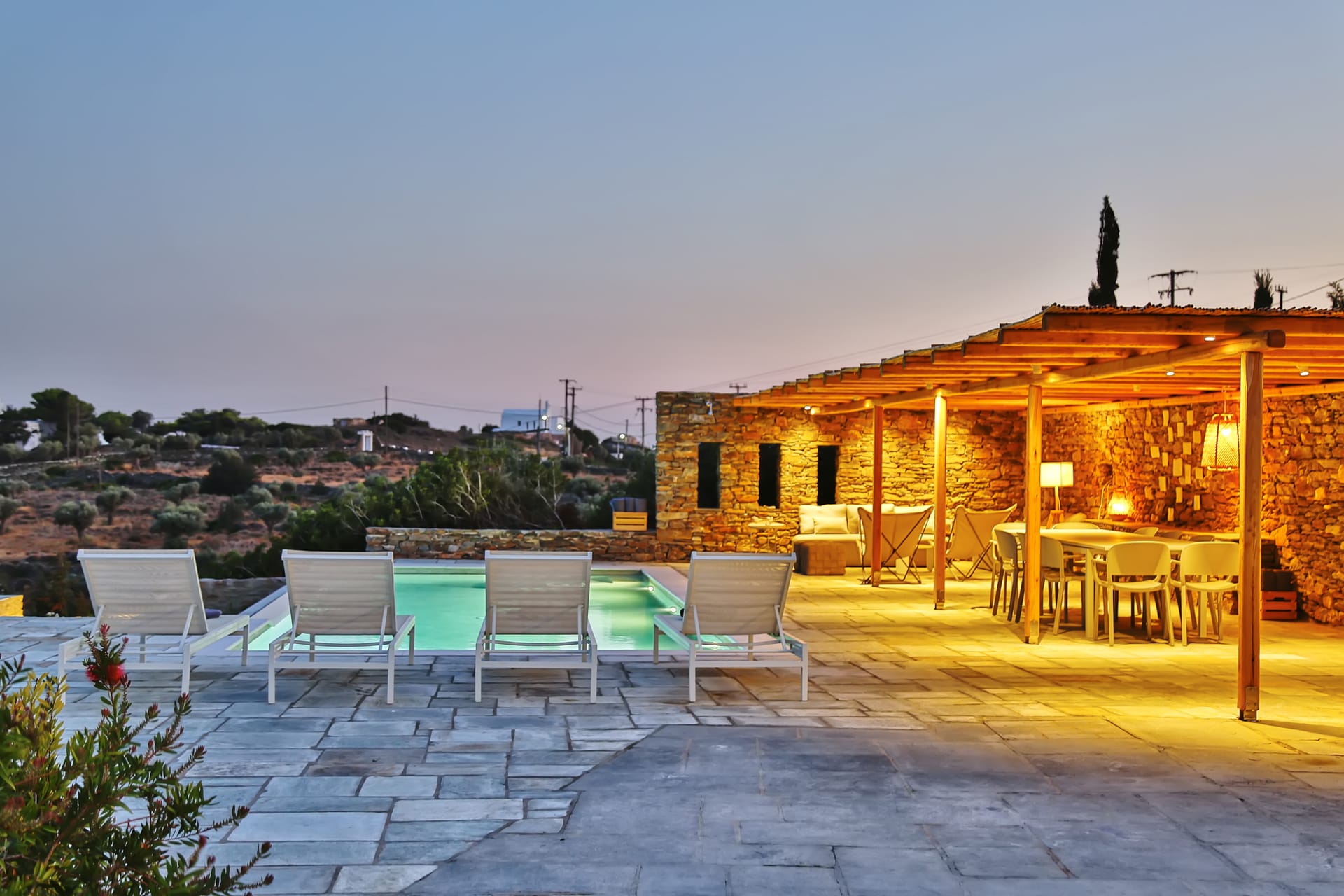 Casa Mare on Sifnos Island features a private pool for group and family fun. Enjoy the mesmerizing Aegean views in every direction. Multiple verandas offer delightful spots to relax and revel in the island’s allure. Discover the ample grounds for an unforgettable getaway!