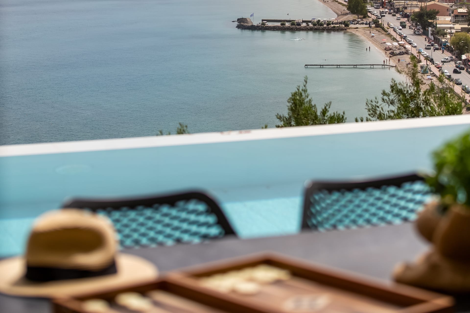 The outdoor areas include a private pool with sunbeds, a poolside dining area, as well as private balconies with a great panoramic view to the Old Harbor of Spetses.