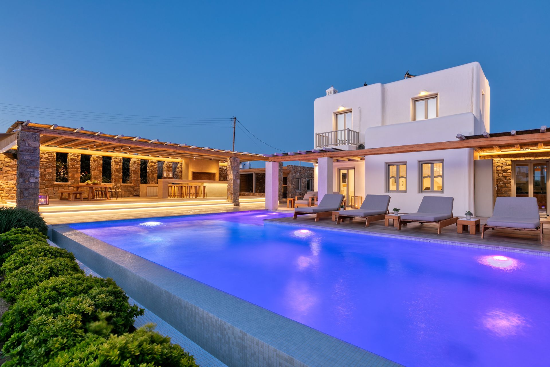 The outdoor area with the private swimming pool is the ideal spot for relaxing moments, sunset cocktails, family & friend gatherings.