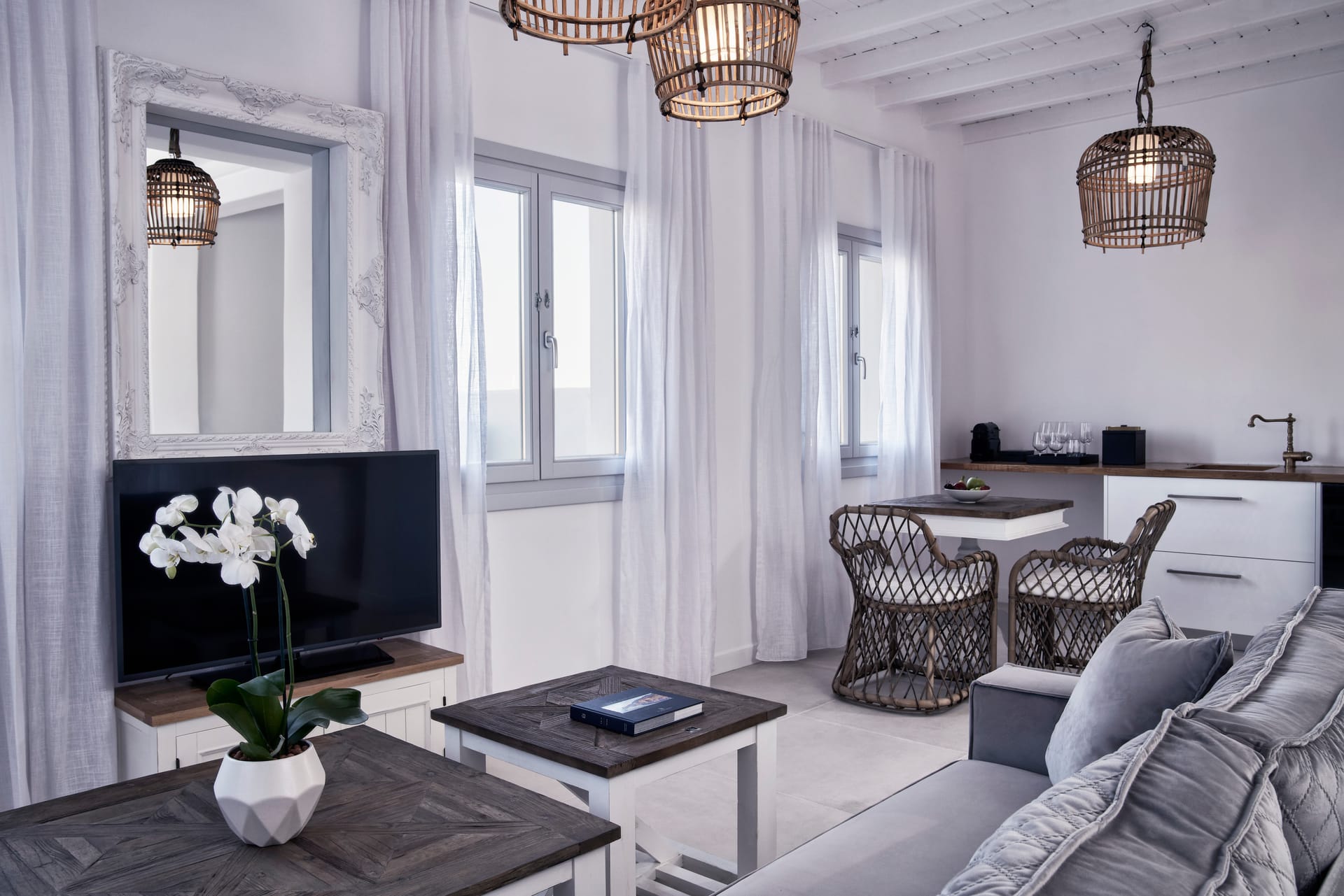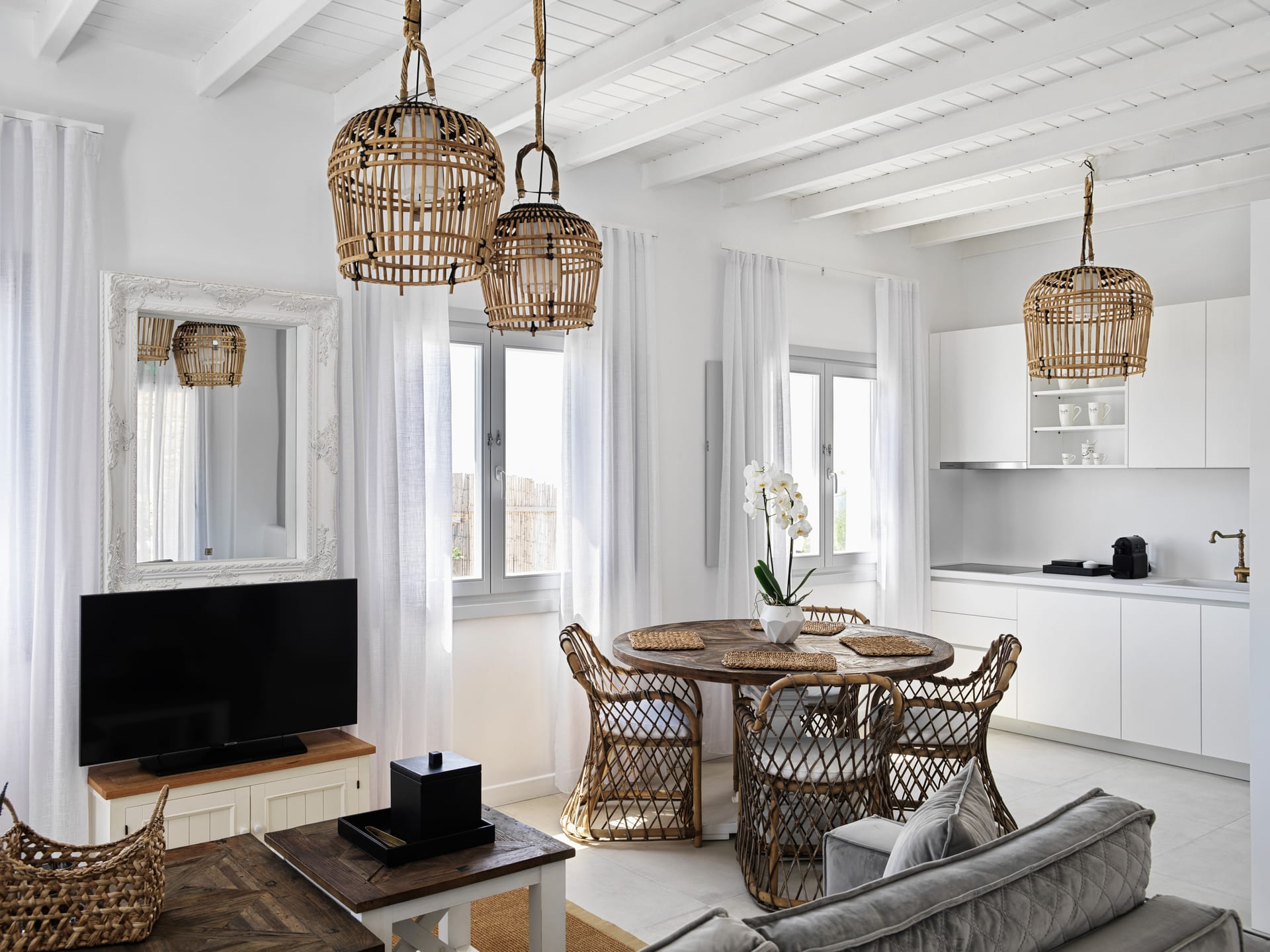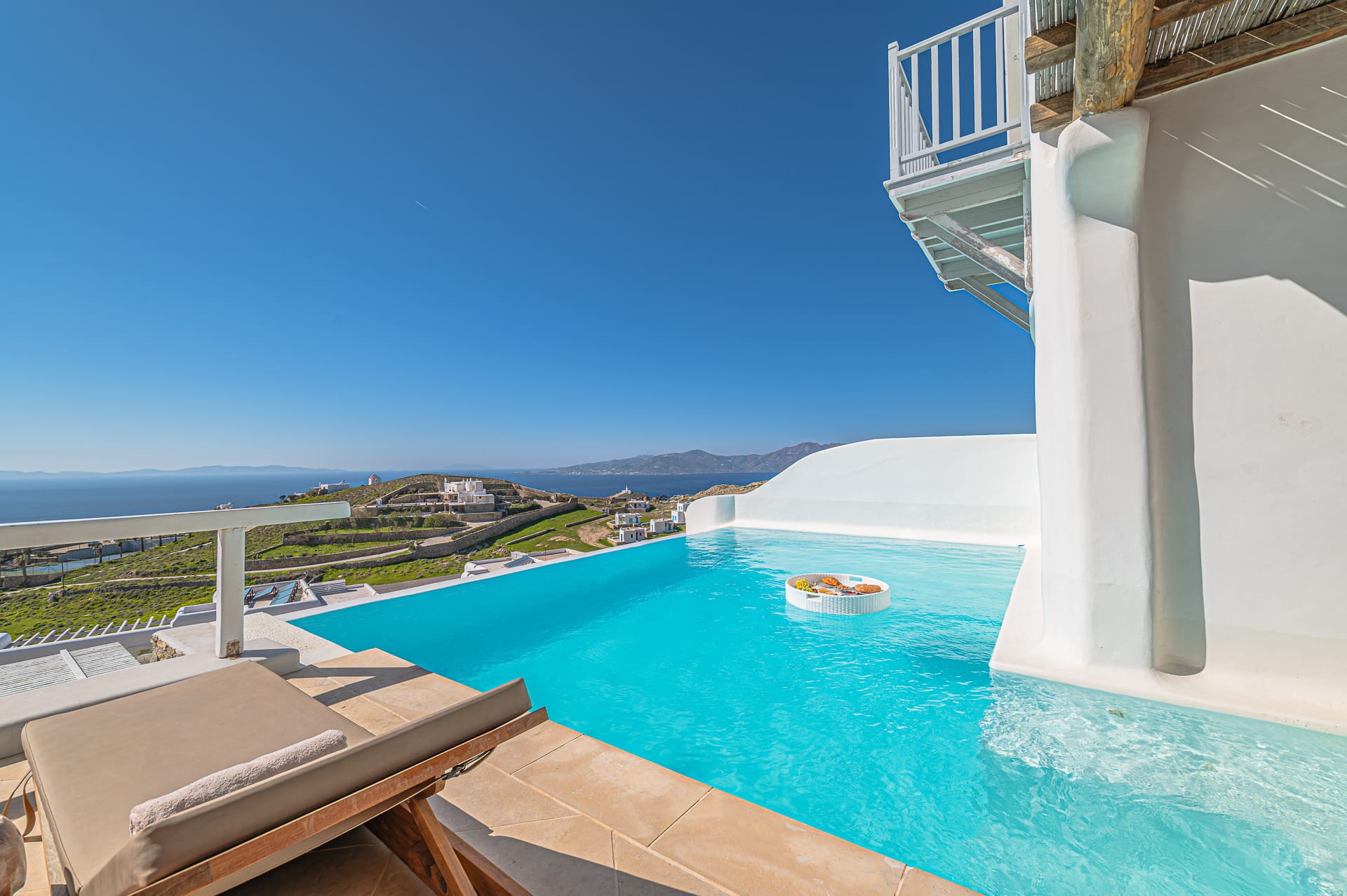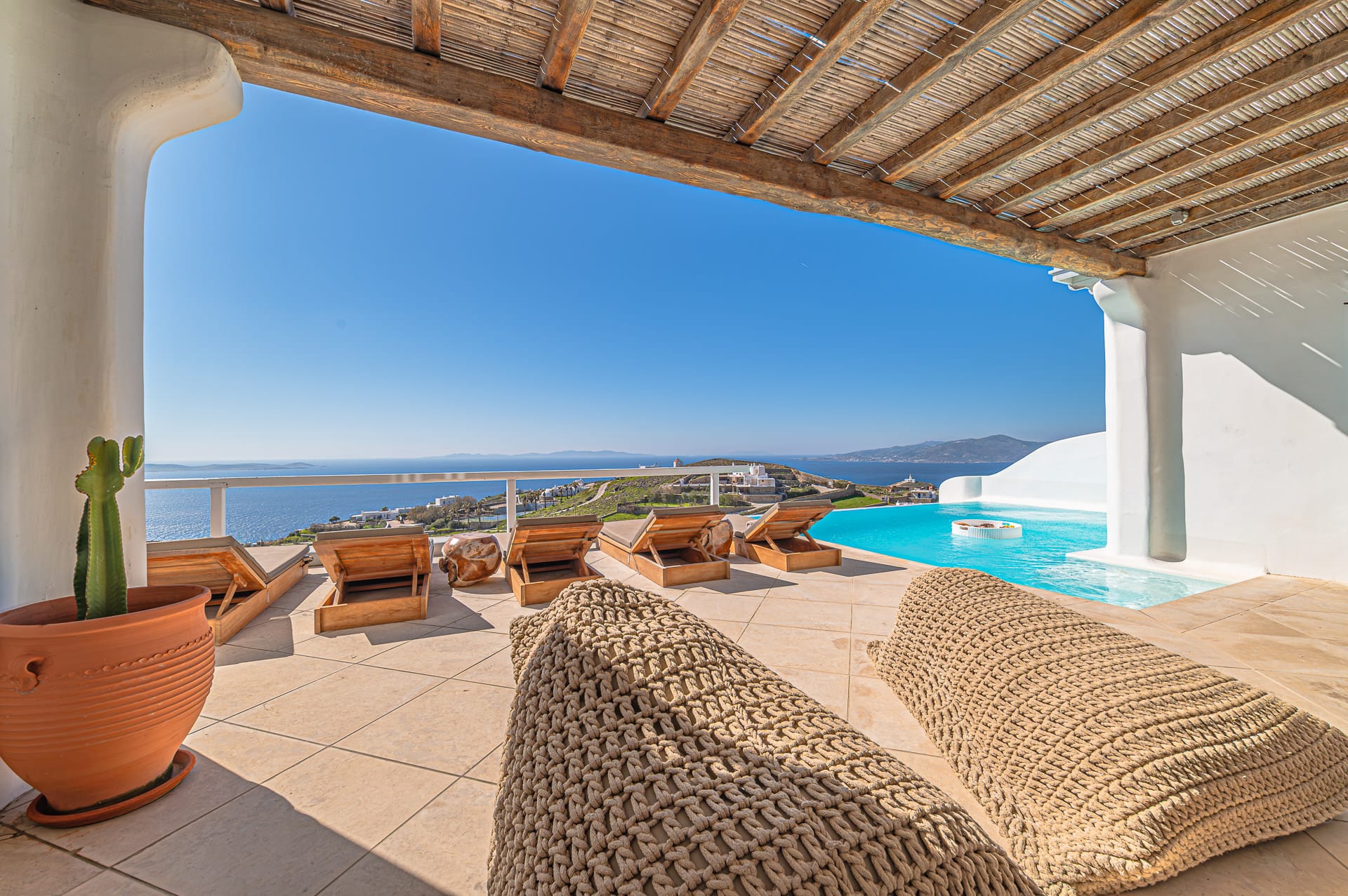 The outdoor areas include a private pool with sunbeds, a poolside dining area, as well as private balconies with a great panoramic view to the Old Harbor of Spetses.