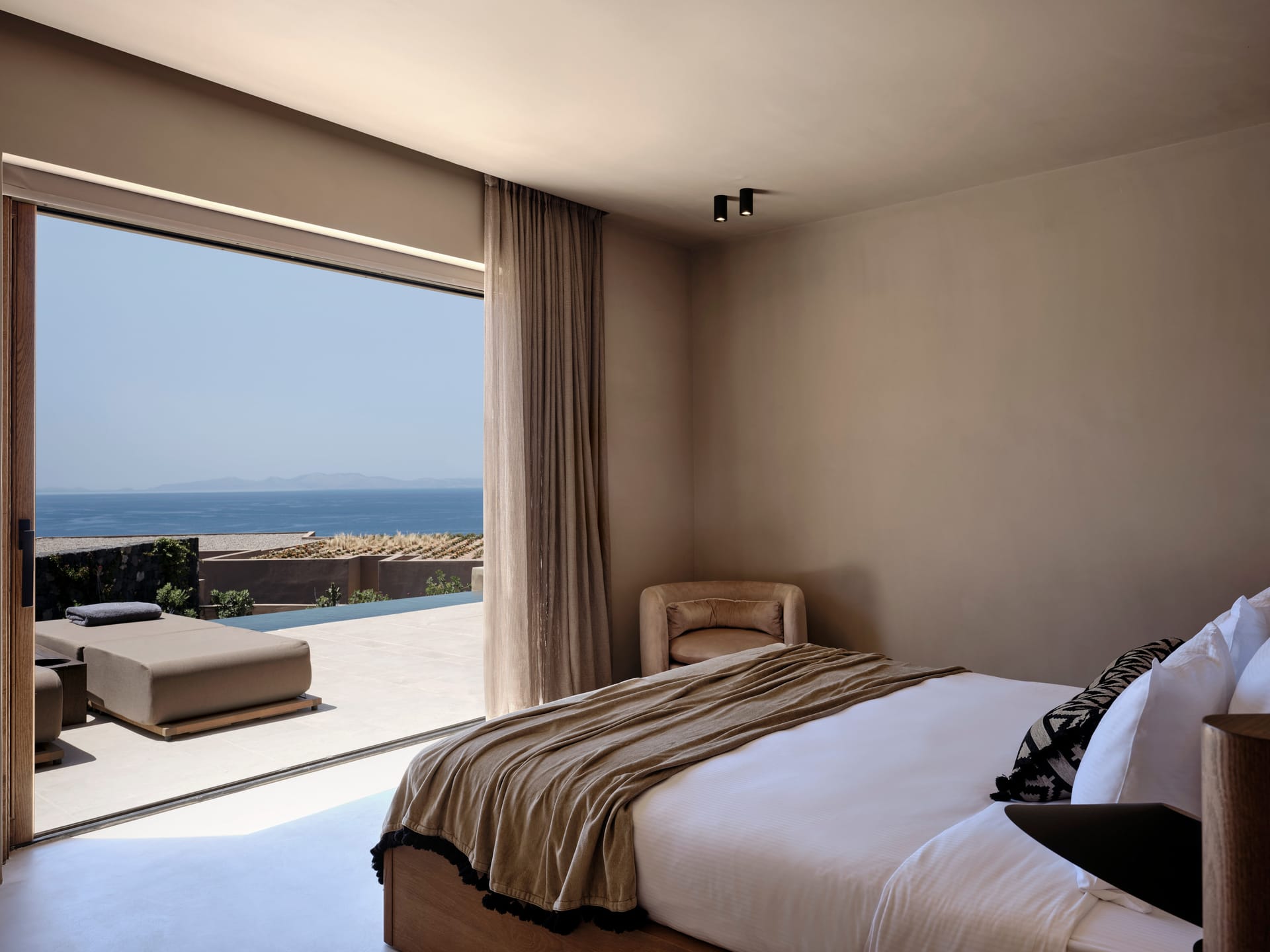 This luxurious beachfront villa of 900 sq.m. with a large private swimming pool, awaits you to host your perfect vacation on the beautiful island of Syros. A large private area of 3000 sq.m. surrounds the villa. Verdant gardens, furnished patios, BBQ, sunbeds, and pergolas fashion the contemporary and luxurious layout of the vast yard with direct access to the beach. The large swimming pool dominates the site.