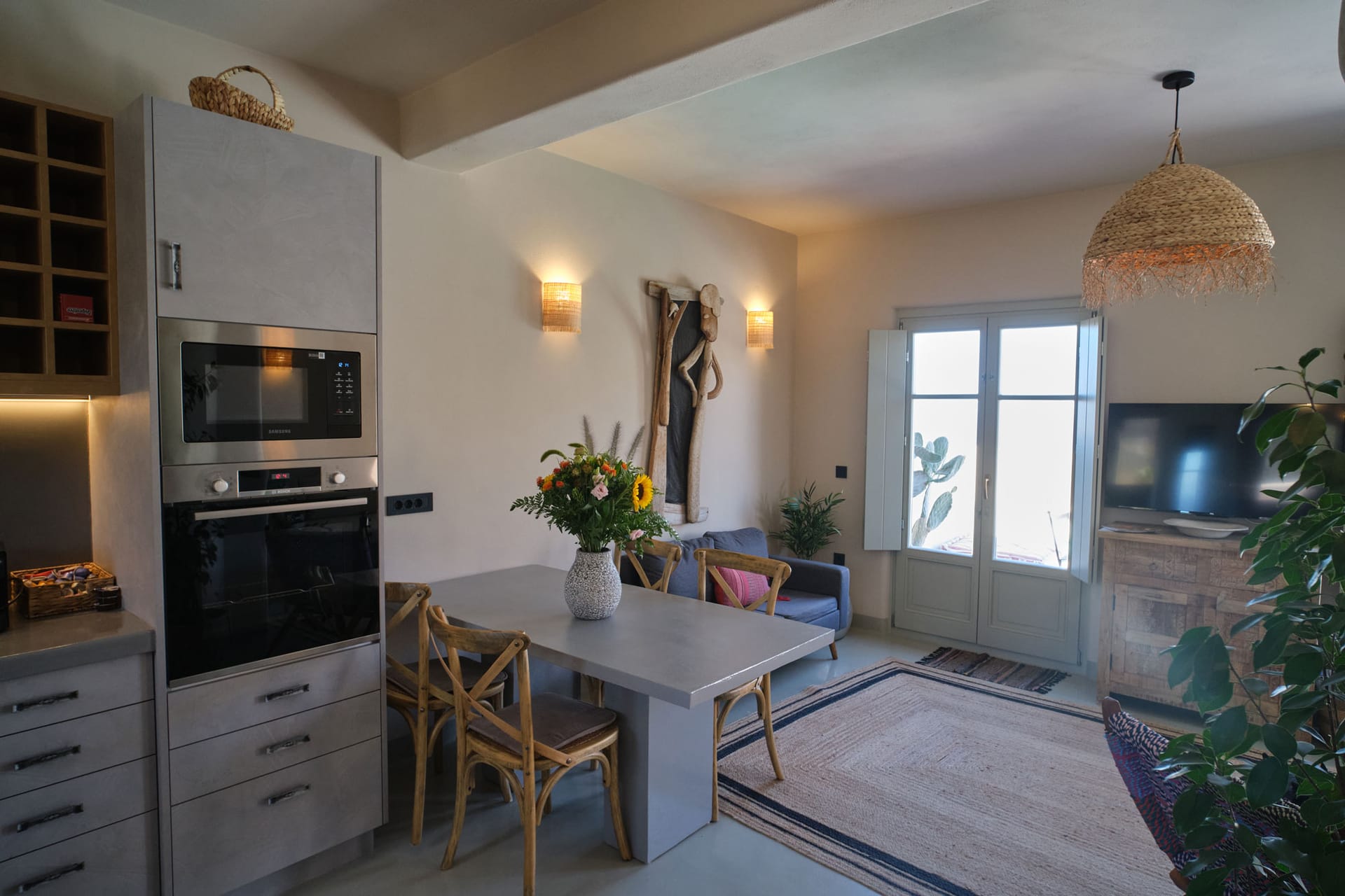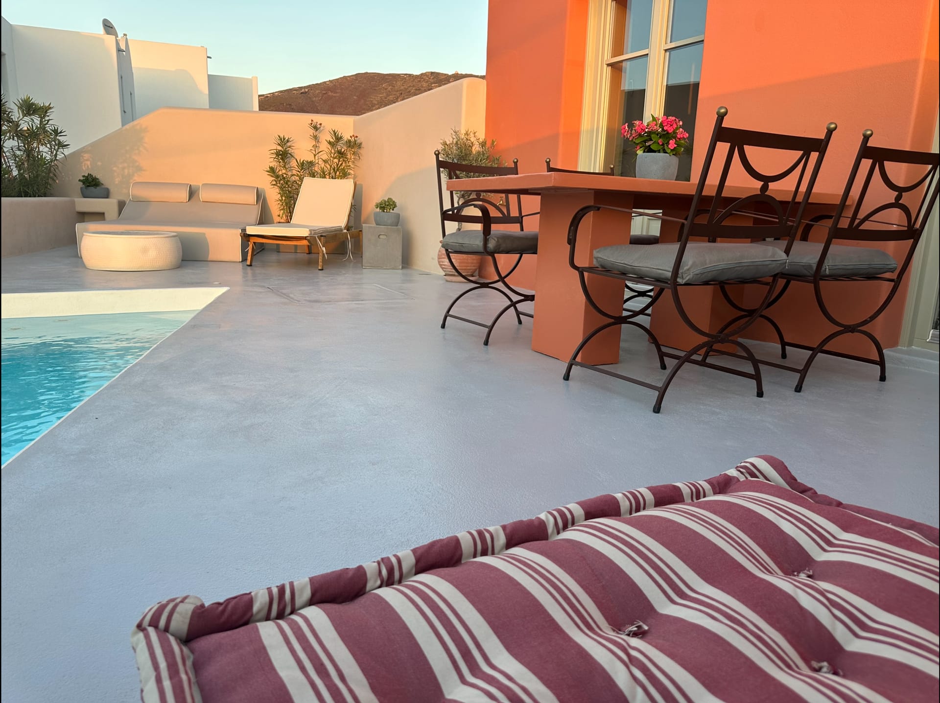 This beautiful villa, which was constructed in 2023 on our family property, is situated within the charming settlement of Foinikia and has a luxurious local ambiance. One of the notable features of this villa is its close proximity to all the amenities necessary for a truly relaxing holiday experience. Within a short distance, you will find a convenience store, restaurants offering local cuisine, and picturesque churches. Additionally, there is complimentary public parking available just a few steps away. Should you walk a little further, just a ten-minute walk from Foinikia will lead you to the stunning caldera and the vibrant village of Oia. Foinikia itself is a tranquil village, and the remarkable aspect of Pink Freud Villas is its convenient accessibility to Oia, where you can savor the world-renowned sunset, indulge in excellent shopping, visit lively bars, and dine at upscale restaurants. However, upon returning to your "home," you can relish in serenity and enjoy an evening drink beside your private pool.