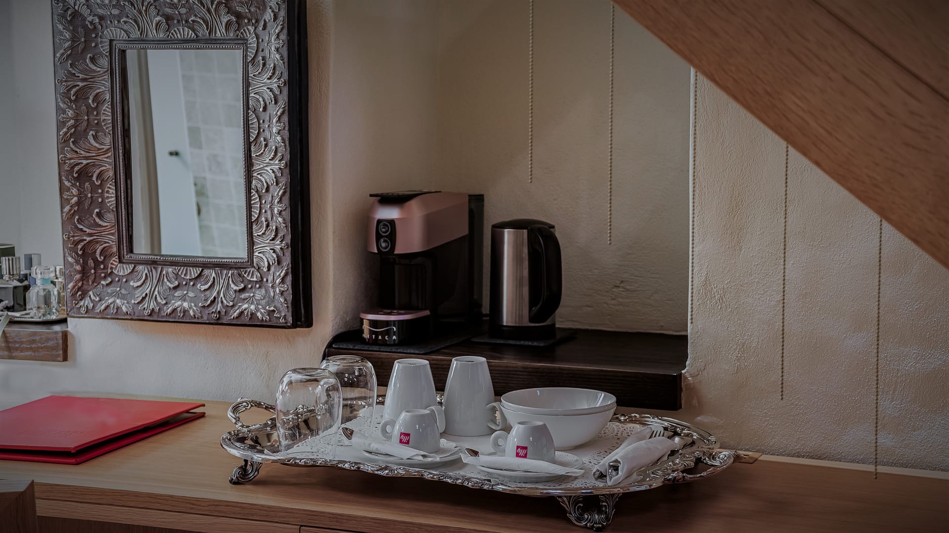 Lovely furniture and collected items, beautiful colours and discreet lighting give this suite its particular charm.