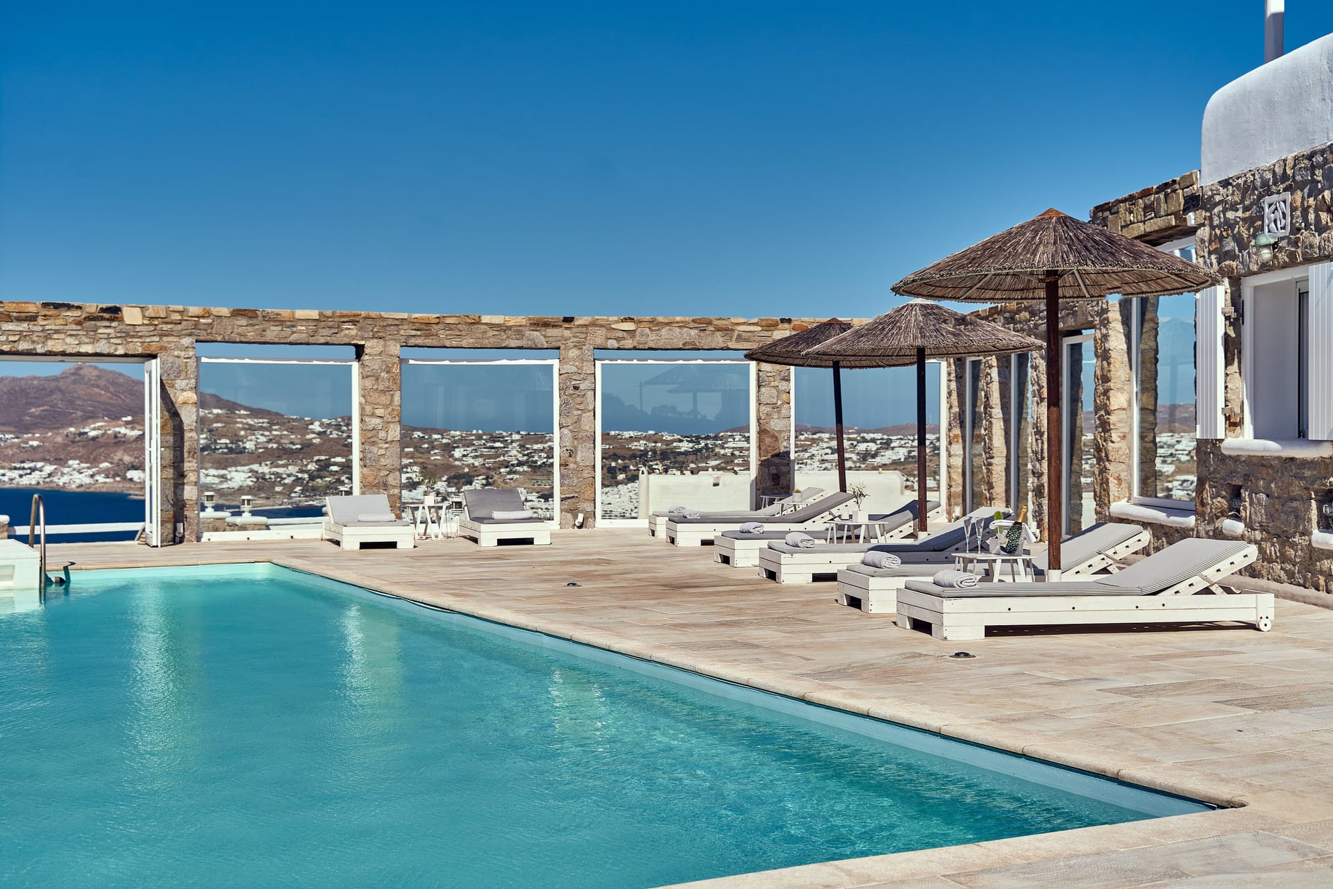 ▪ 1 balcony 34 m2 facing Mykonos Town and the Aegean Sea.