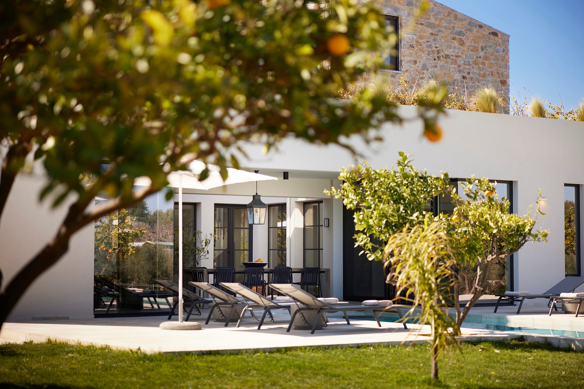 Paradise and serenity awaits you at the newly refurbished sea view Serenus Luxury Villa in the beautiful Greek Ionian island of Zakynthos. The estate is set upon a ridge over the Ionian Sea overlooking Marathonisi Island with a magnificent unobstructed view of the azure blue sea, approx. 200 meters from the nearest beach. The villa is built upon a hillside and is situated in a natural forest of pine and fir, on a plot of approx. 10,000 square meters, providing an environment of peace, tranquility and privacy.
