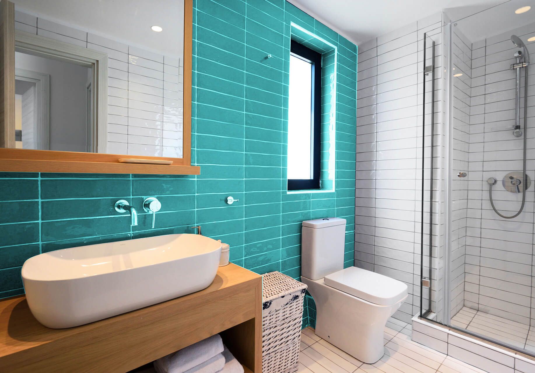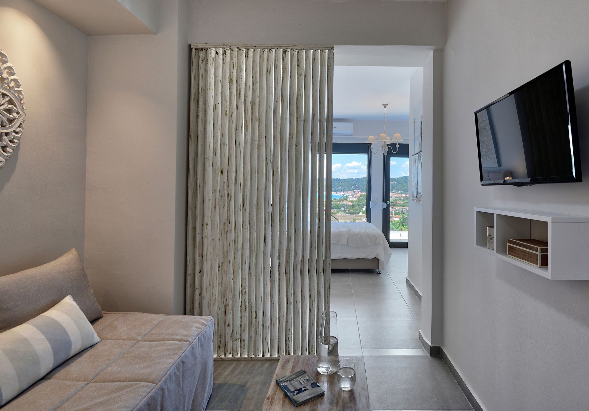 On the first floor, you will find a luxury 30 sq.m. master suite, consisting of a queen size bed and a comfortable secondary space with a double bed. You will also find one more double bedroom with a queen size bed and a shower bathroom. What is more, the first floor consists of a large terrace with a sweeping sea view.