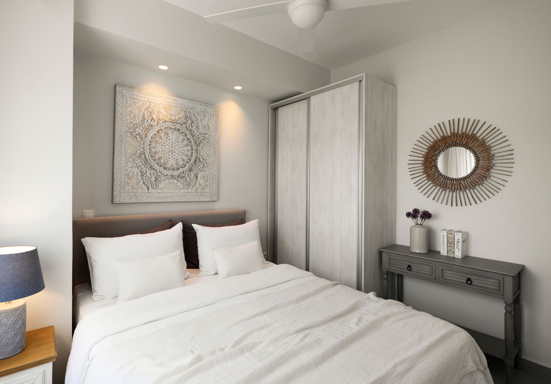 Each Premium 3 Bedroom Private-Pool Villa can comfortably accommodate up to eight people. Designed with high-aesthetics and Art Deco elements, the villas offer one open plan ground floor consisting of a spacious living room area, a fully equipped modern kitchen, a double bedroom and a shower bathroom. In every room, there is either an A/C or a ceiling fan.
