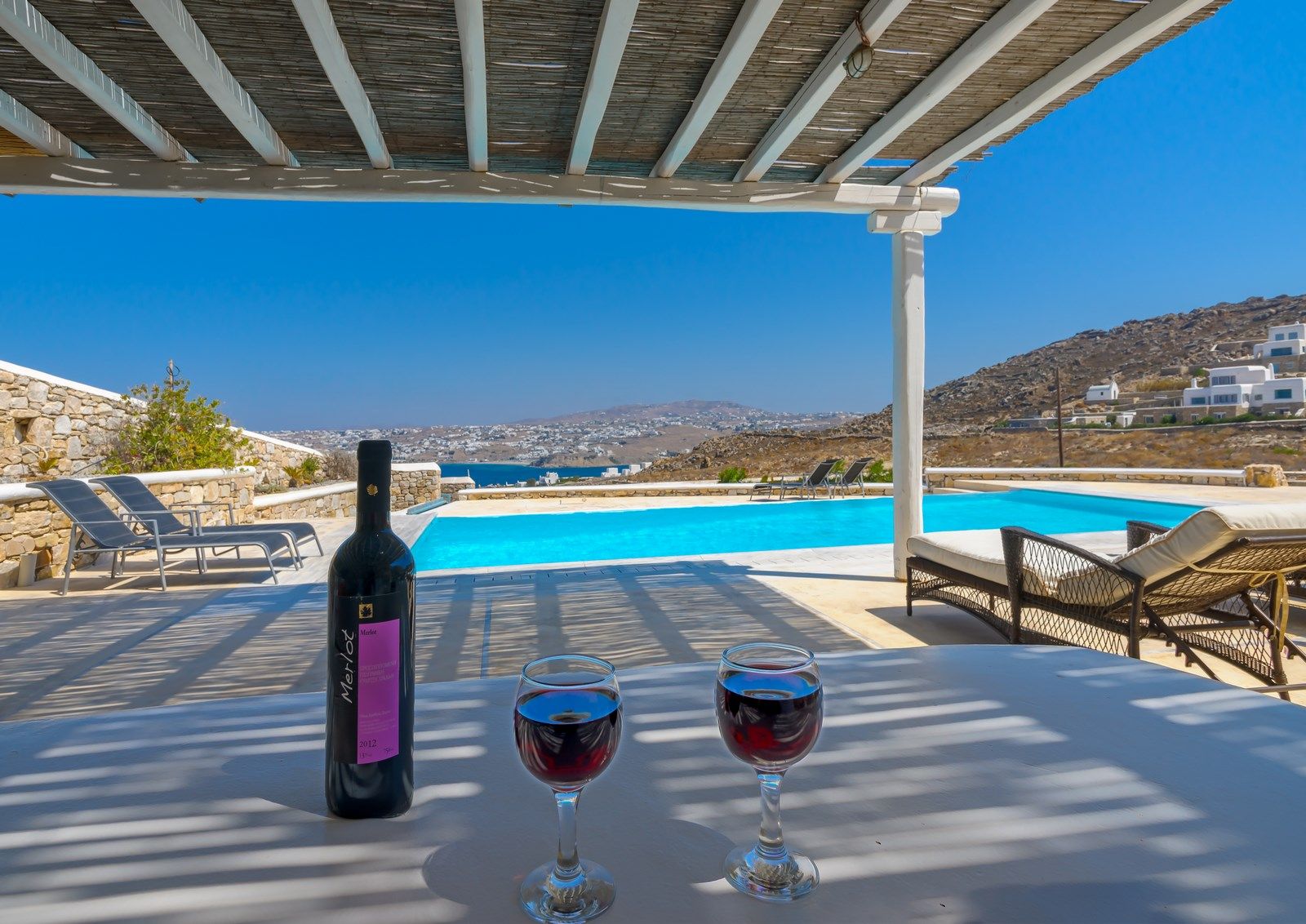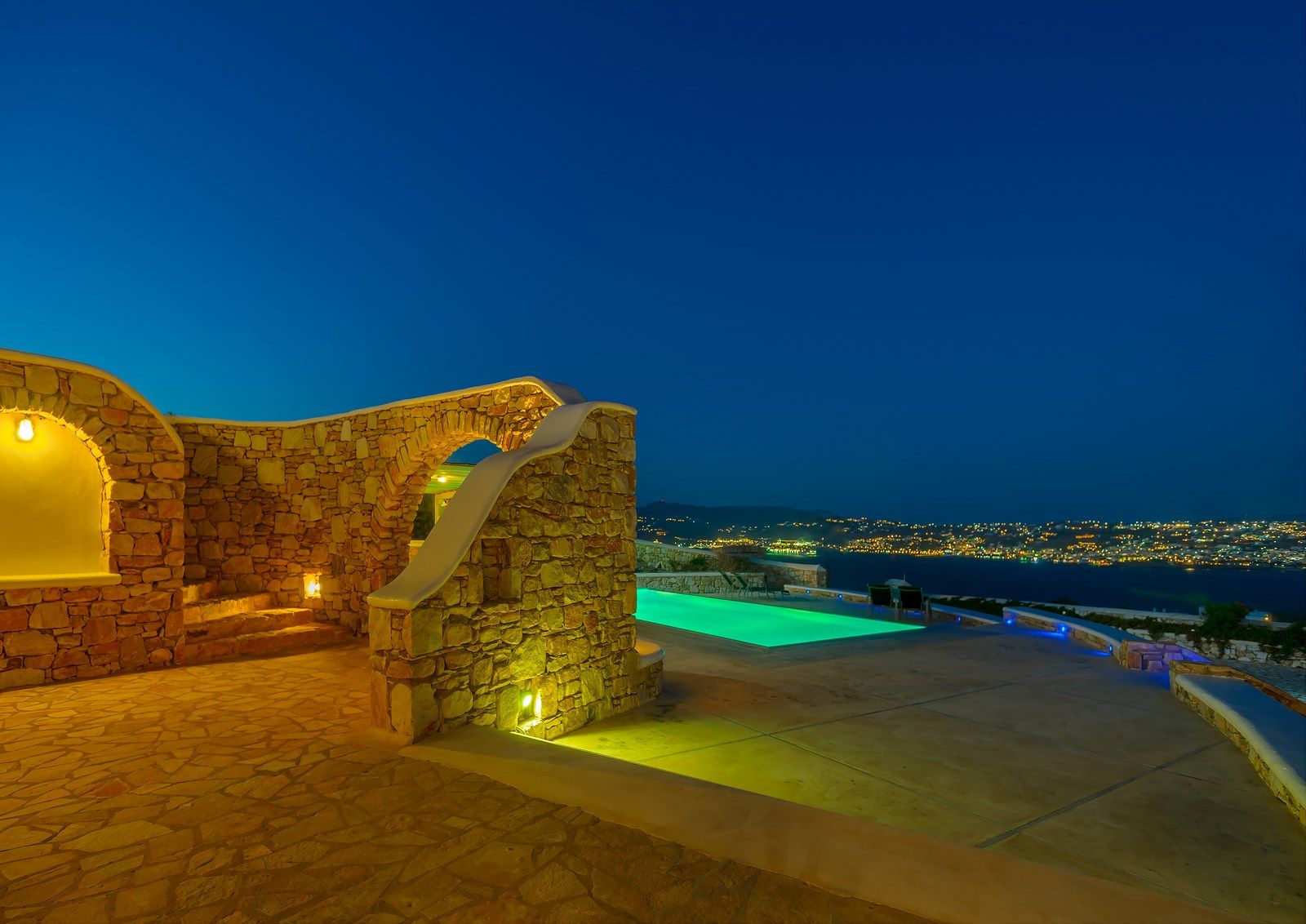 The nearest public transportation stop is 800 meters from the villa, though it’s uphill. We recommend Using our Convenient Private mini van service or renting a car or motorcycle to explore all that Mykonos has to offer—from stunning beaches by day to the vibrant nightlife.