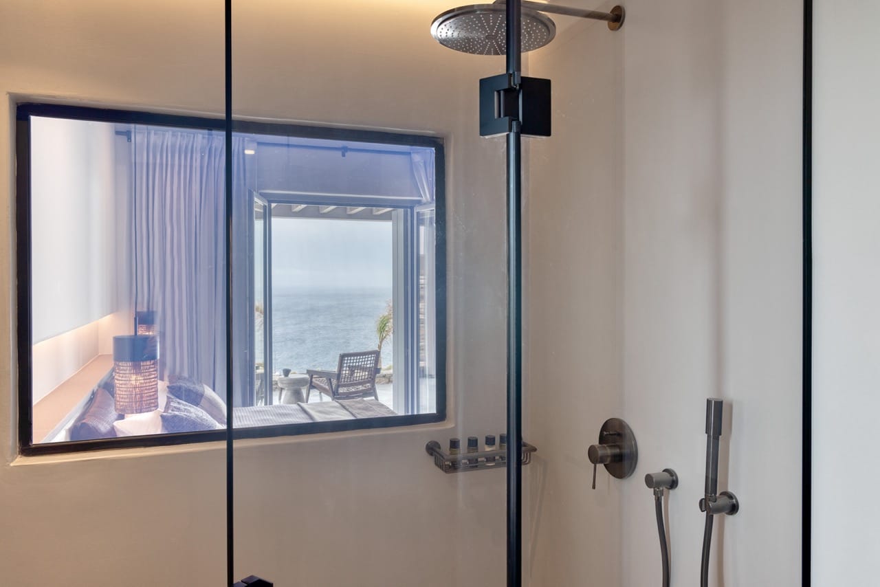 well-designed hot shower, direct access to a terrace via balcony doors | panoramic sea view room |