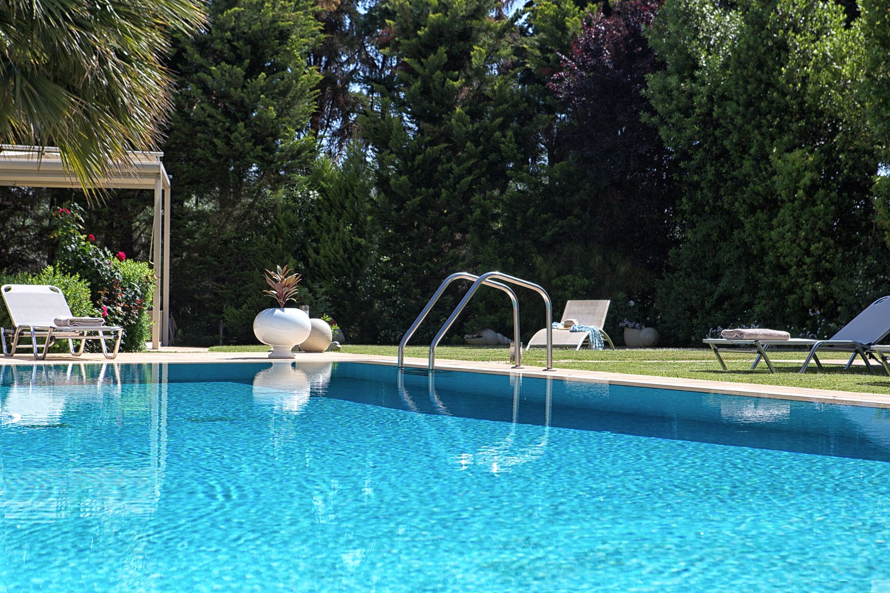 The swimming pool is located at the center of the outside terrace, with huge sun loungers and sunbeds, fitted around the pool while the pool bar can accommodate your desires to make your own cocktails.