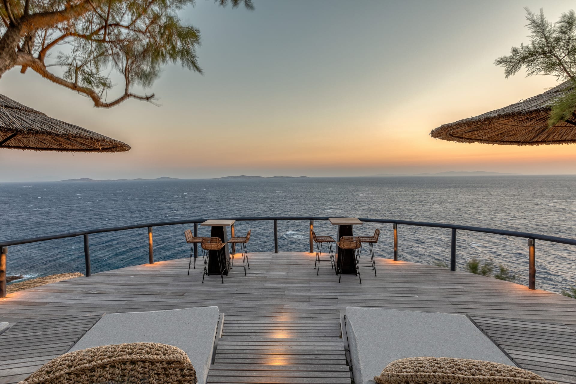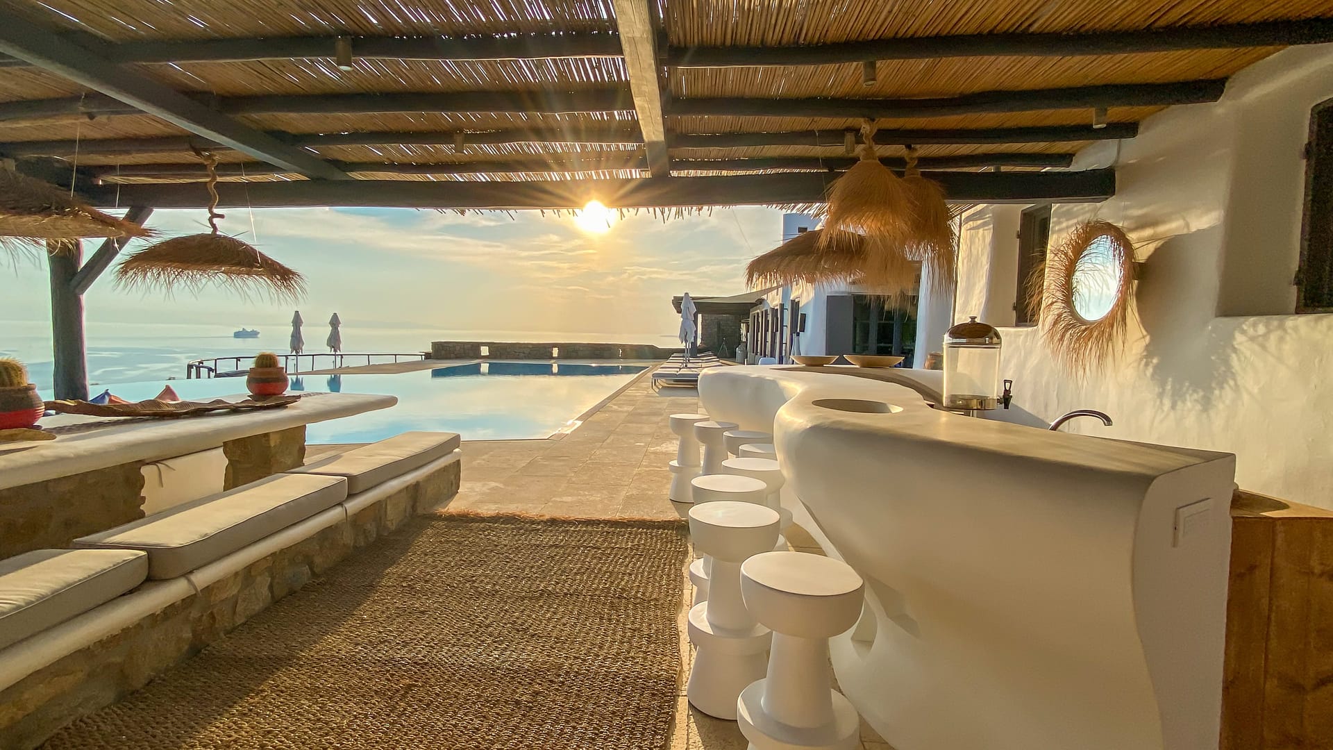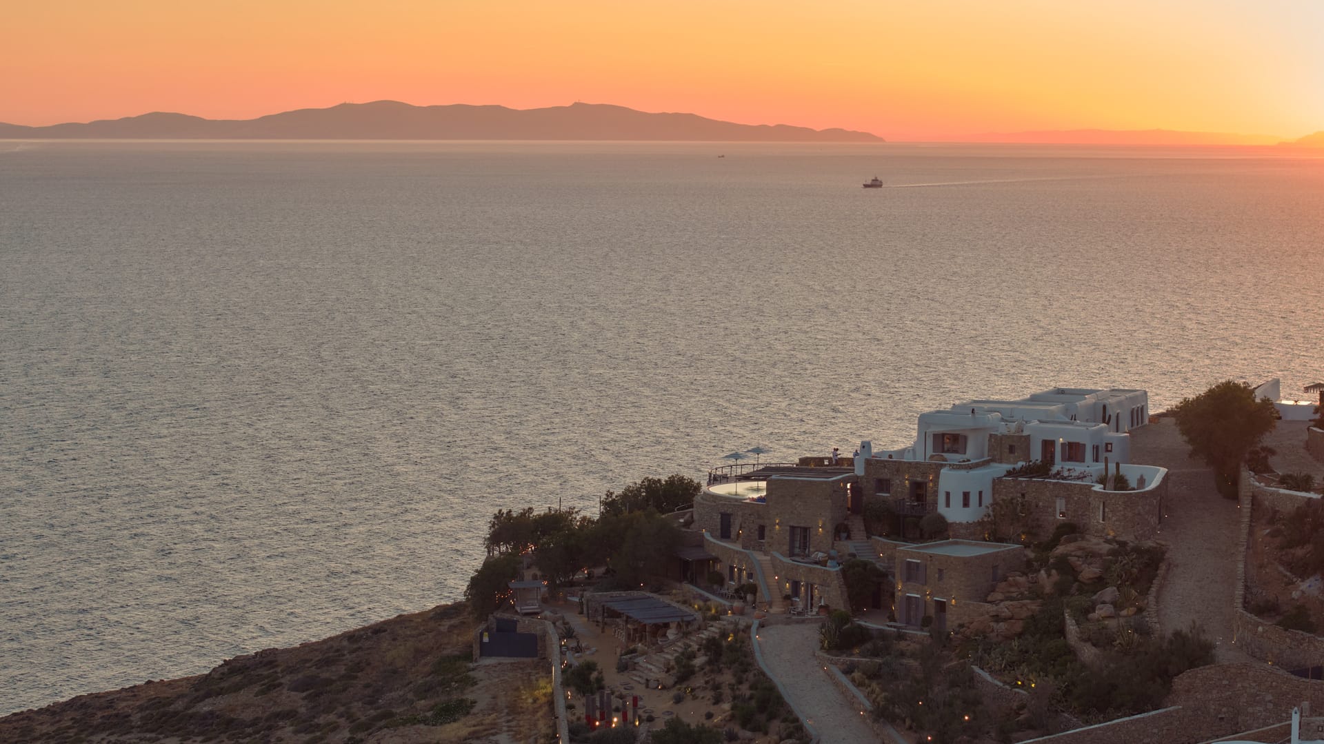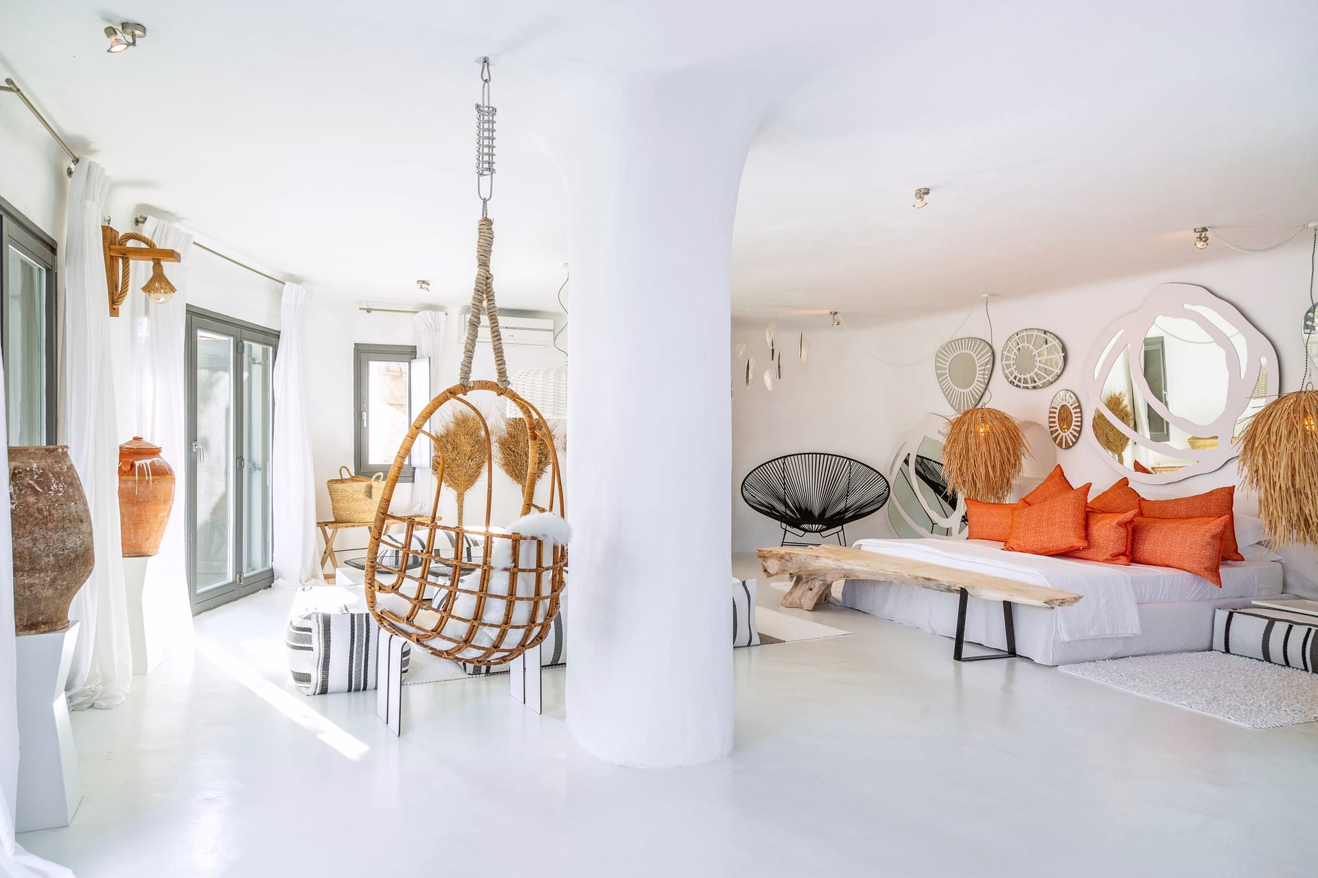 Step out from the suite onto a large private yoga terrace that offers unrivaled views of the pool and the Aegean Sea—an ideal space for yoga sessions or evening meditation, allowing you to connect with the natural beauty of Mykonos.