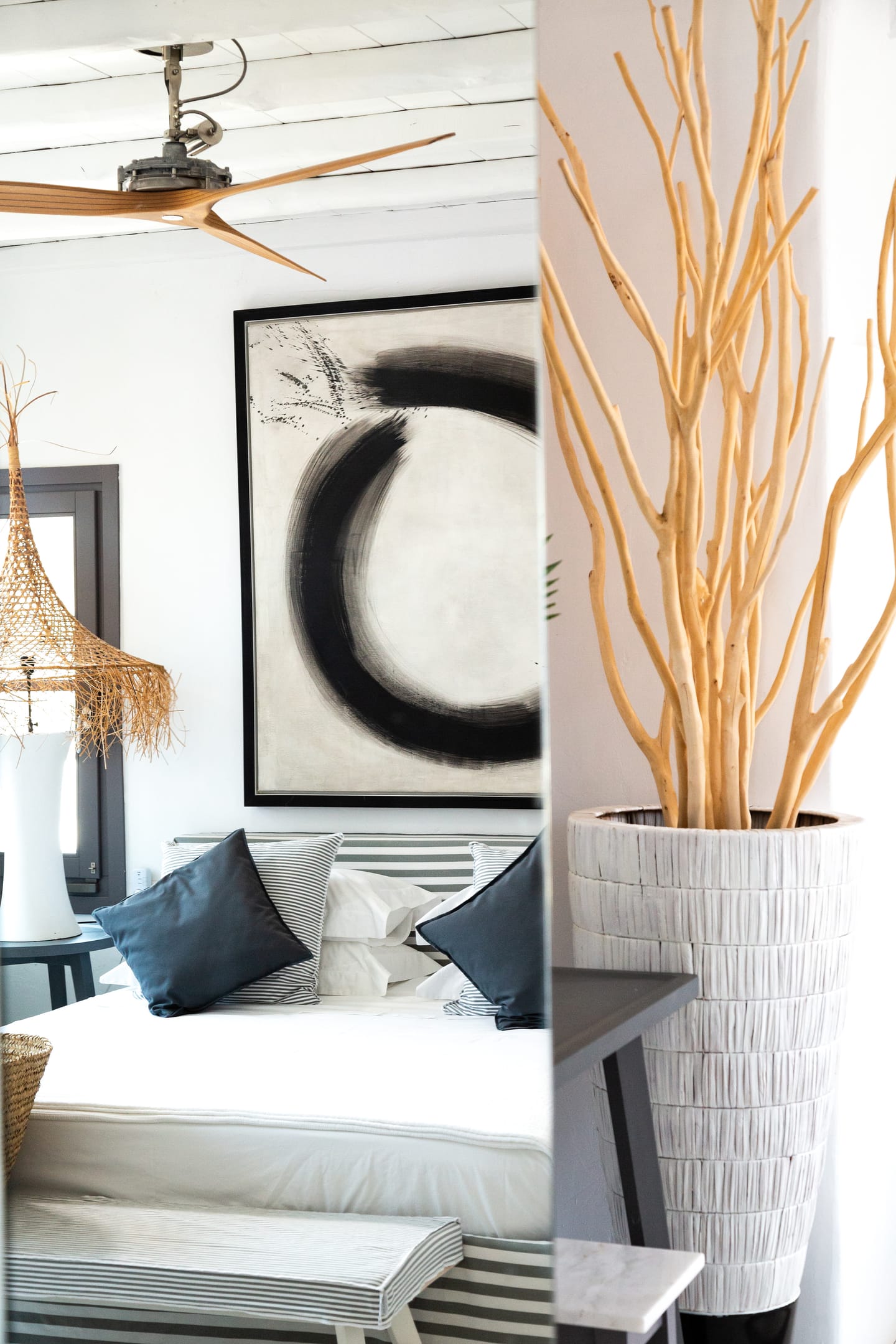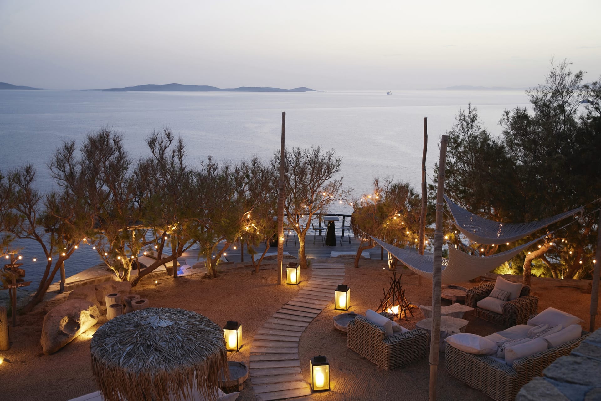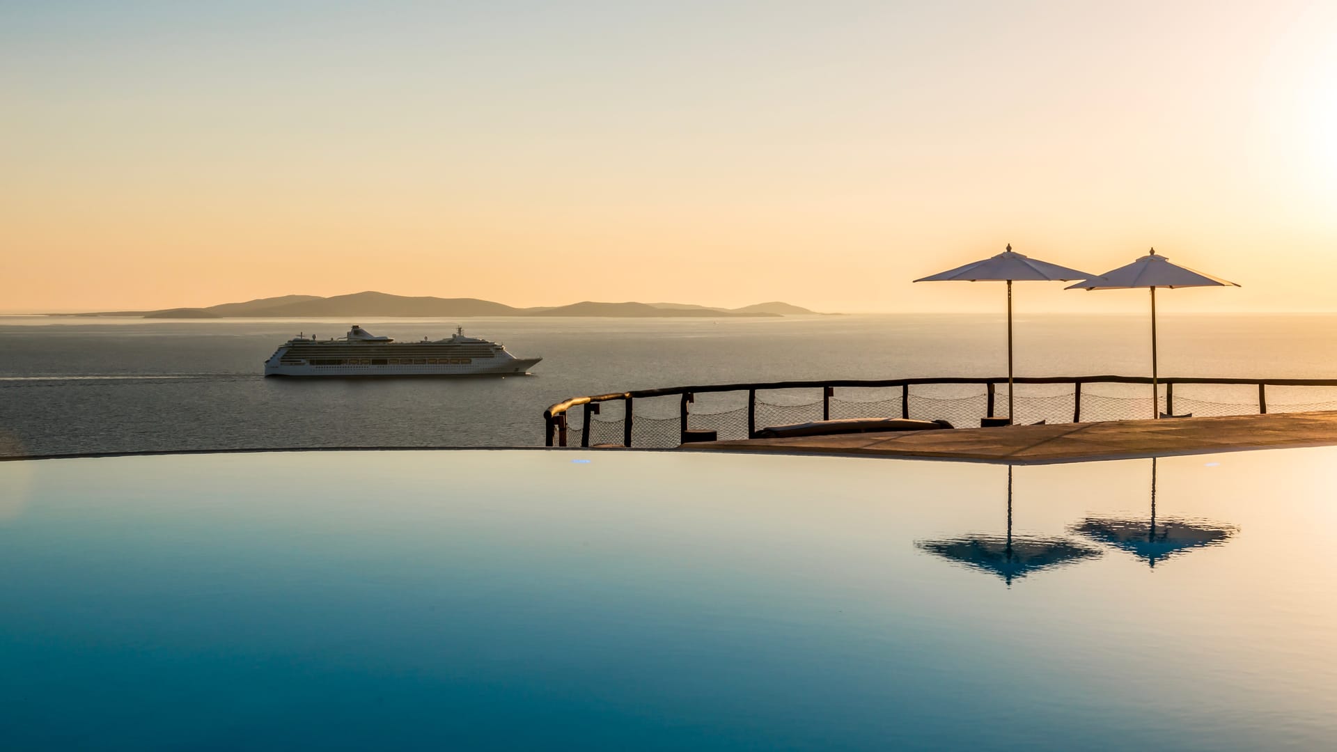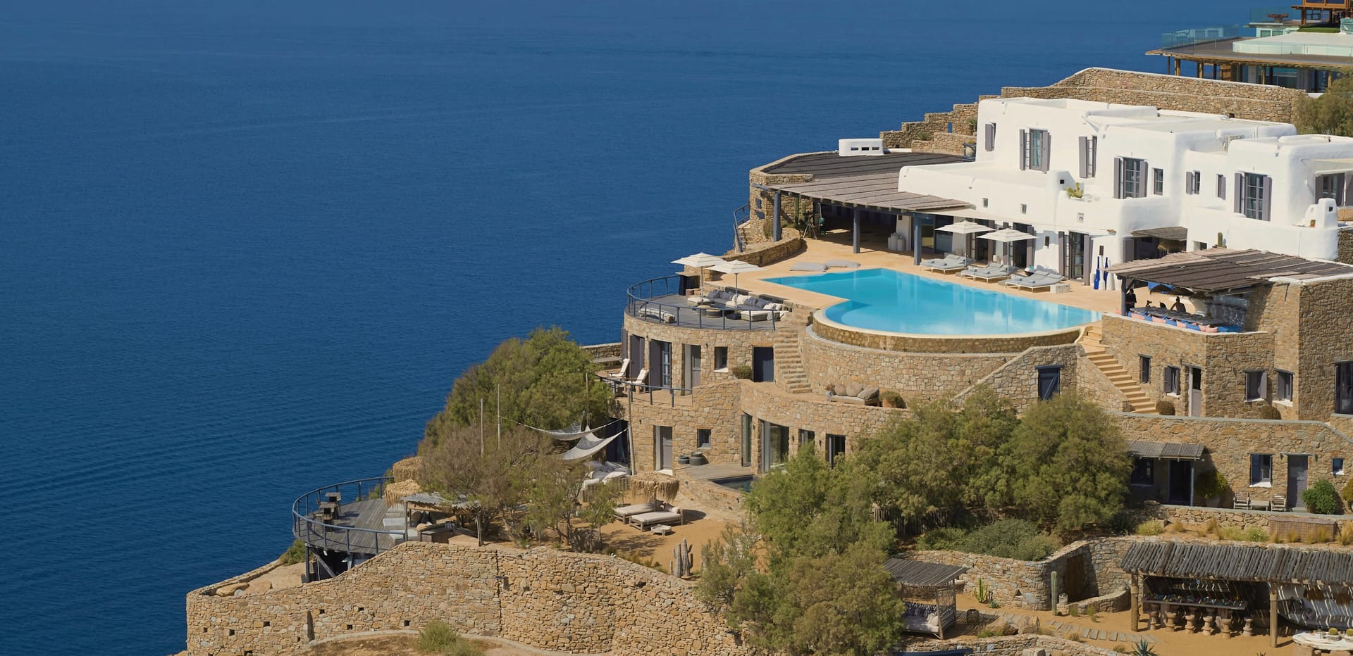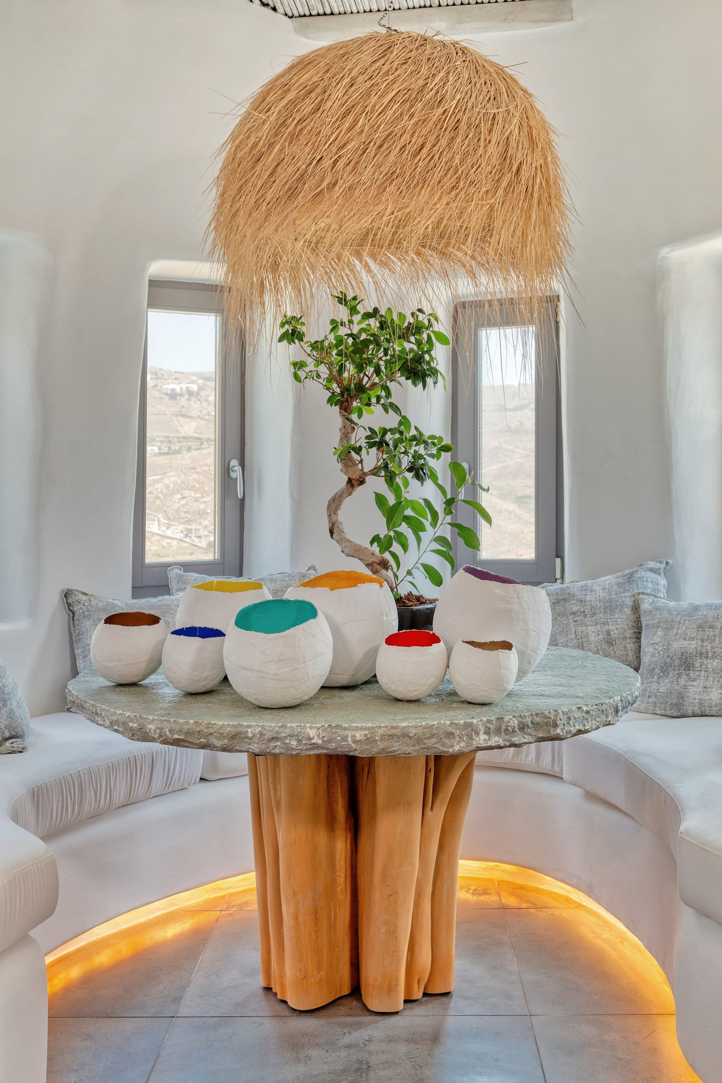 Step out from the suite onto a large private yoga terrace that offers unrivaled views of the pool and the Aegean Sea—an ideal space for yoga sessions or evening meditation, allowing you to connect with the natural beauty of Mykonos.