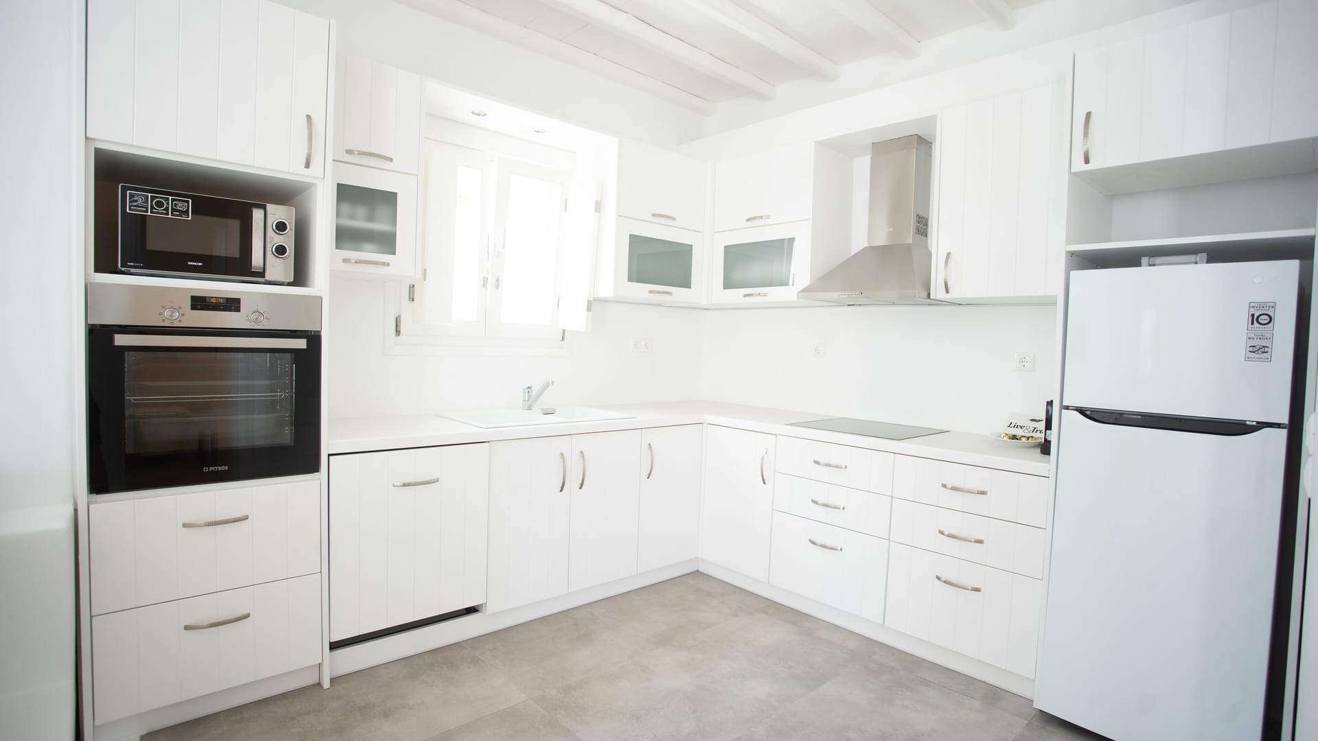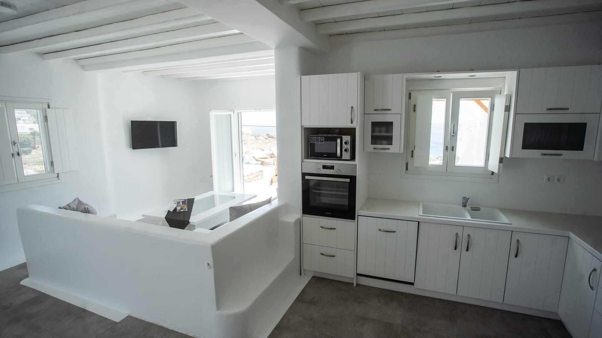 One of the villa’s standout features is its private pool, where you can enjoy refreshing swims while soaking up the warm Mediterranean sun. Lounge on plush sunbeds or unwind in the peaceful surroundings, enveloped by lush greenery and breathtaking sea views. Whether you’re enjoying a relaxed breakfast on the terrace, hosting a memorable dinner, or sipping wine at sunset, The Spirit Villa provides the perfect backdrop for unforgettable moments. The well-equipped kitchen and dining area offer modern amenities and ample space to satisfy your culinary needs.