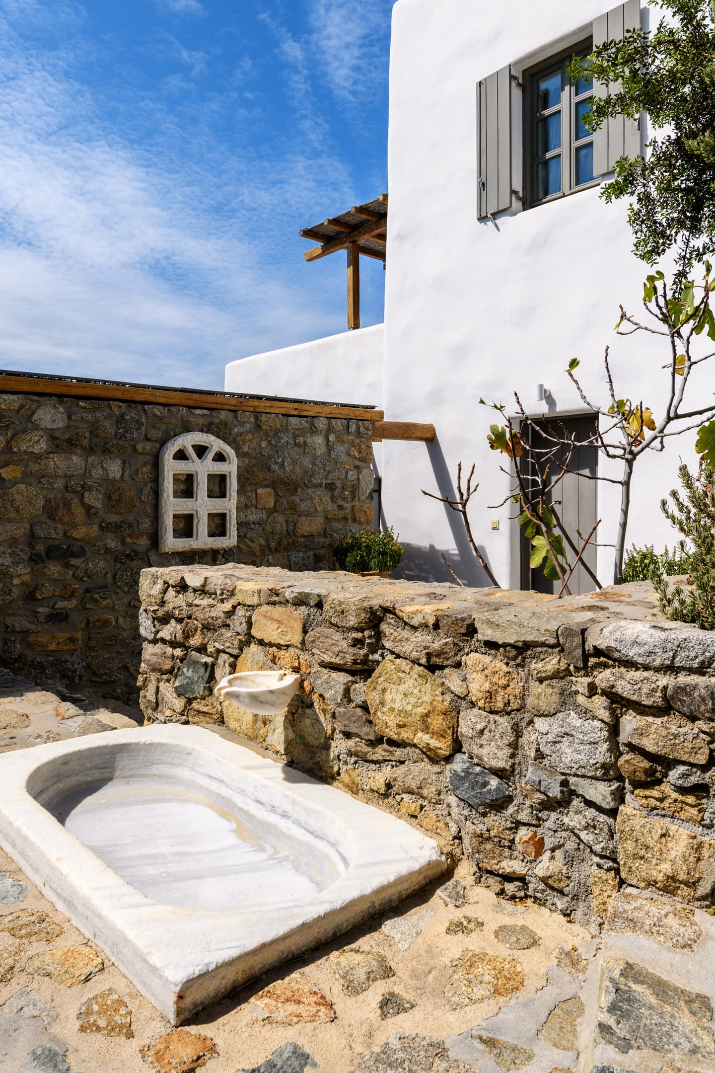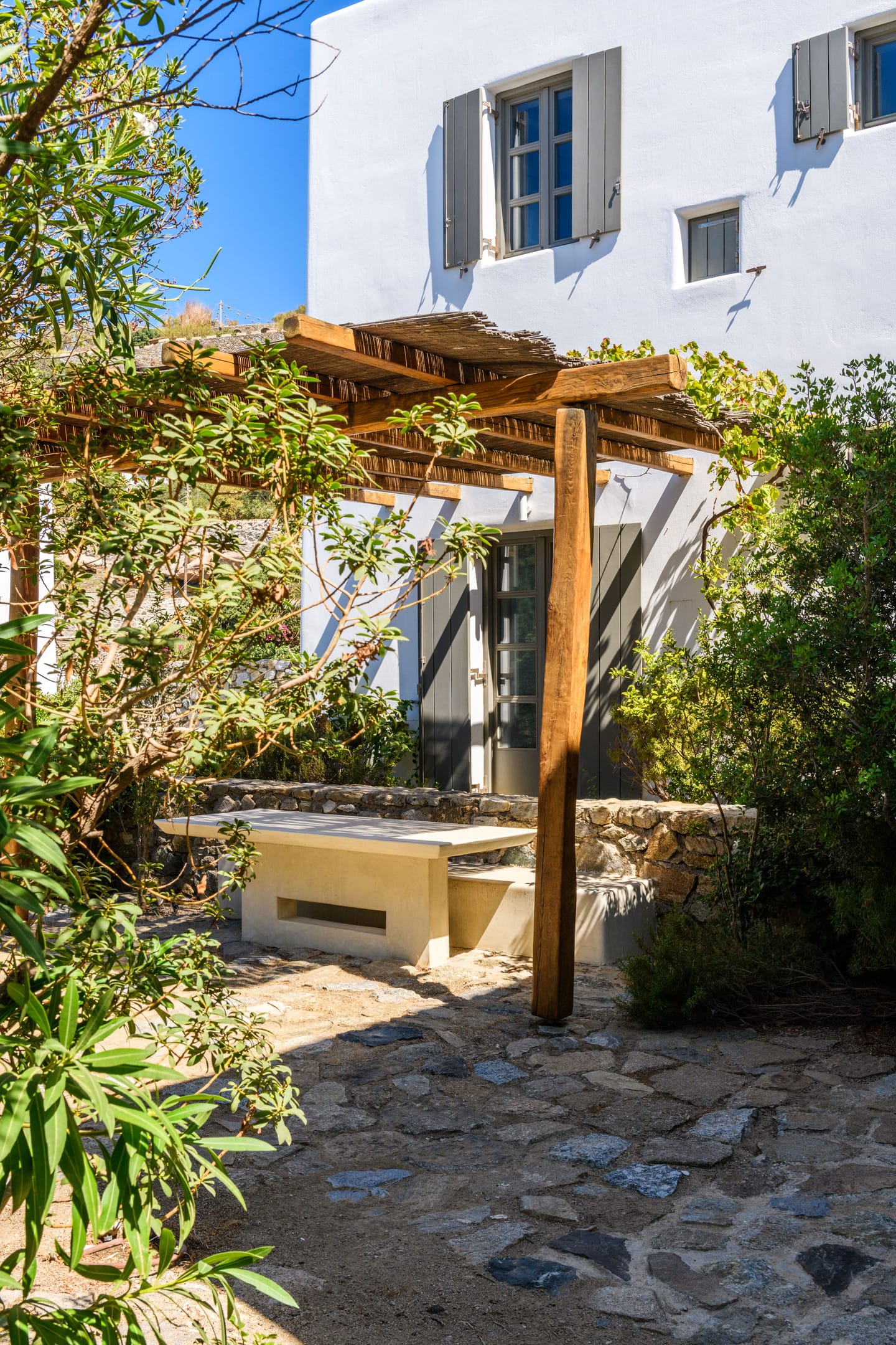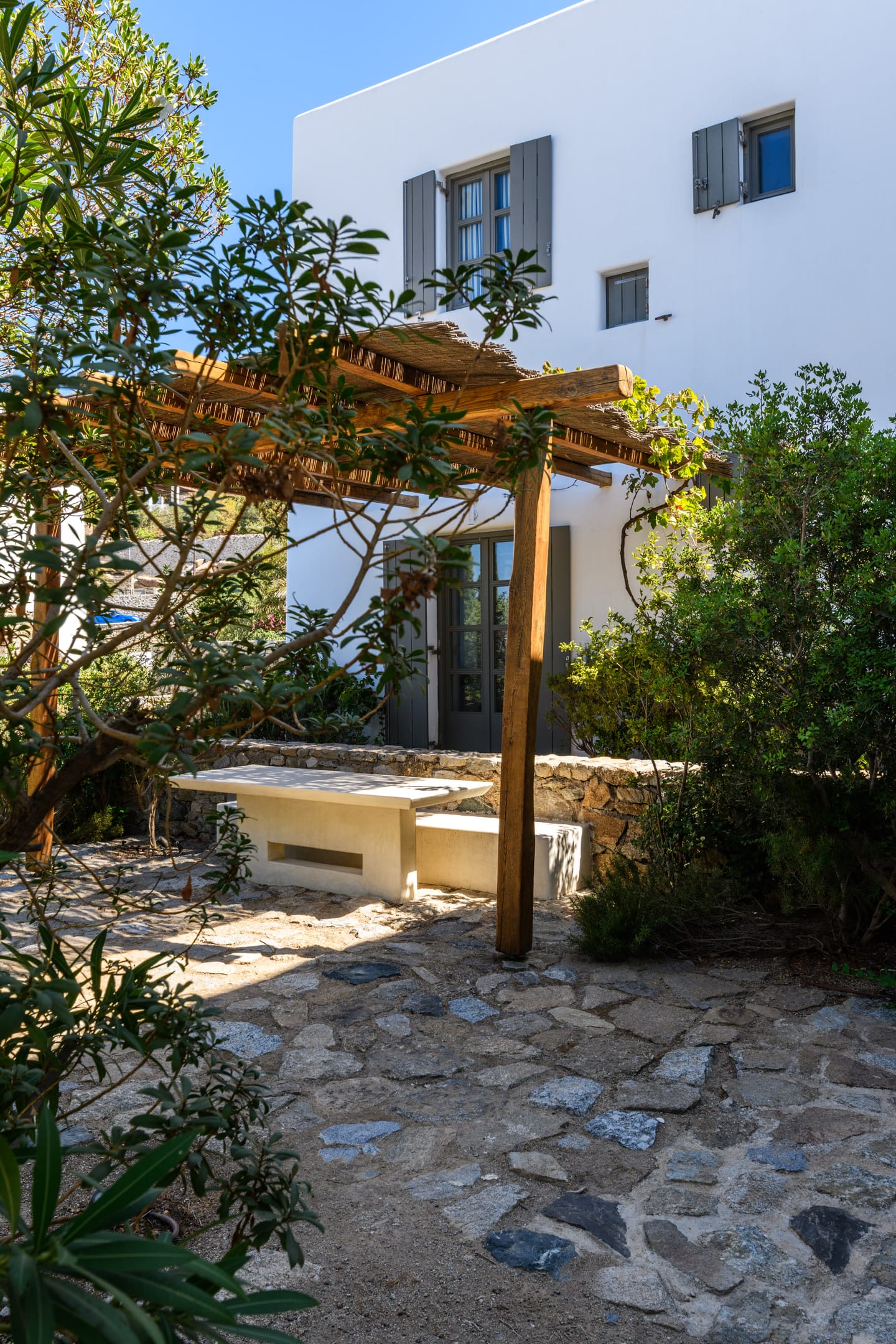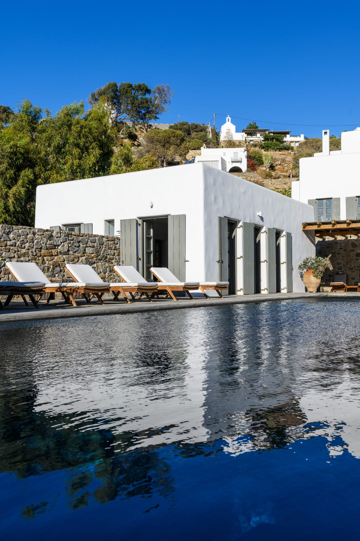 The villa provides the ultimate escape with cozy interiors and relaxed ambience, swimming pool, surrounded with carved granite rocks, Pool Bar, large pergolas, and terraces & lounges for relaxing and dining for up to 30guests. Also available are a BBQ, geothermal systems for heating and cooling,central climatization in all bedrooms, Wi-Fi, Sat TV and ample parking space. Incredible attention is devoted to every single detail, with an outdoorsy approach that does not compromise the cozy indoor living, elegant decoration with wooden furniture, chestnut ceilings, and large antiquated California floor marbles.