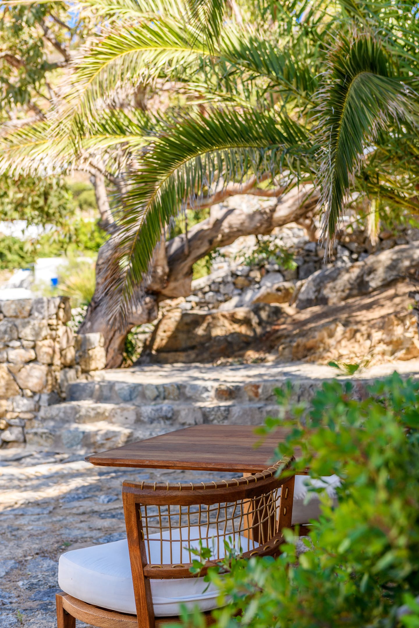 Room5: 40m2,1open patio with access to the pool area through the small path, super kingsize bed. The room has a small living area and it is equipped with a safebox, hairdryer, A/C, bathroom amenities and towels.