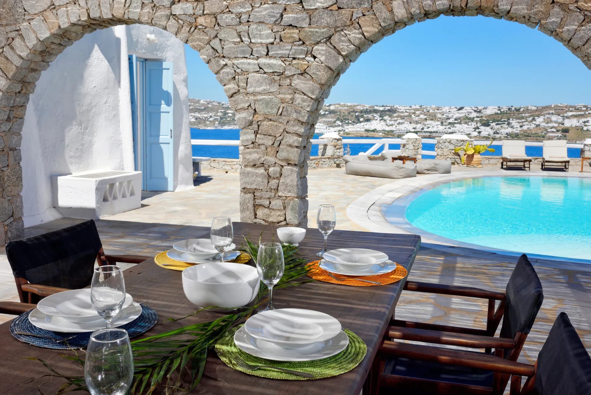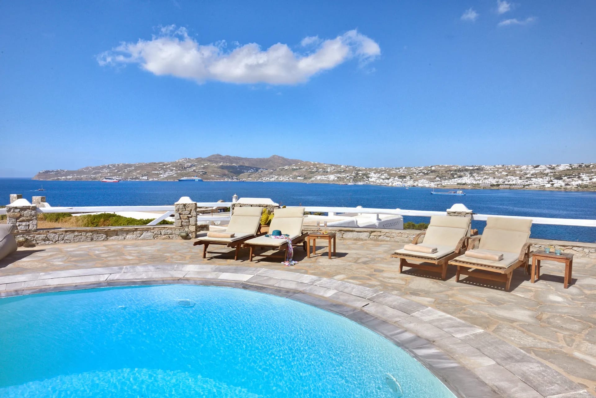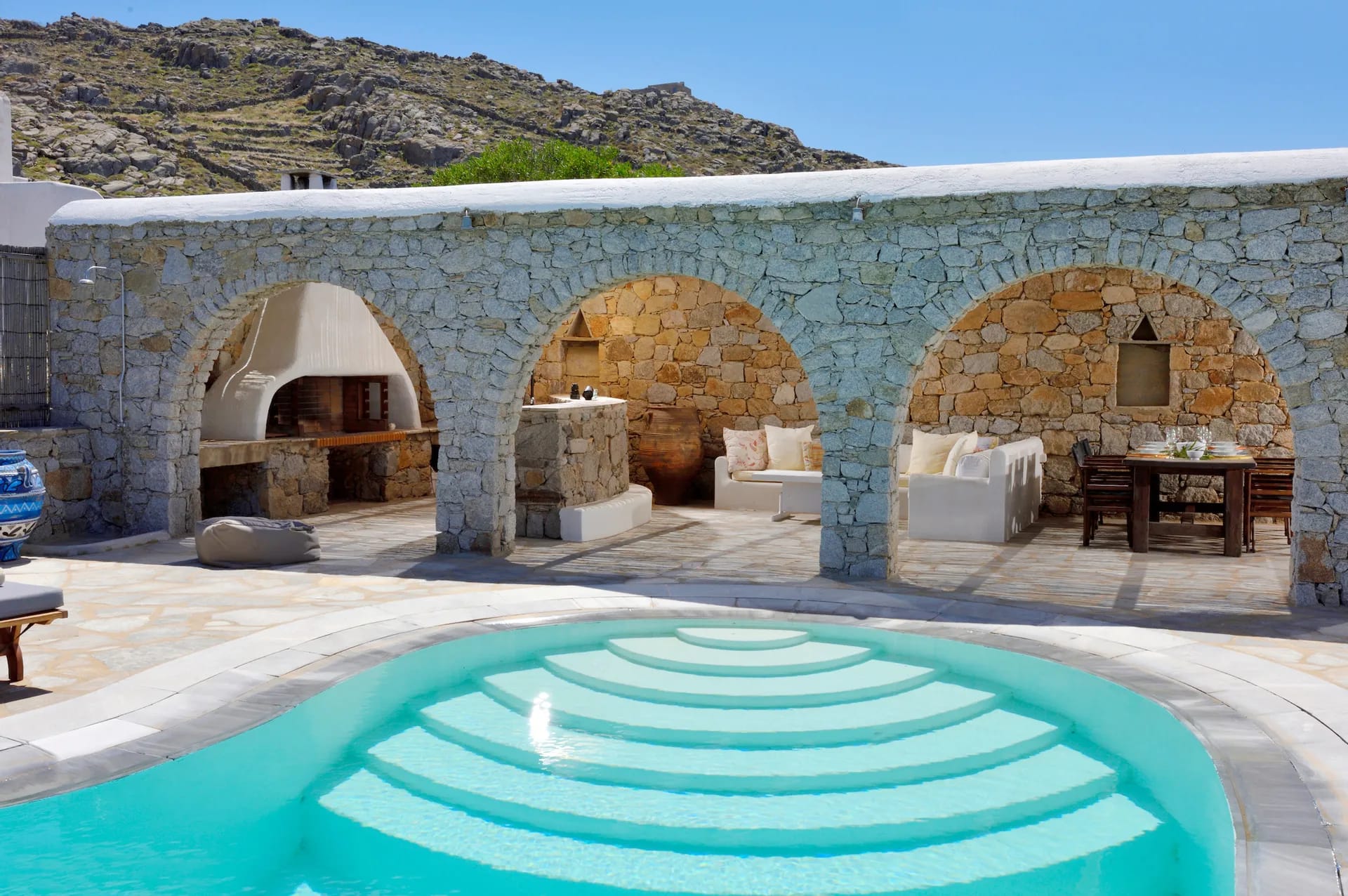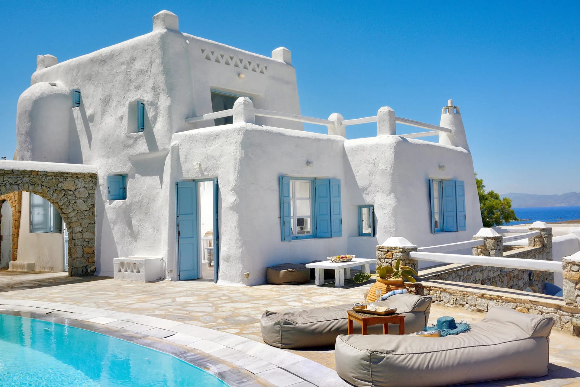 Villa Pylon I, sprawling across an expansive 700m2 plot mere 30 meters from the beach, serves as the ideal haven for your dream vacation. With an array of exceptional amenities and features that include a private swimming pool complete with plush lounge sofas, an al fresco dining area, and a separate guest house, Mykonos Villa I is the ultimate sanctuary for relaxation and rejuvenation.