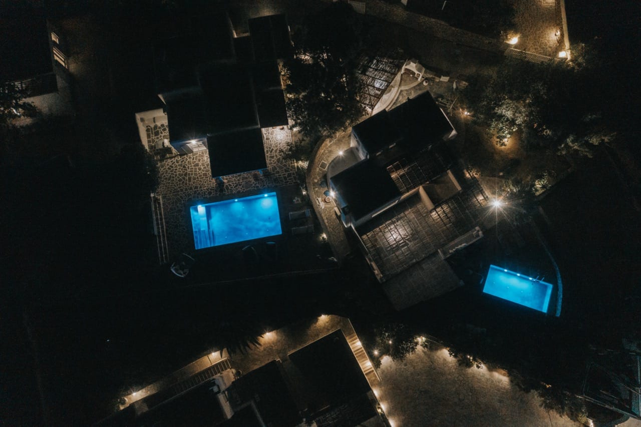 The villa consists of two buildings, the main building, and a guest house, and can comfortably accommodate 10 guests in 4 bedrooms. The main building offers three stunning bedrooms, a living room, a dining area, and a separate fully equipped kitchen. The guest house is located just 15 meters from the main building and features a spacious Queen size bed, an open plan fully equipped kitchen, and a separate bathroom.