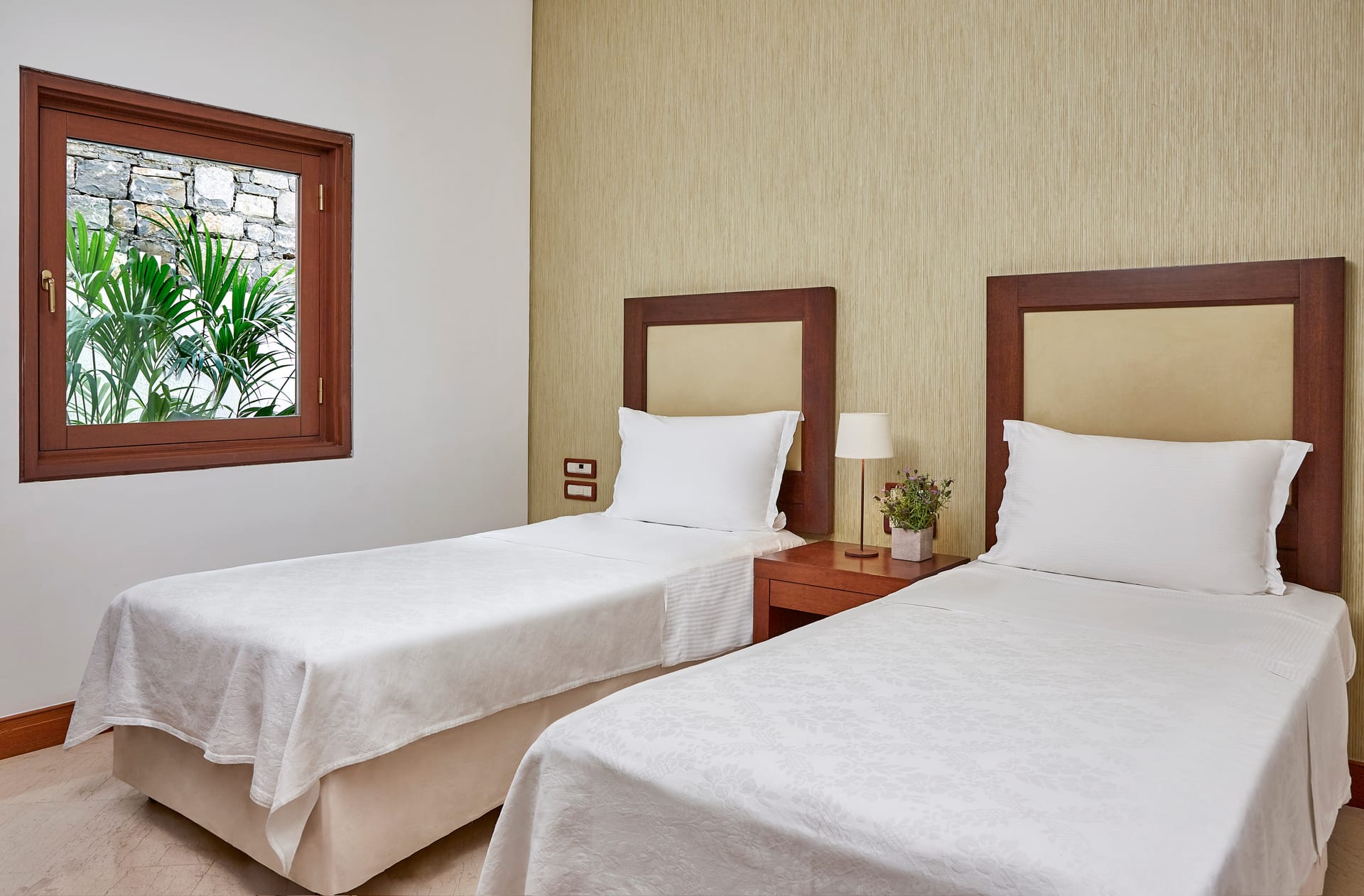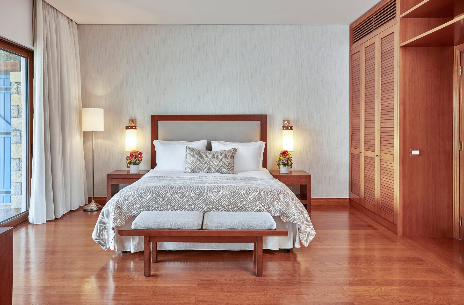 The Estate features two independent villas and one guest house, providing ample space and privacy for 22 guests. The first villa consists of two buildings, the main building, and a guest house, and can comfortably accommodate 10 guests in 4 bedrooms. The main building offers three stunning bedrooms, a living room, a dining area, and a separate fully equipped kitchen. The guest house is located just 15 meters from the main building and features a spacious Queen size bed, an open plan fully equipped kitchen, and a separate bathroom. The second villa consists of the ground floor, which includes an open-plan living area with a dining area, a fully equipped kitchen, a cozy fireplace, and two bedrooms with queen-size beds. The first floor has a living and dining area with a fully equipped kitchen, one bedroom with a queen-size bed, and an outside mezzanine with another queen-size bed. The lower level provides an open-plan, fully equipped kitchen, a dining room with two single beds, and one separate bedroom with a queen-size bed. Lastly, the guest house is located next to the second villa and consists of an open-plan living area, a fully equipped kitchen, and one double bedroom with an ensuite bathroom.