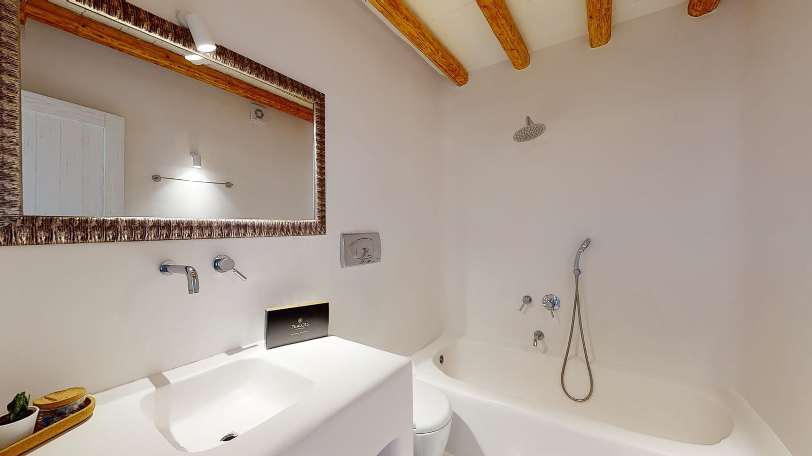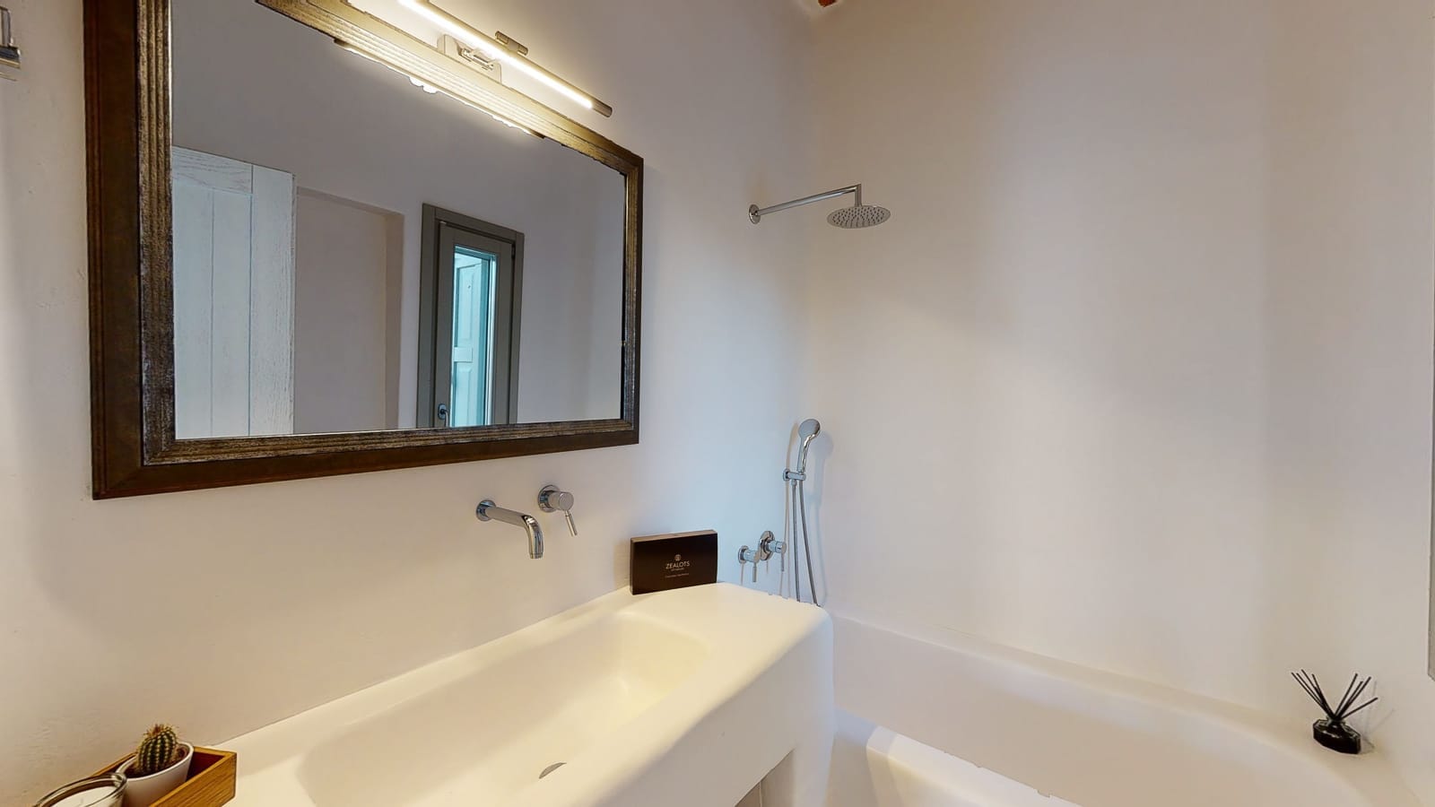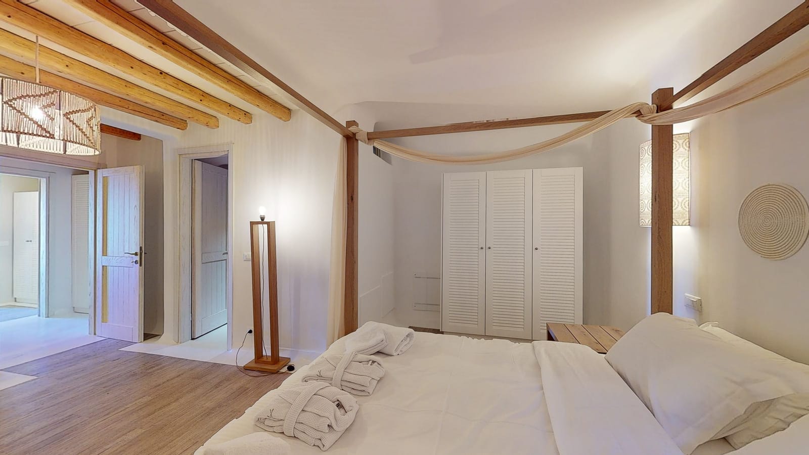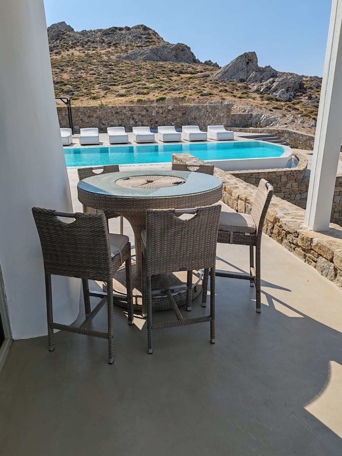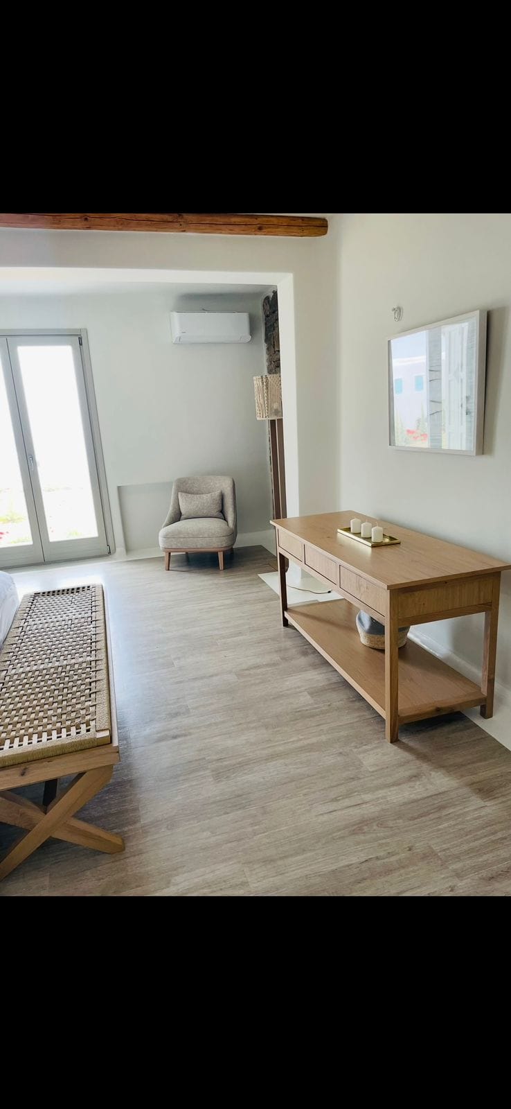 The property combines minimal Cycladic architecture with contemporary luxury, whitewashed lines, natural stone elements, and high-end furnishings, creating an elegant and serene atmosphere throughout.