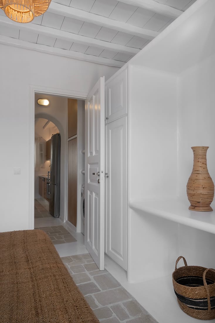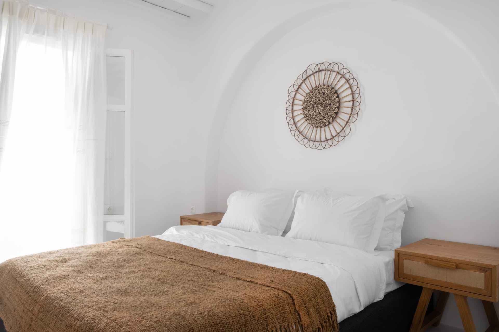 Traditional Mykonian fully renovated house in a peaceful, luxurious complex, ideal for couples and families. Located in Ornos,3 minutes walk from Korfos Beach ( best kitesurfer's beach in the island) and 5 minutes walk from Ornos Beach.