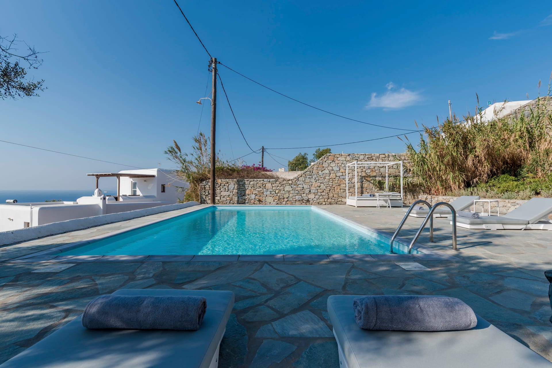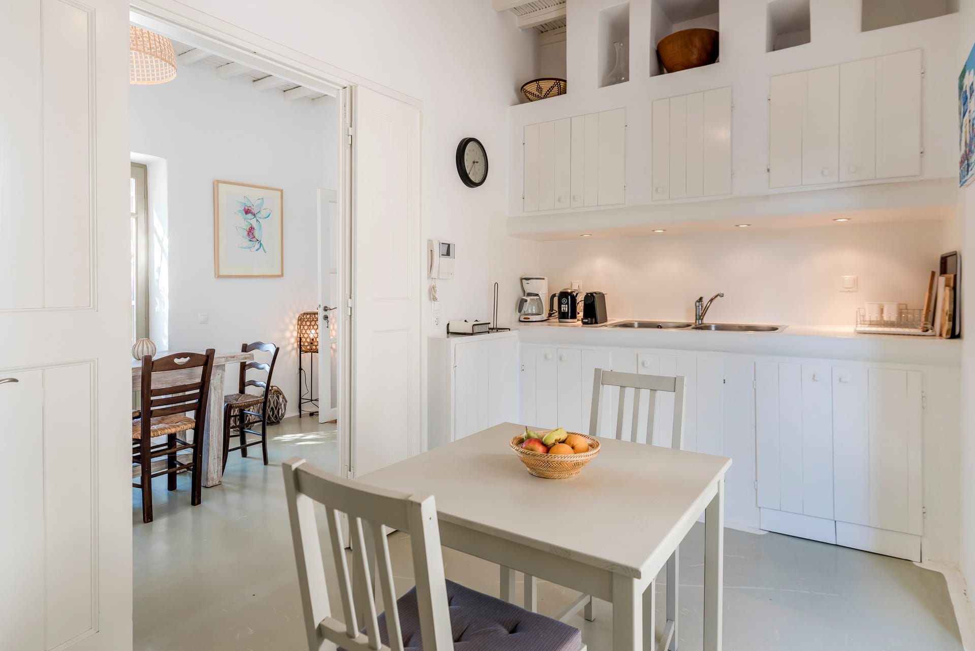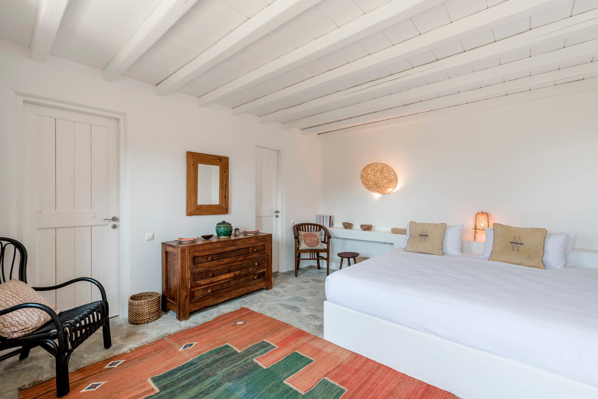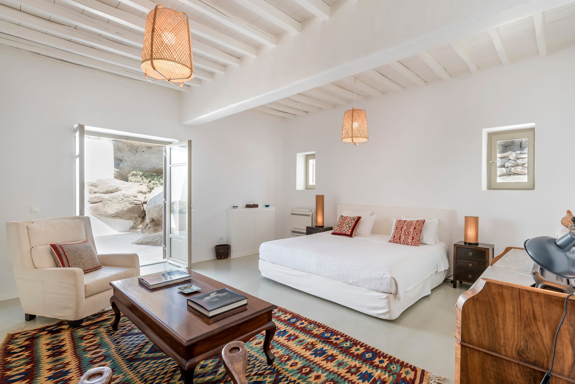 All areas have direct access to the outdoor areas with beautiful and well-maintained garden, and a breathtaking view of the Mykonos Town from above, ideal for romantic breakfasts or late night drinks with view..