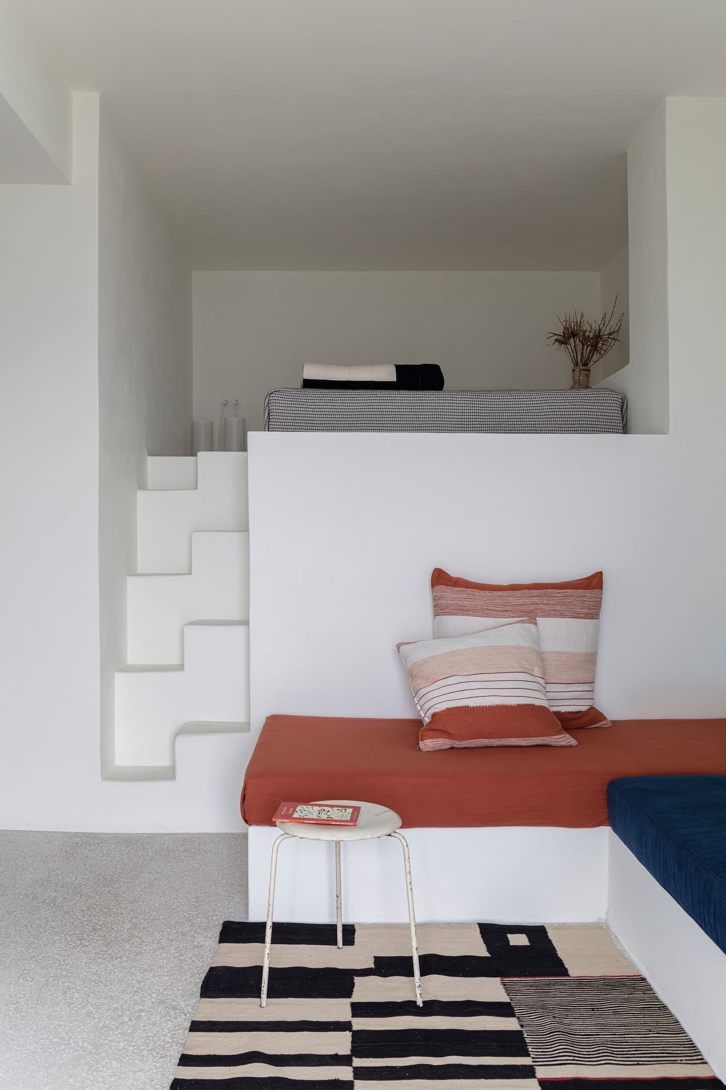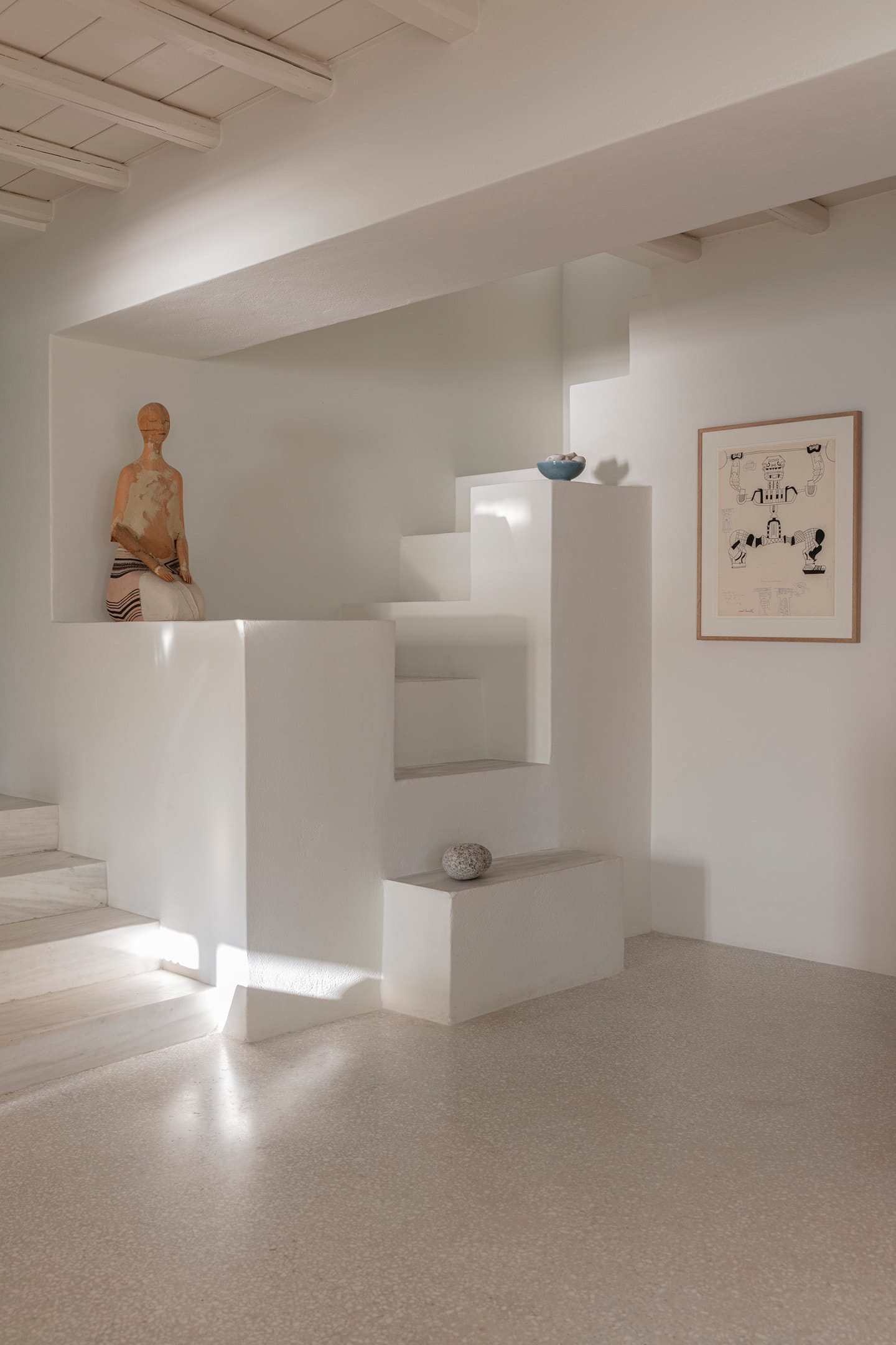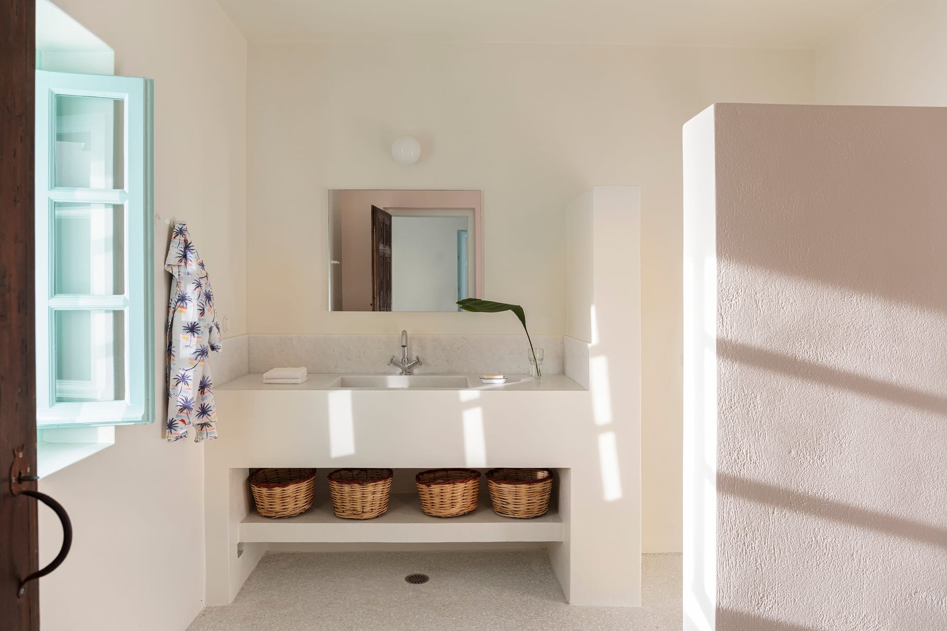 The villa’s cool interiors feature pristine terrazzo floors throughout, rustic wood-carved doors, traditional ceramic tiles and superior local marble for the bathrooms and kitchen. Outside, a variety of terraces, balconies and niches distributed around the property allow for increased privacy even among a large group of guests.