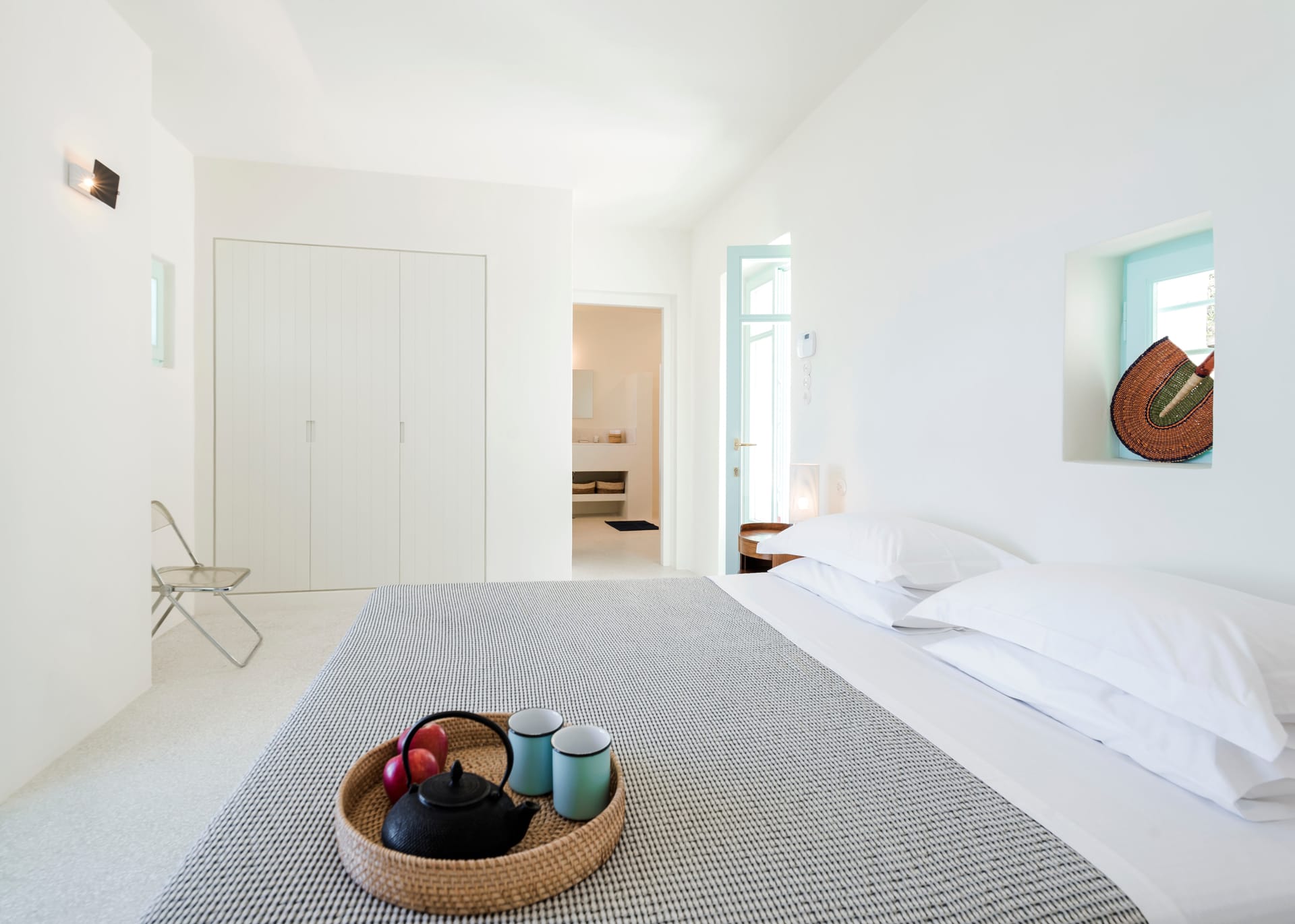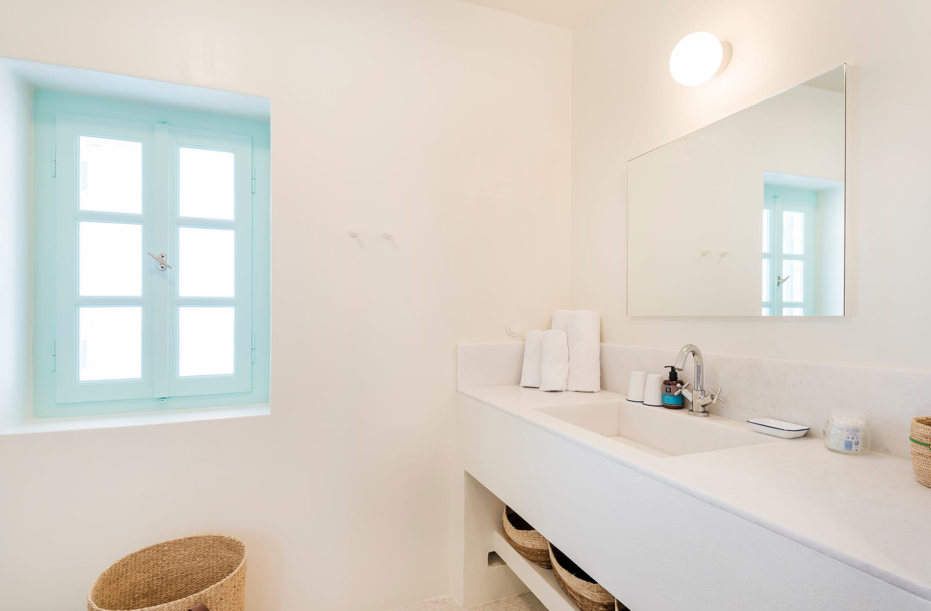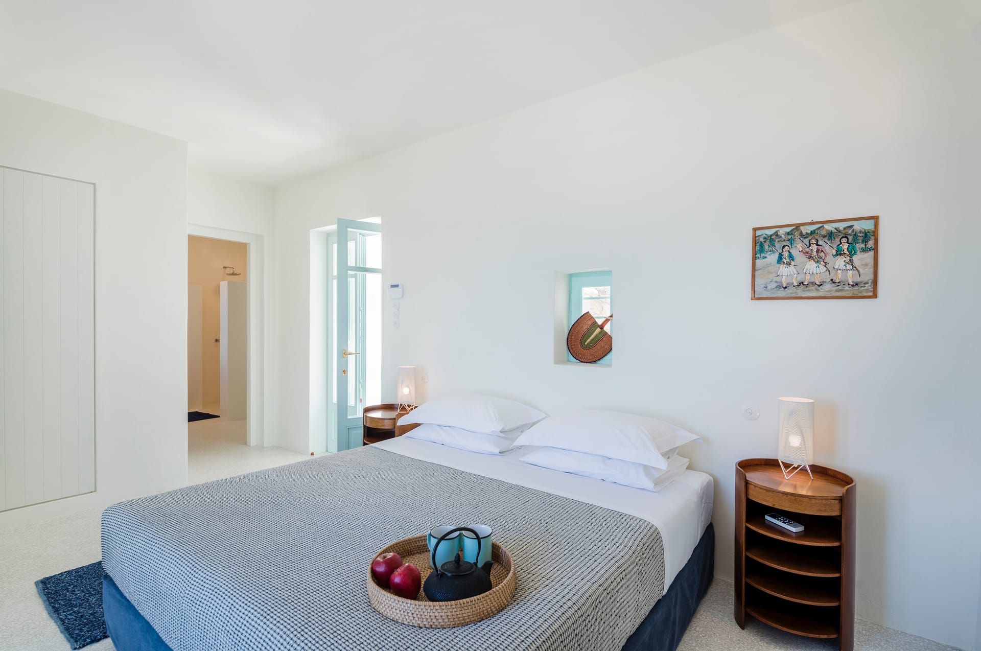 - 2 Guest bedrooms with double beds, en-suite bathrooms, A/C, safe box, Sonos speakers, "Apivita" bath amenities, sea view.