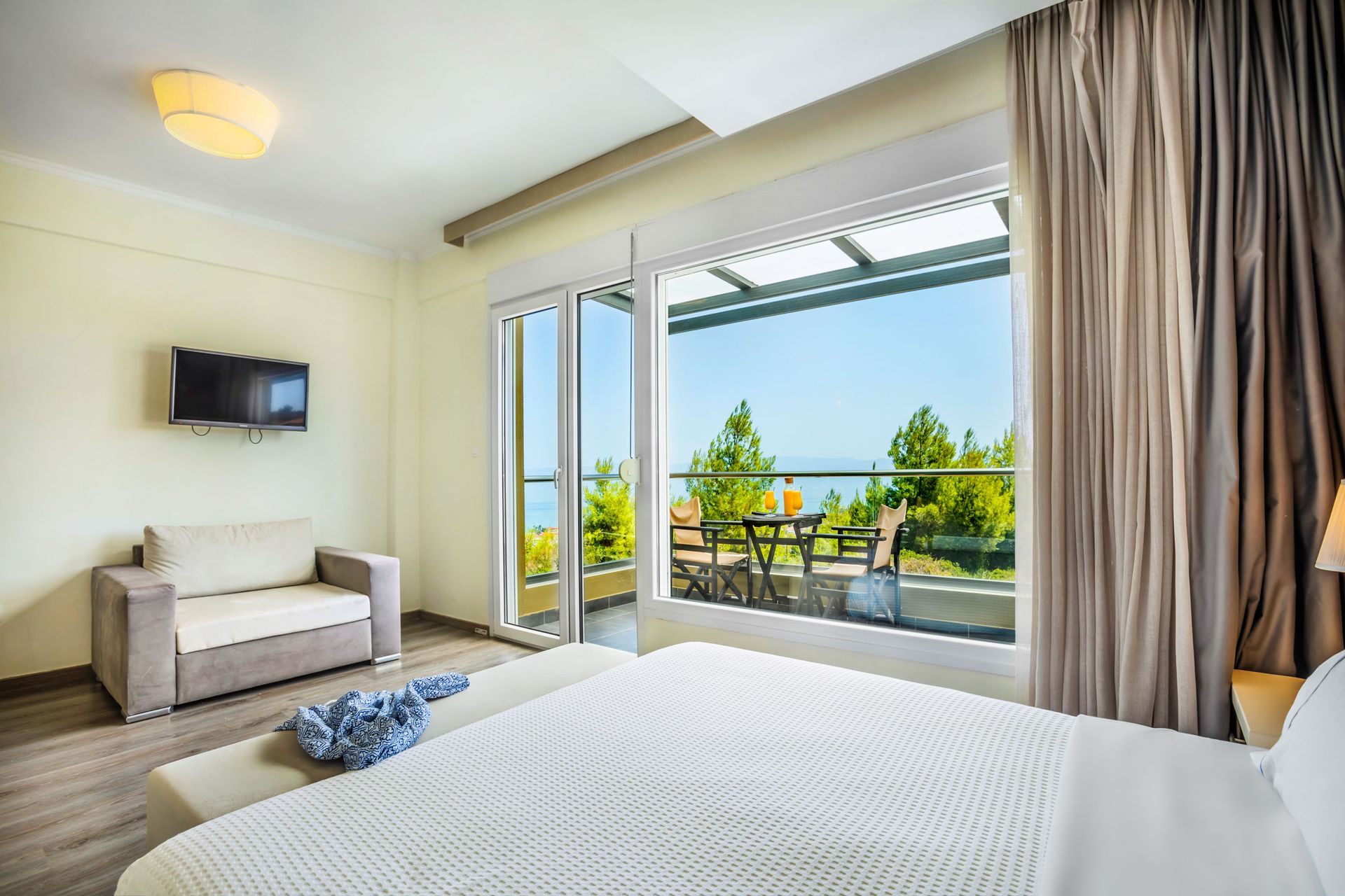 - 2 En-suite bedrooms with double beds & 2 single sofa beds, A/C, safe box, Sonos speakers, "Apivita" bath amenities, sea view.