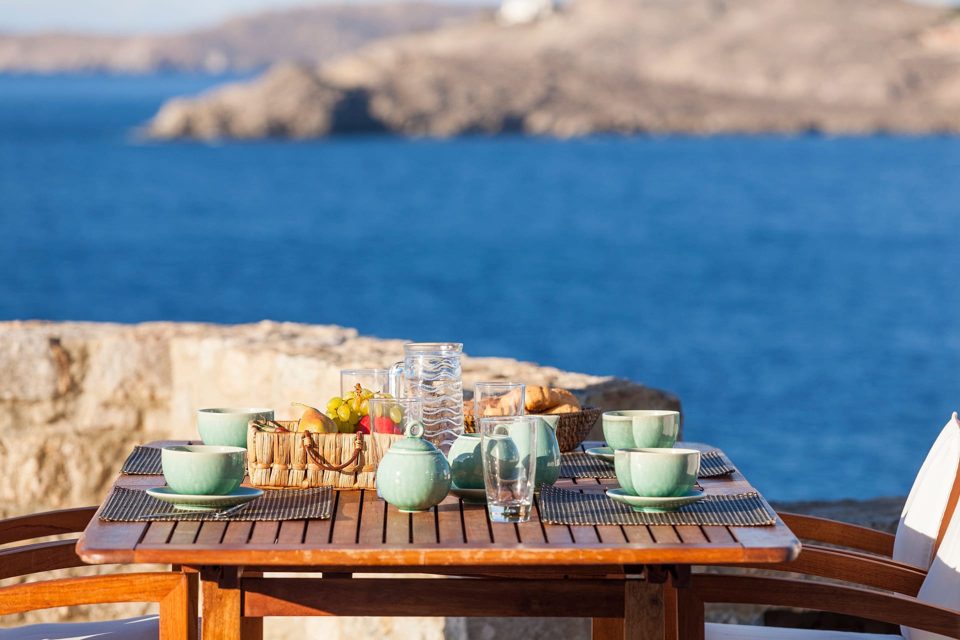 - Outdoor BBQ and dining space overlooking the Aegean.