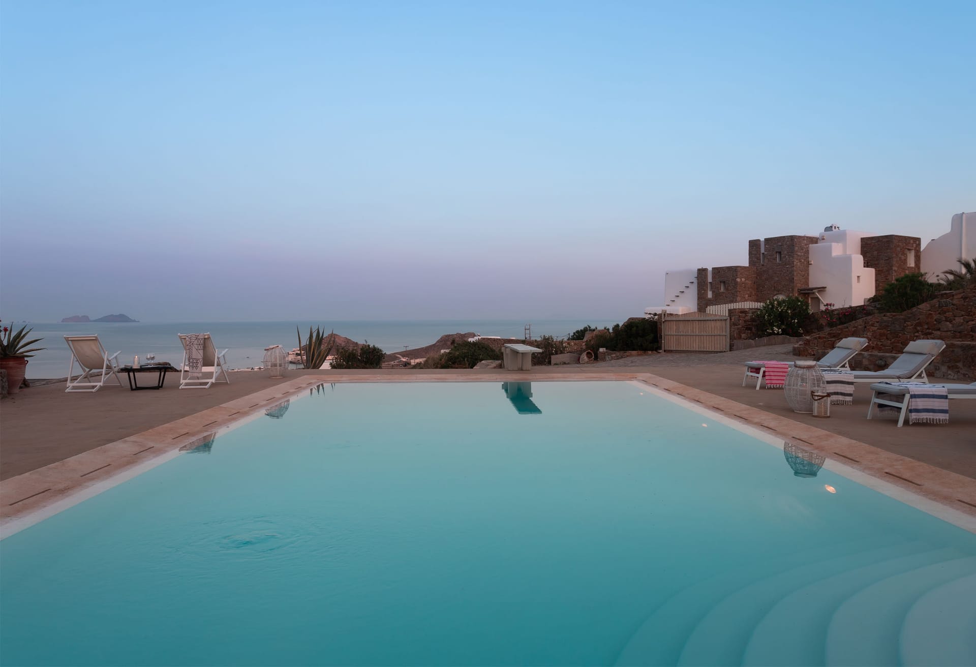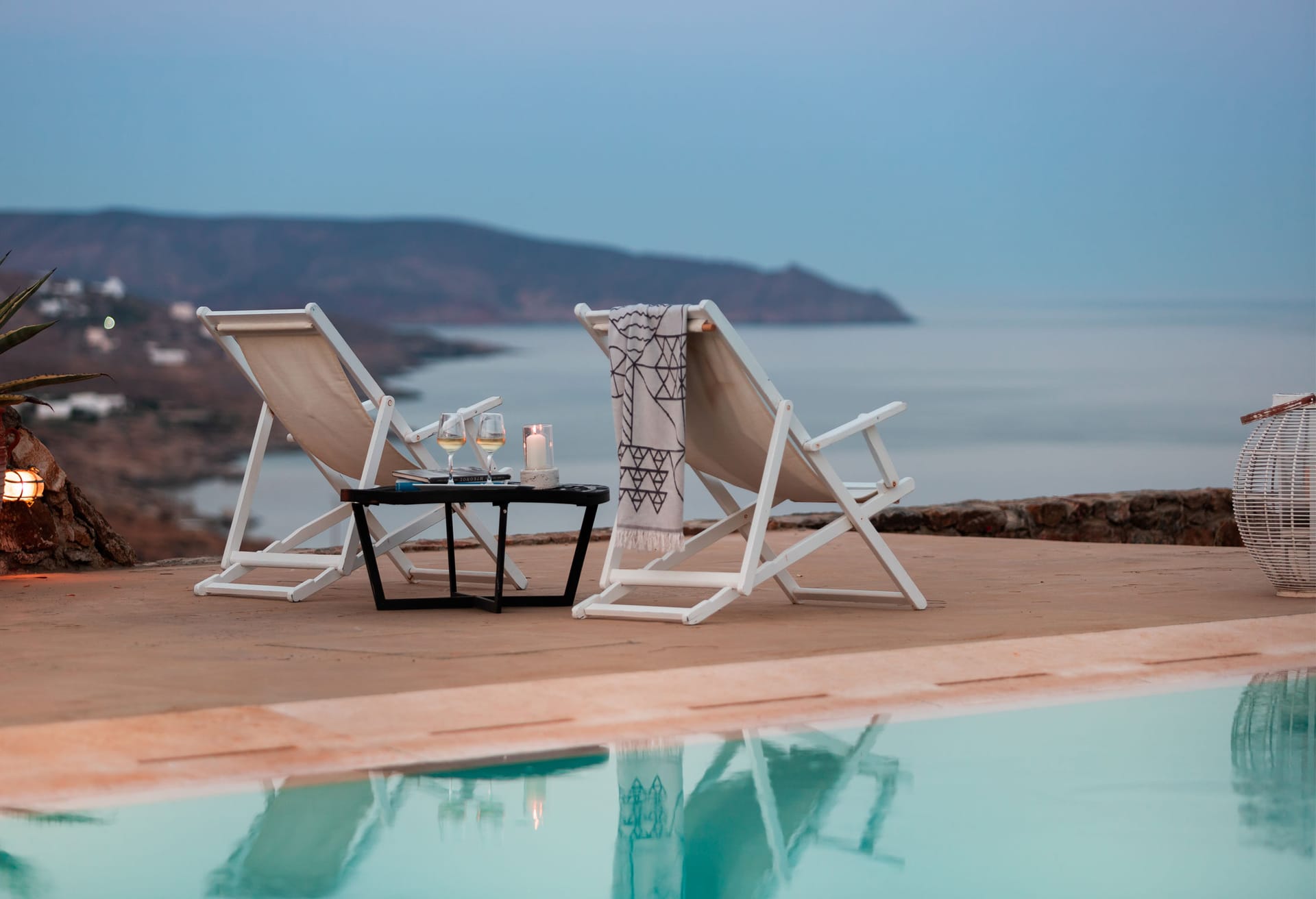 The Premier Pool Front Villa is one of three independent, modern ground-floor villas in the Cycladic style. Each villa features a private, shaded terrace with a pergola, providing stunning views of the sea, pool, and lush gardens. Designed with minimalist decor in earthy tones and furnished in traditional Cycladic white, these villas are fully equipped to ensure a comfortable, relaxing stay. They offer a peaceful, carefree vacation experience ideal for families and couples. Each villa has a private entrance and includes parking space for two cars.
