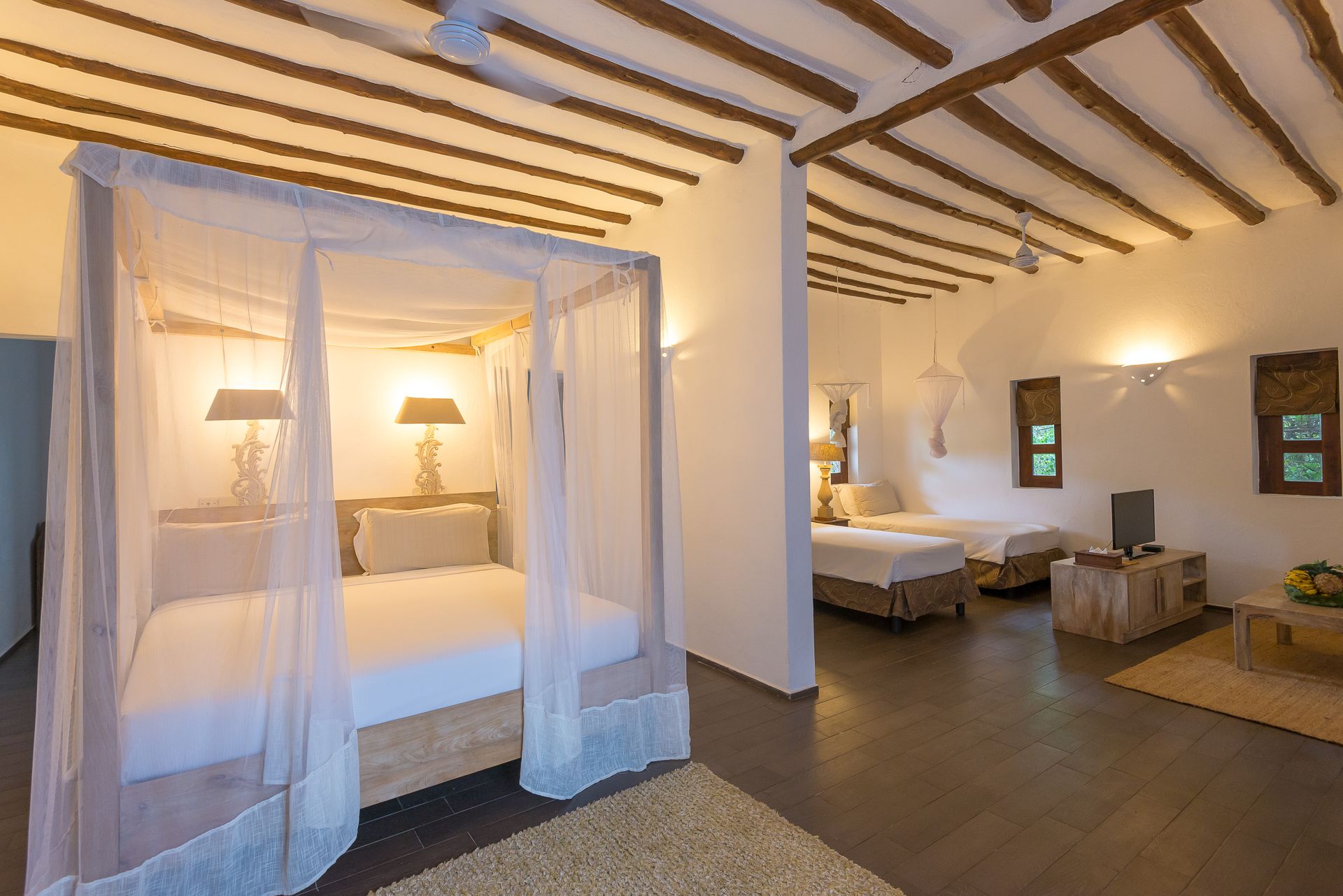 The three Premier Pool Front Villas, each spanning 90 m², feature two stylish double bedrooms and are ideal for accommodating up to four guests. The open-plan design includes a generous dining and living area with an integrated kitchen, creating a seamless flow throughout the space. At the far end, two beautifully appointed bedrooms, each with its own private bathroom, offer a perfect retreat.