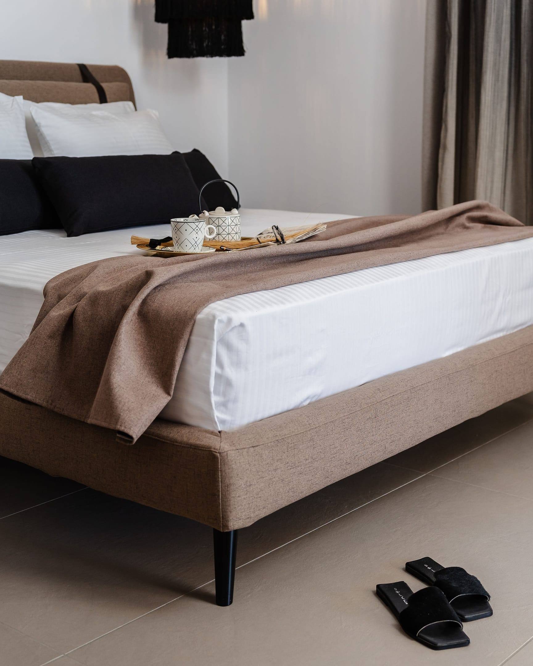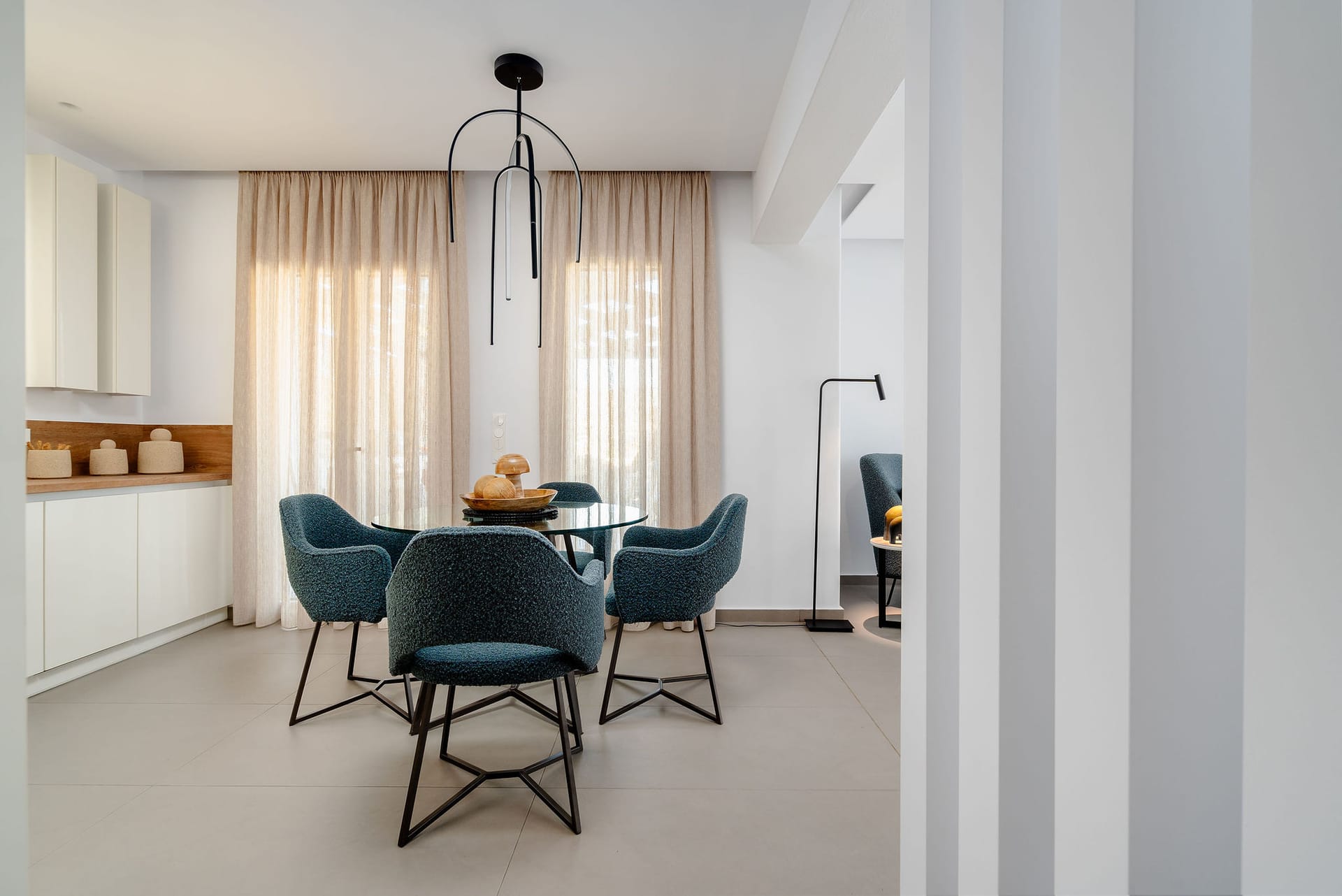 Enjoy the spacious living areas with large windows that frame breathtaking mountain views, creating a seamless connection with nature. The fully equipped kitchen, complete with modern appliances, caters to all your culinary needs. Sunlight filters through, casting warm, earthy tones across the walls, while sleek, modern furniture adds a touch of timeless elegance. Subtle gold accents shimmer throughout the space, enhancing the overall ambiance. The cool marble bathrooms, marked by the passage of time, welcome you with their smooth, polished surfaces, offering a refreshing coolness underfoot. As light dances across the natural marble, it creates a beautiful symphony of reflections. This villa is your personal haven, a peaceful retreat designed for relaxation and rejuvenation amidst the timeless beauty of Naxos.
