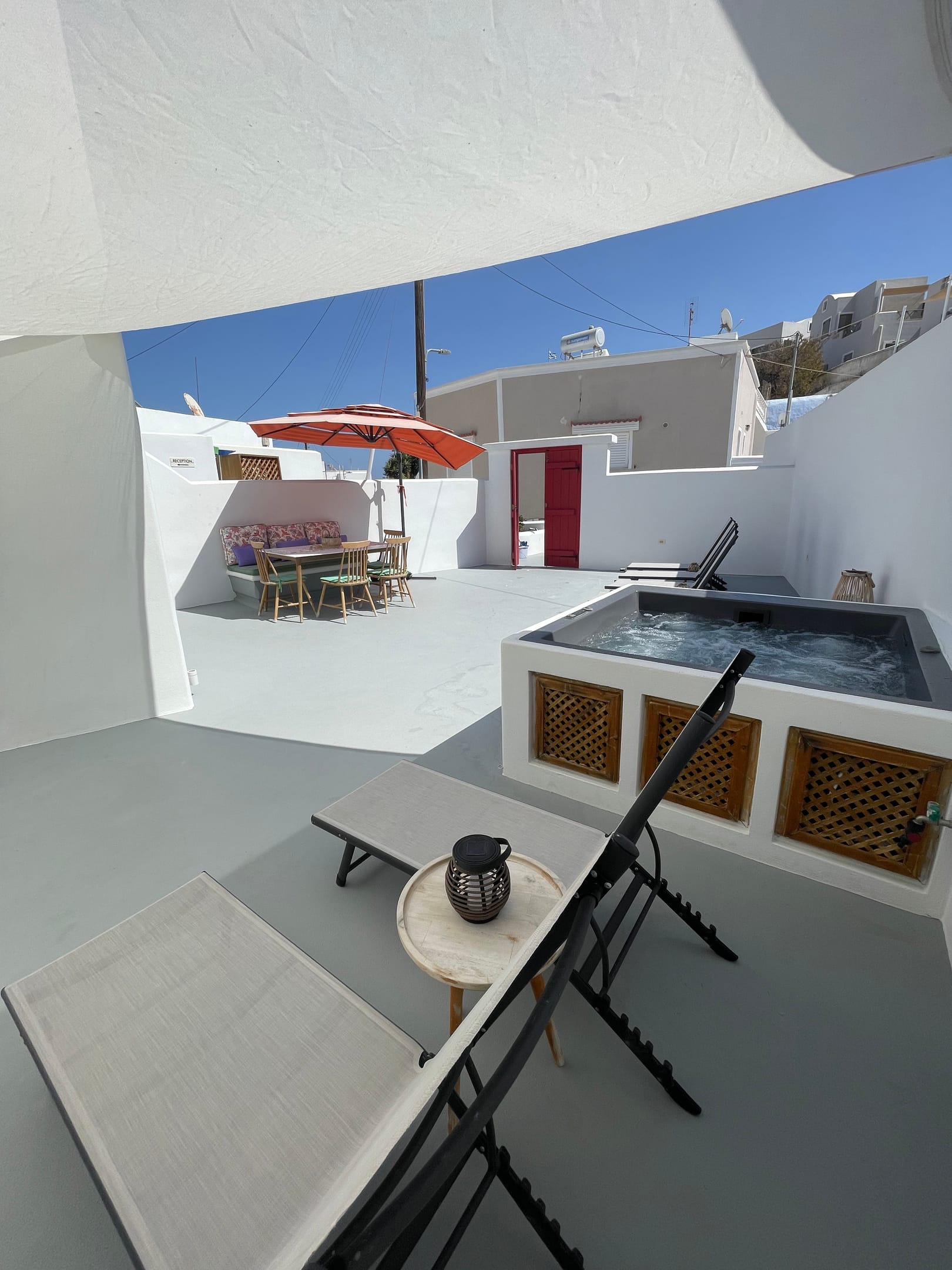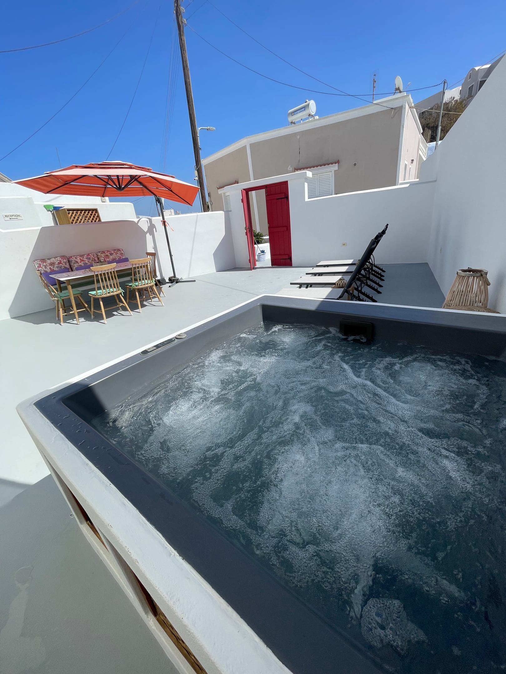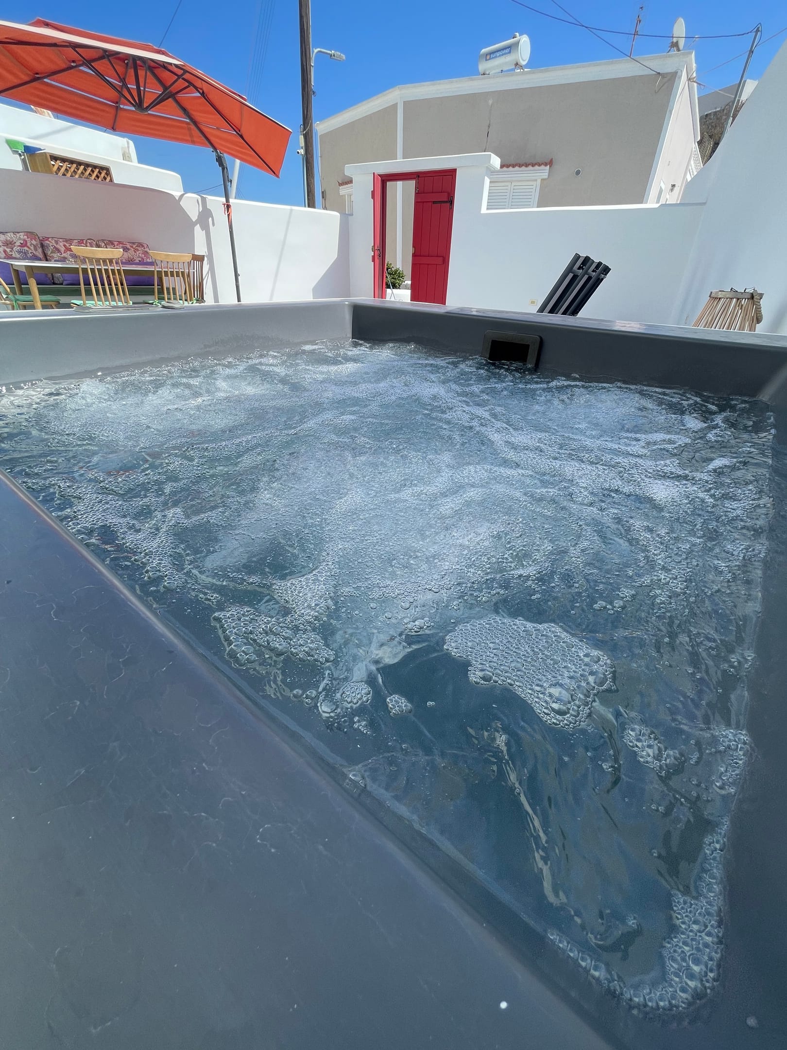 The outdoor Jacuzzi, on the private veranda of Thallos Cave House and Apartments, will help you get rid of all the stress of everyday life, giving you moments of enjoyment!