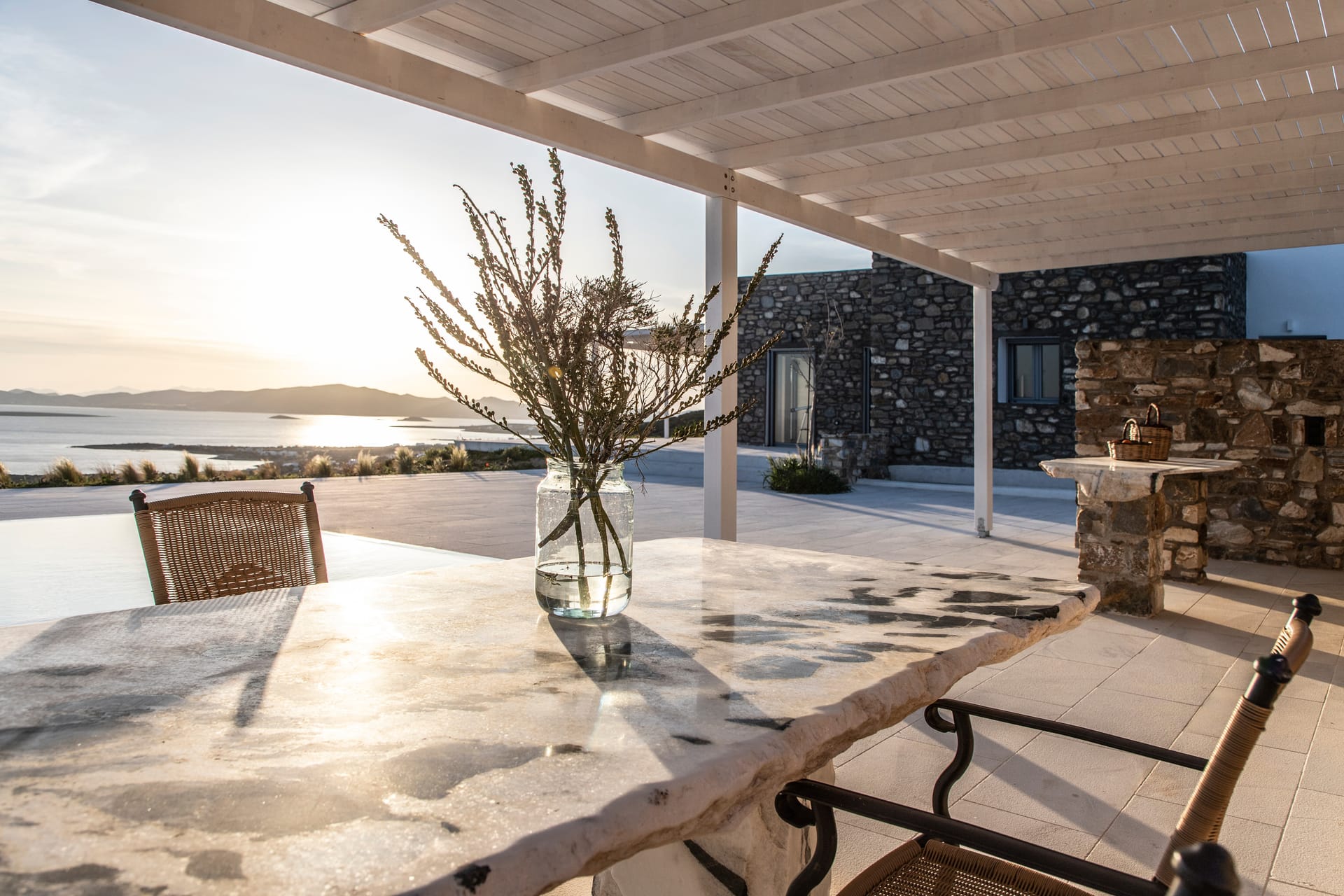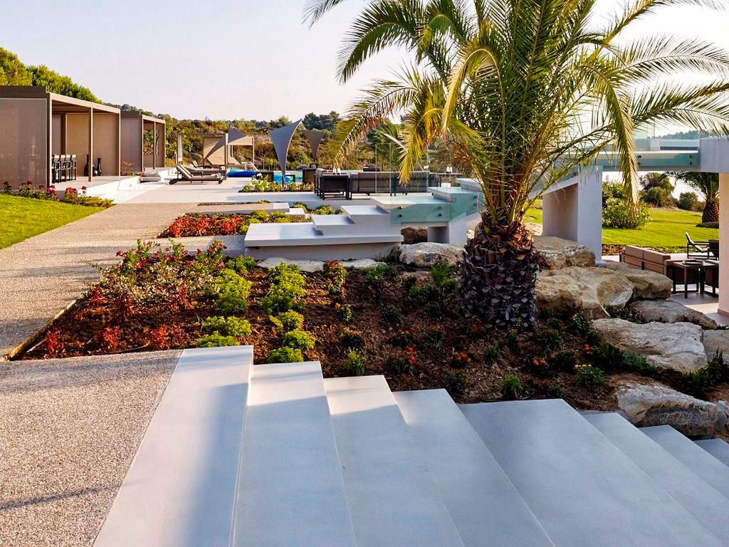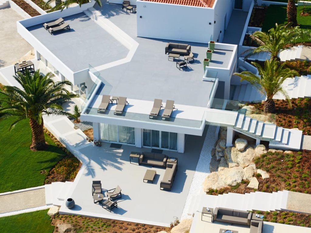 Outdoors: Private marina, 95m² swimming pool, outdoor gym, fully equipped bar area, dining areas, terrace with lounge area, balconies, sun beds, umbrellas, barbeque, parking (across the island, at the mainland in private, secured parking space). The external Mini Villa for two (47m²) comprises a sitting area, a bathroom, a private terrace with sea view and outdoor Jacuzzi. Independent, outdoor professional kitchen, with a huge cooling chamber and professional appliances.
