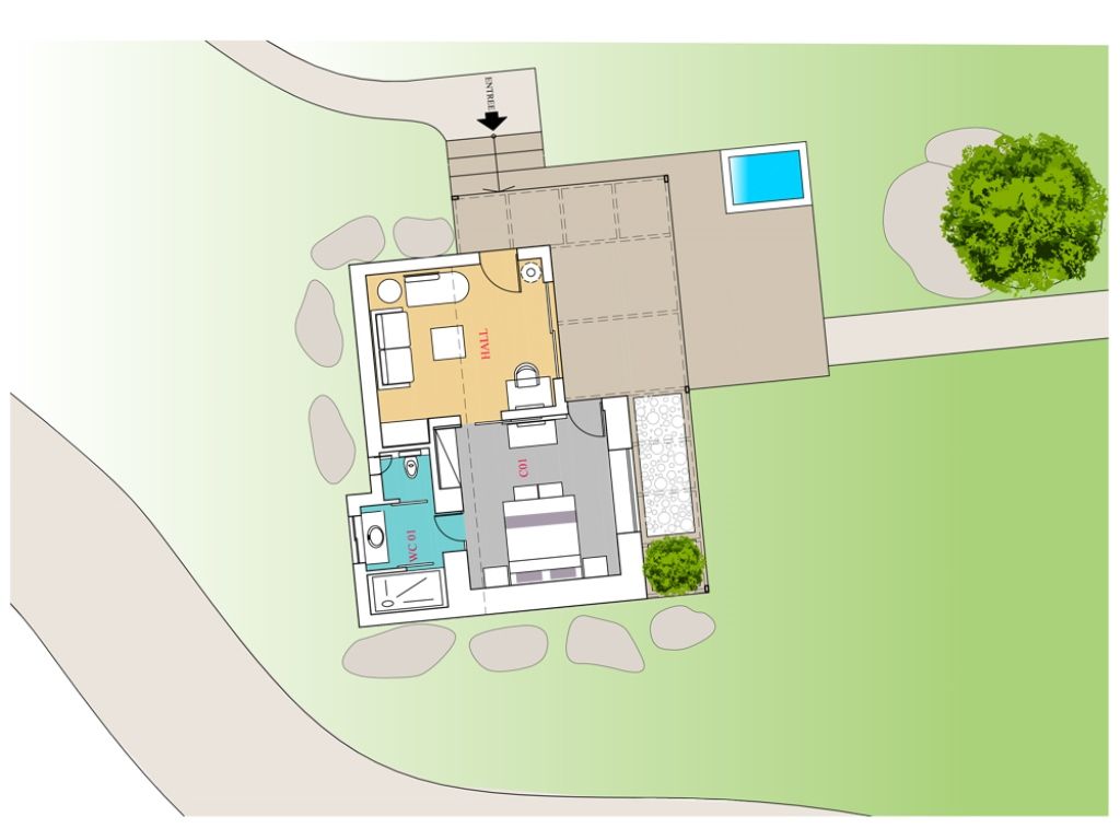 The modern kitchen is fully equipped to meet high standards with appliances from well-known international brands. The 47 m² external beachfront studio for two, offers a charming bedroom, a bathroom, a sitting room, a lovely private terrace with sea view and a private Jacuzzi for priceless moments of secluded relaxation.