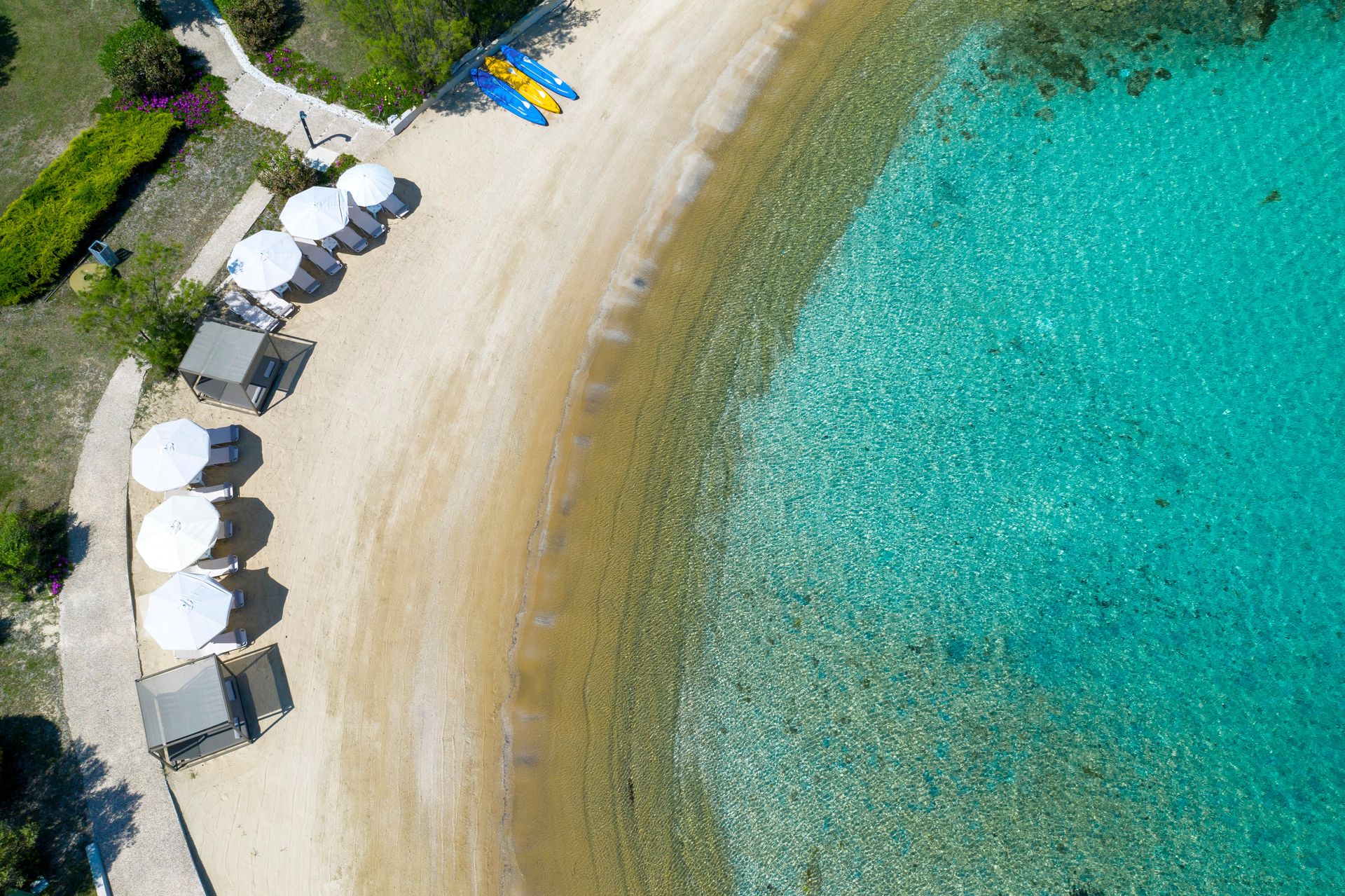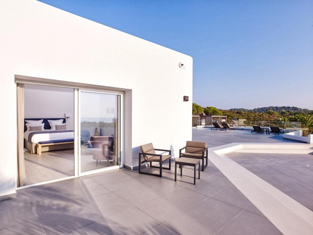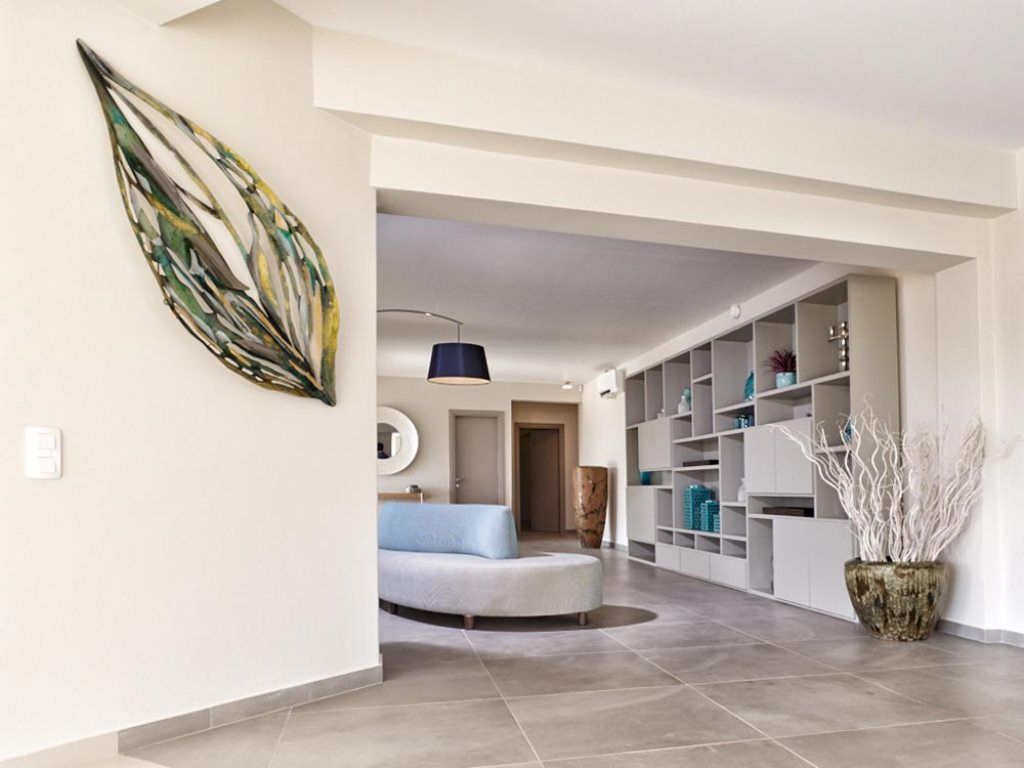 The 95 m² swimming pool offers chances for exercise and relaxation after using the fully equipped outdoor gym or after a refreshing dive in the turquoise sea waters.