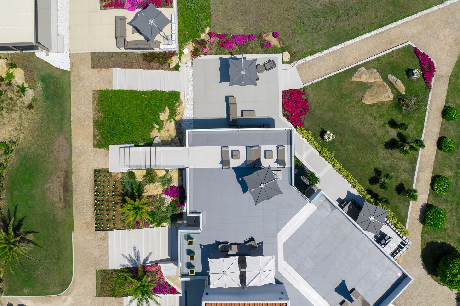 Also on the ground floor 4 spacious bedrooms with distinctive architecture and interior design, floor-to-ceiling windows and a total of 6 bathrooms.