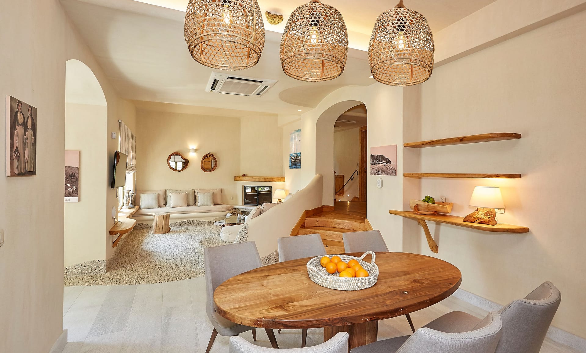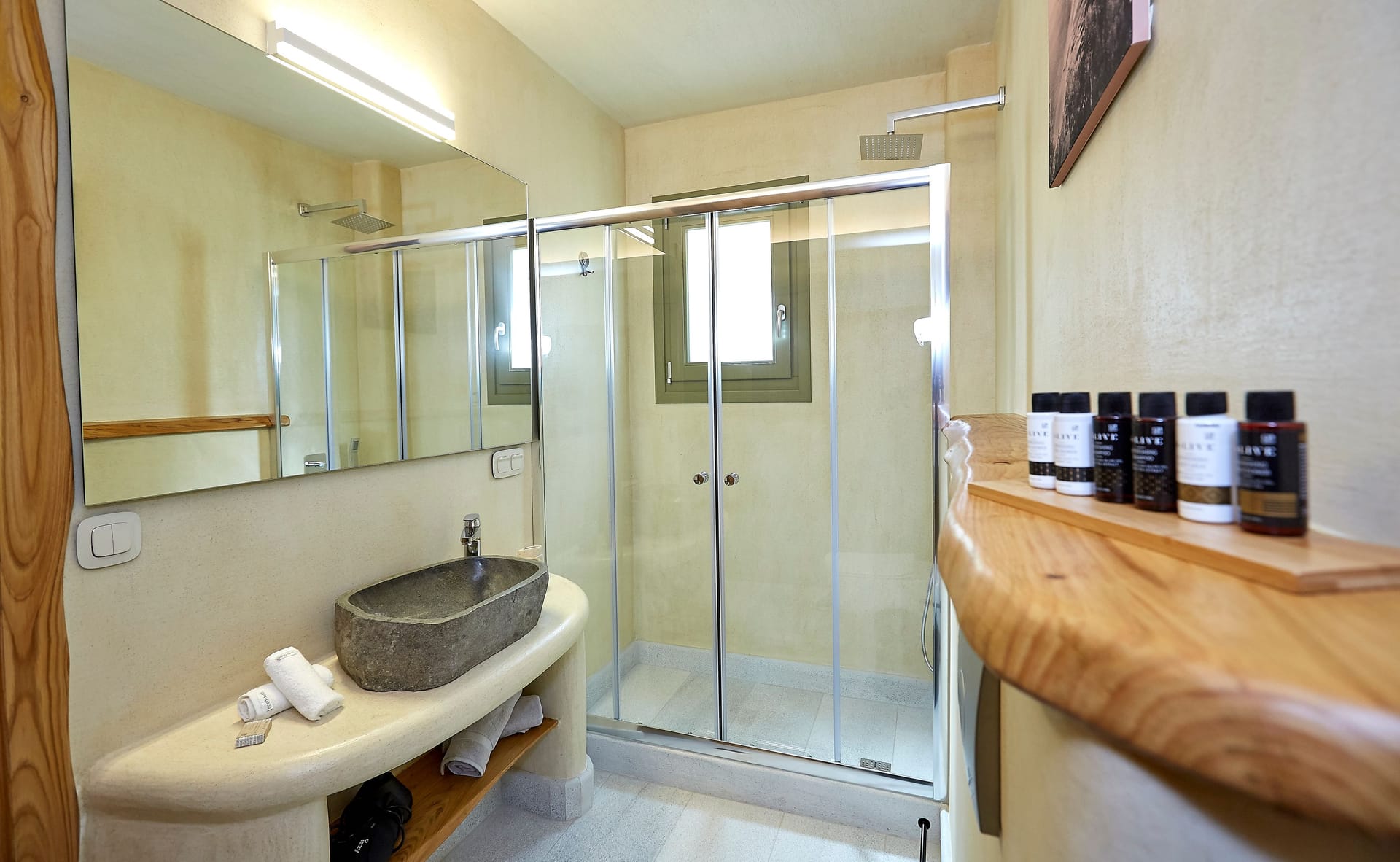 Amneris Villa is the largest Villa of the complex as it occupies 190sqm, it has four bedrooms with en-suite bathrooms and it can accommodate up to 8 people. It is features spacious rooms, delicate luxury and exceptional amenities that will offer you unique moments of comfort, relaxation and wellness.