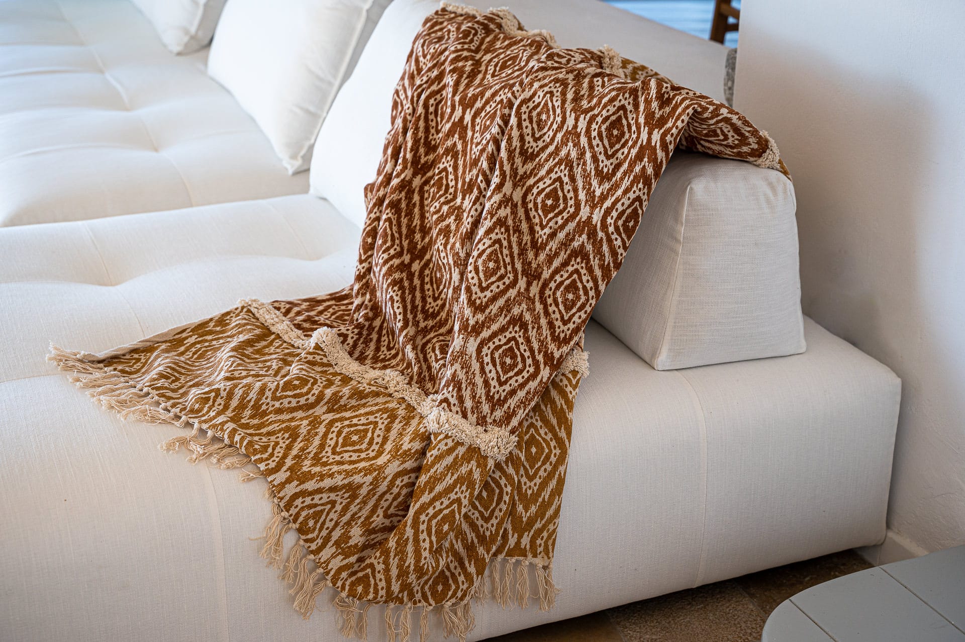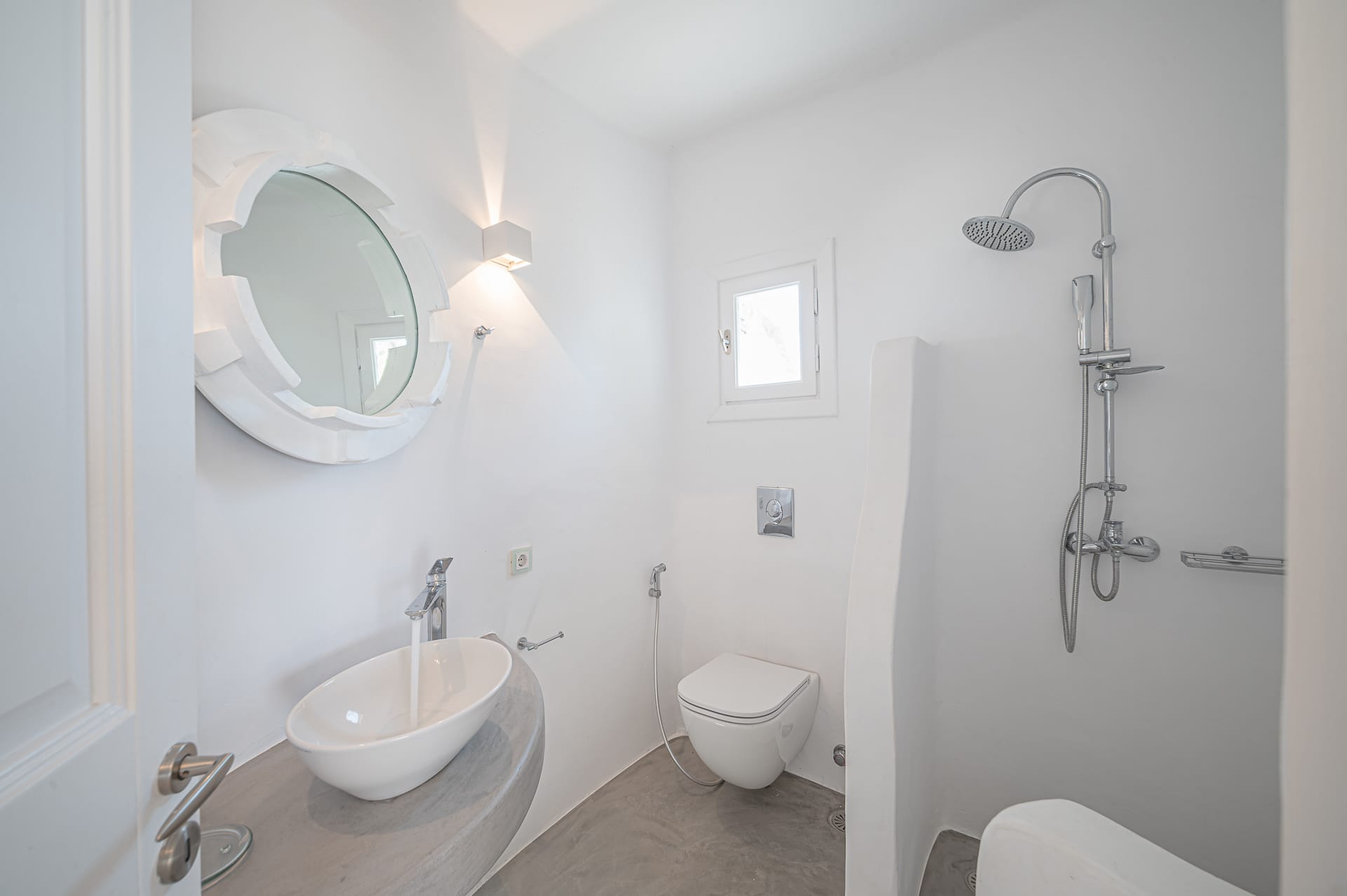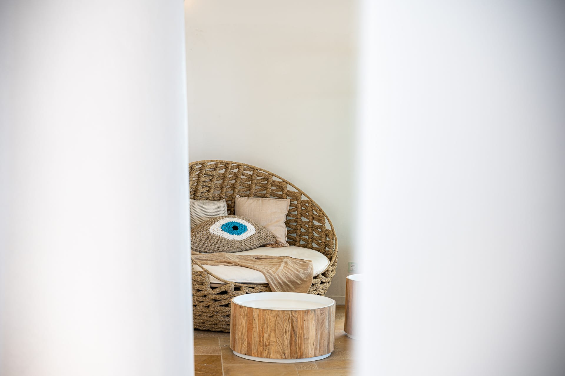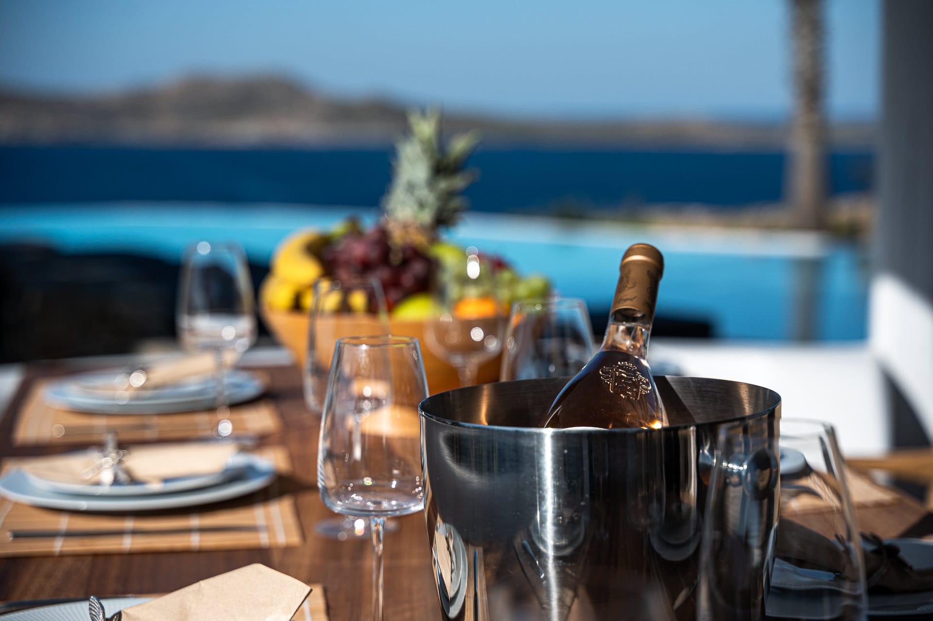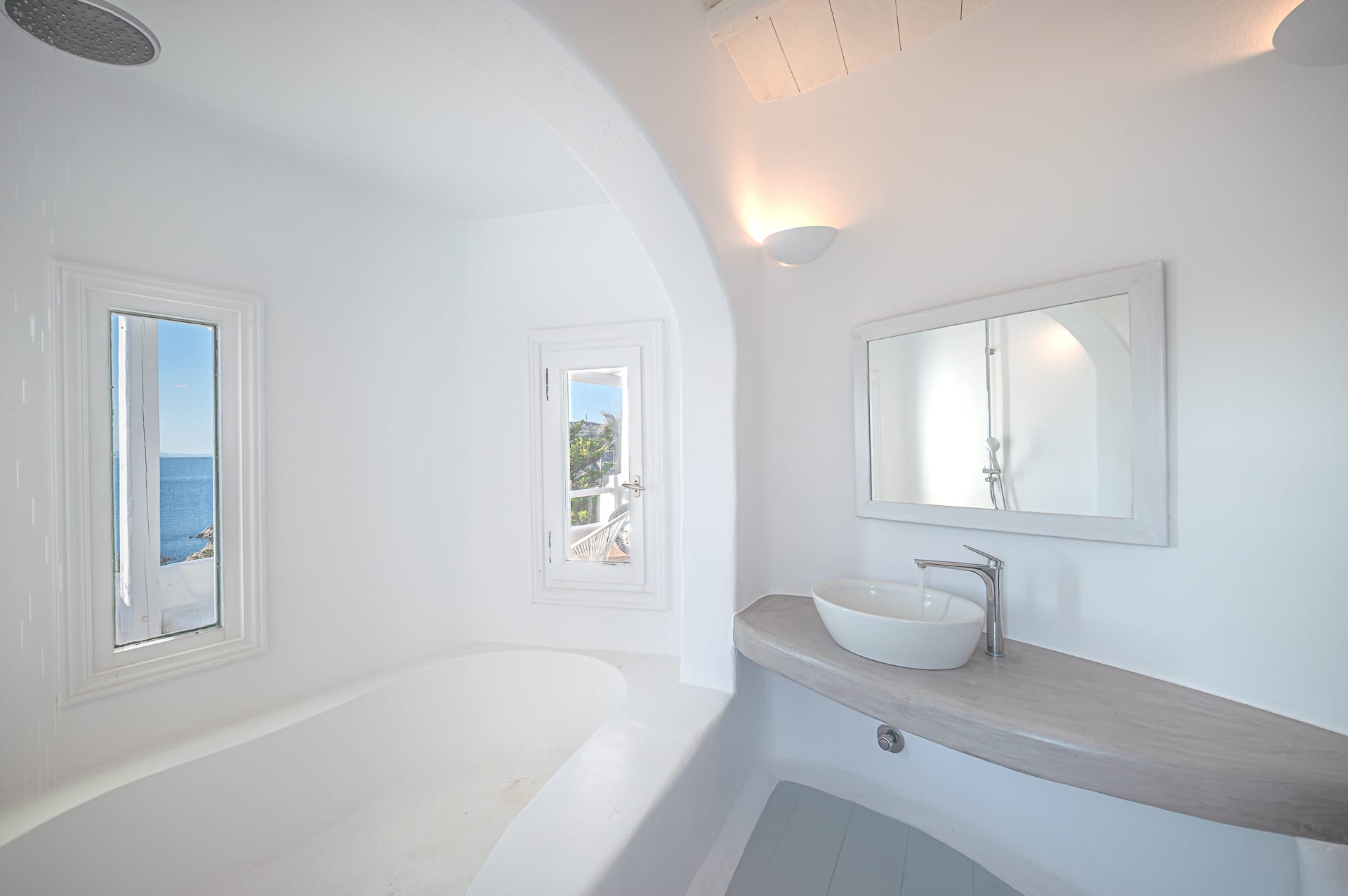 The Cycladic Mykonian architecture of this beautiful villa, in combination with the modern furniture, creates an elegant result as well as an impressive atmosphere.